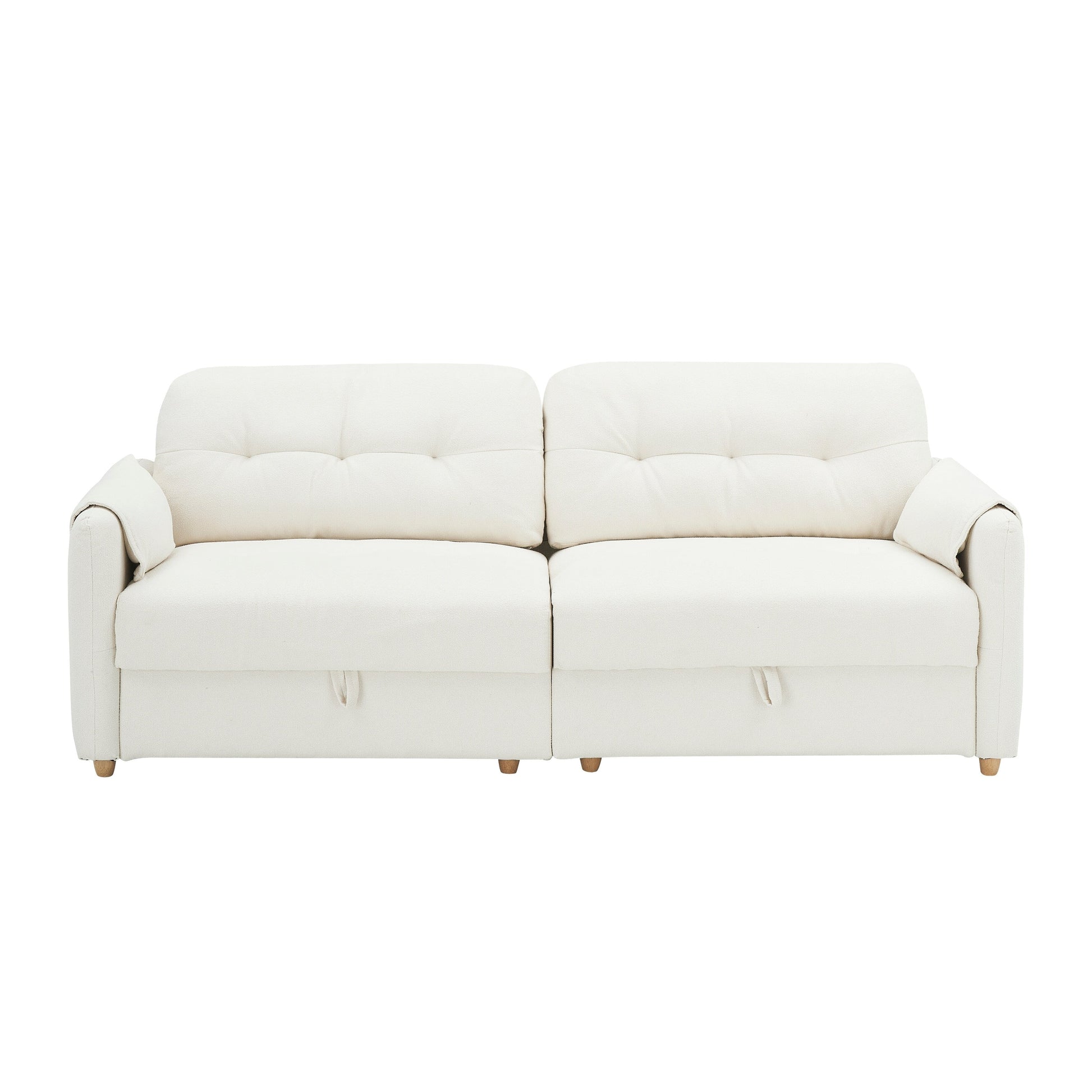 Tissu de canapé en coton et lin Teddy de 79,50 pouces de long, avec pieds longs coniques en métal, bande métallique assortie, élégant et simple - Beige
