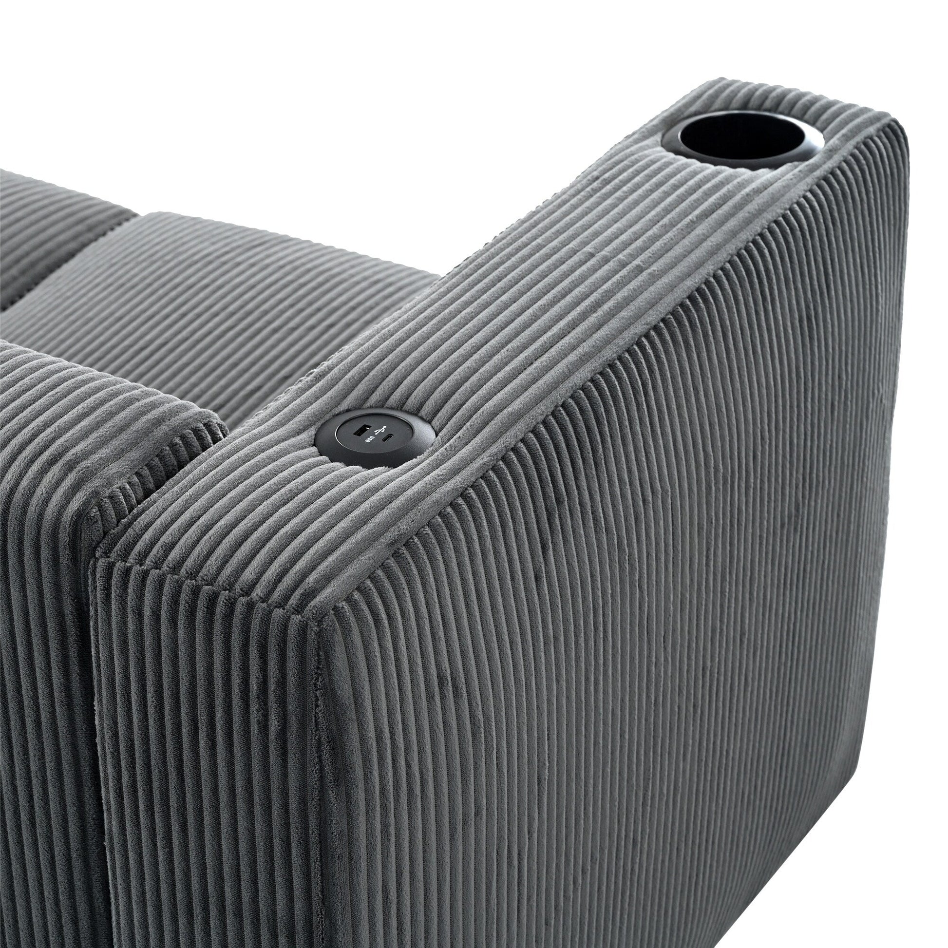Canapé 3 places en bois massif 80 avec 2 ports USB et deux porte-gobelets