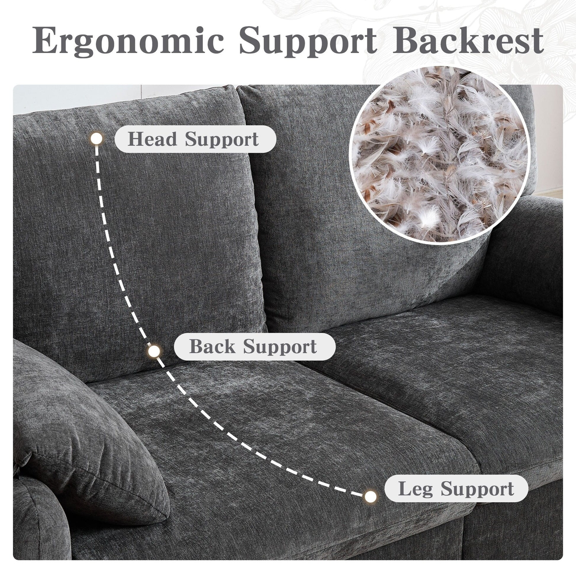 Tissu chenille de haute qualité, durable et résistant. Nous sélectionnons des tissus de haute qualité, durables et faciles à nettoyer, garantissant que le canapé reste beau et confortable pendant longtemps.