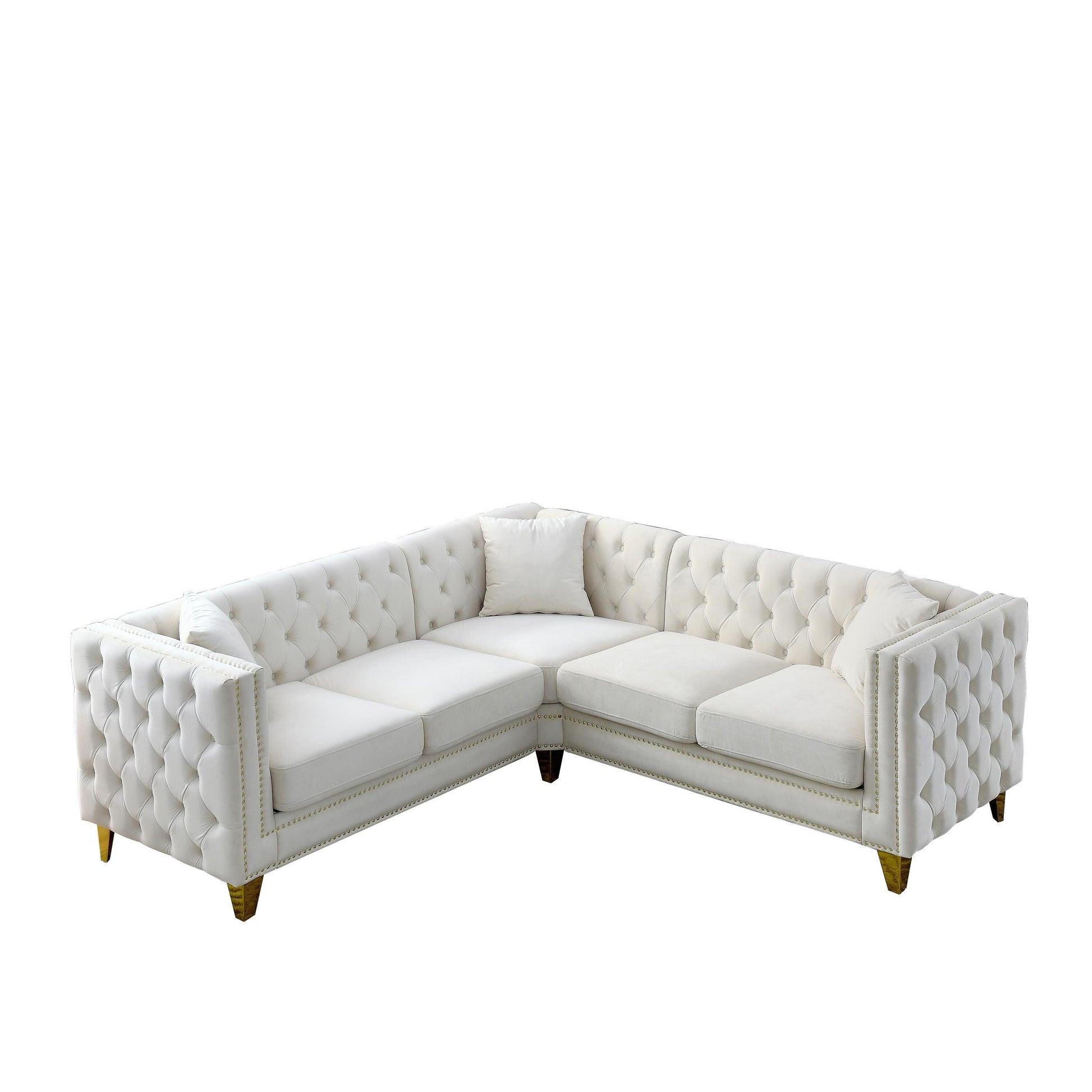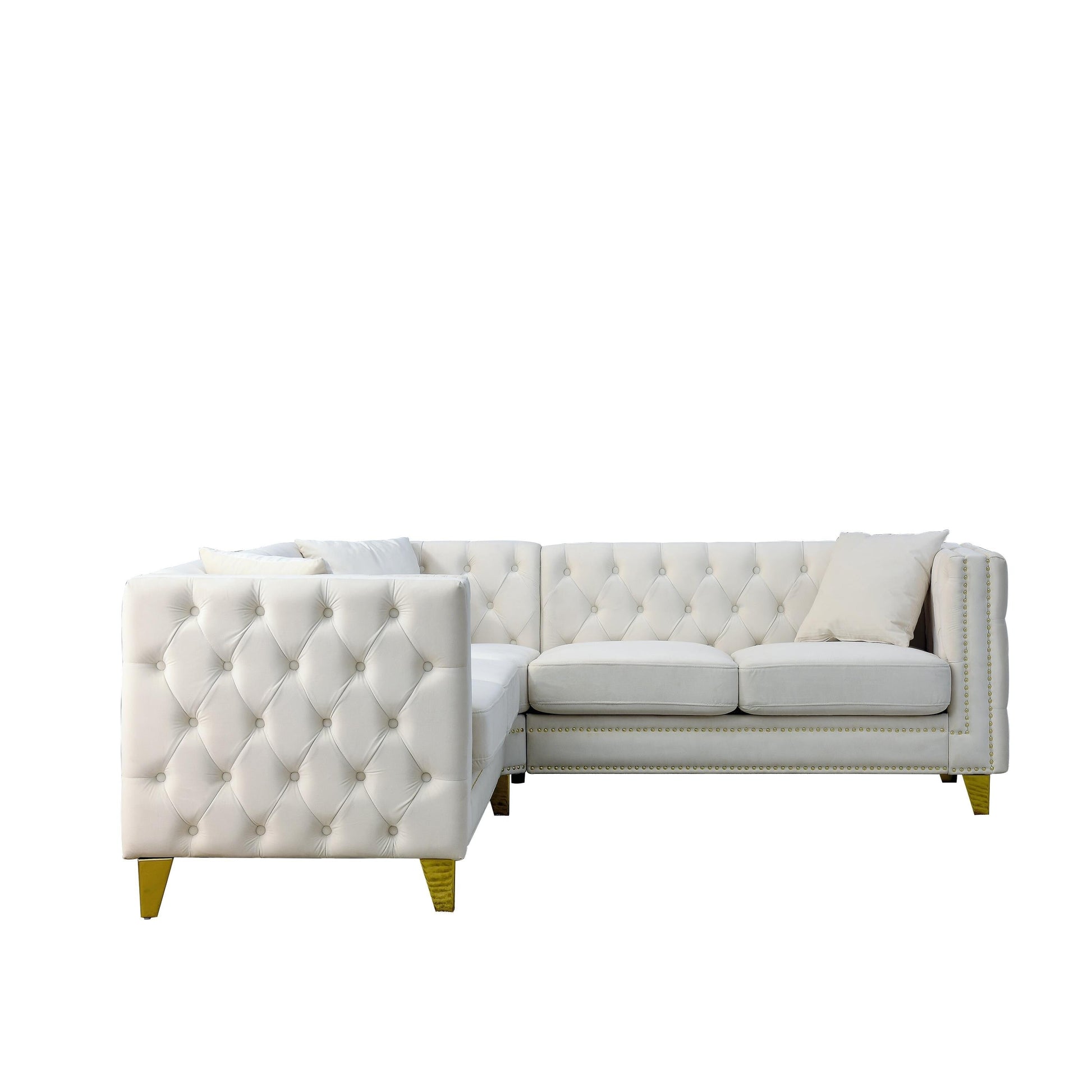 Canapé 5 places en L en velours de 82,2 po avec garniture cloutée