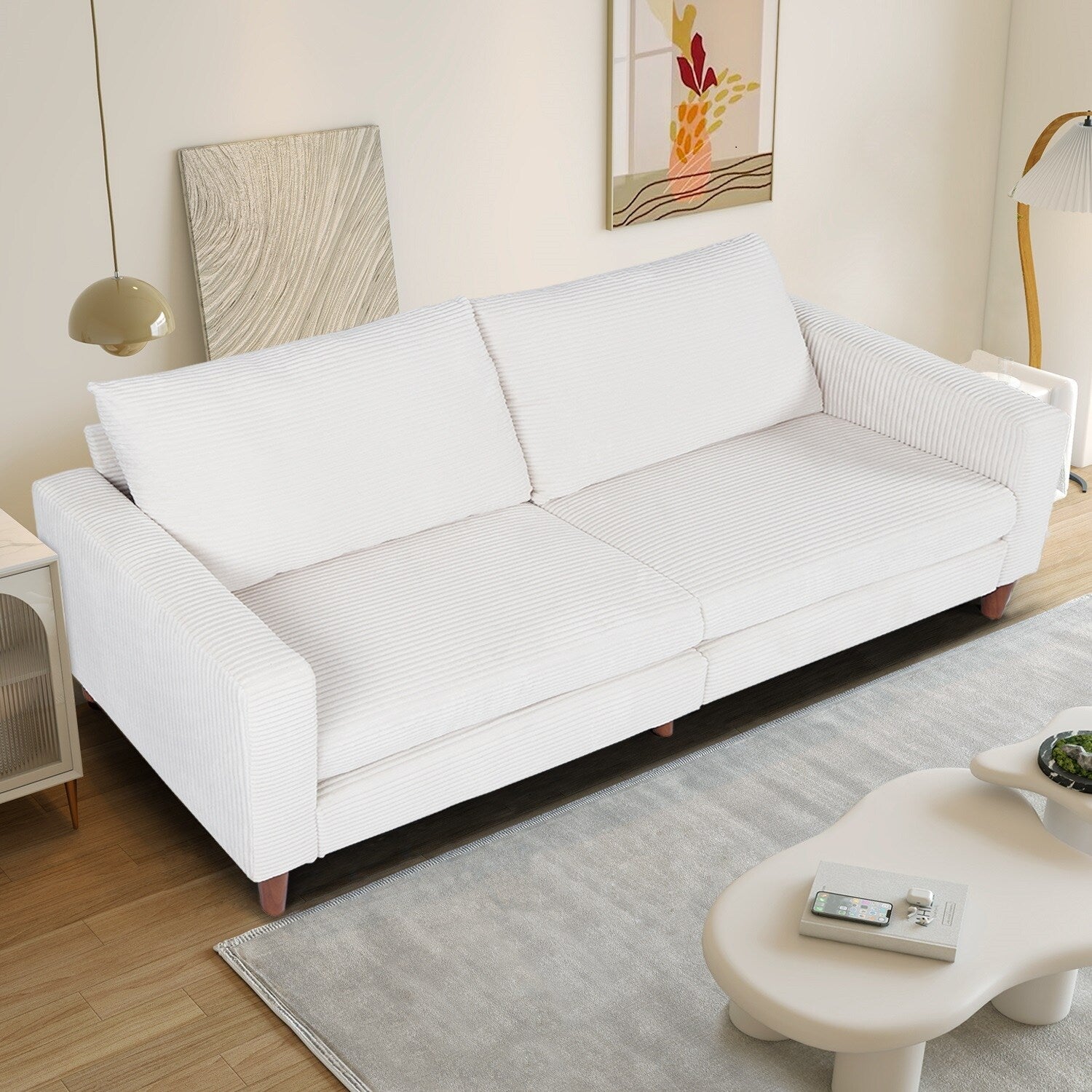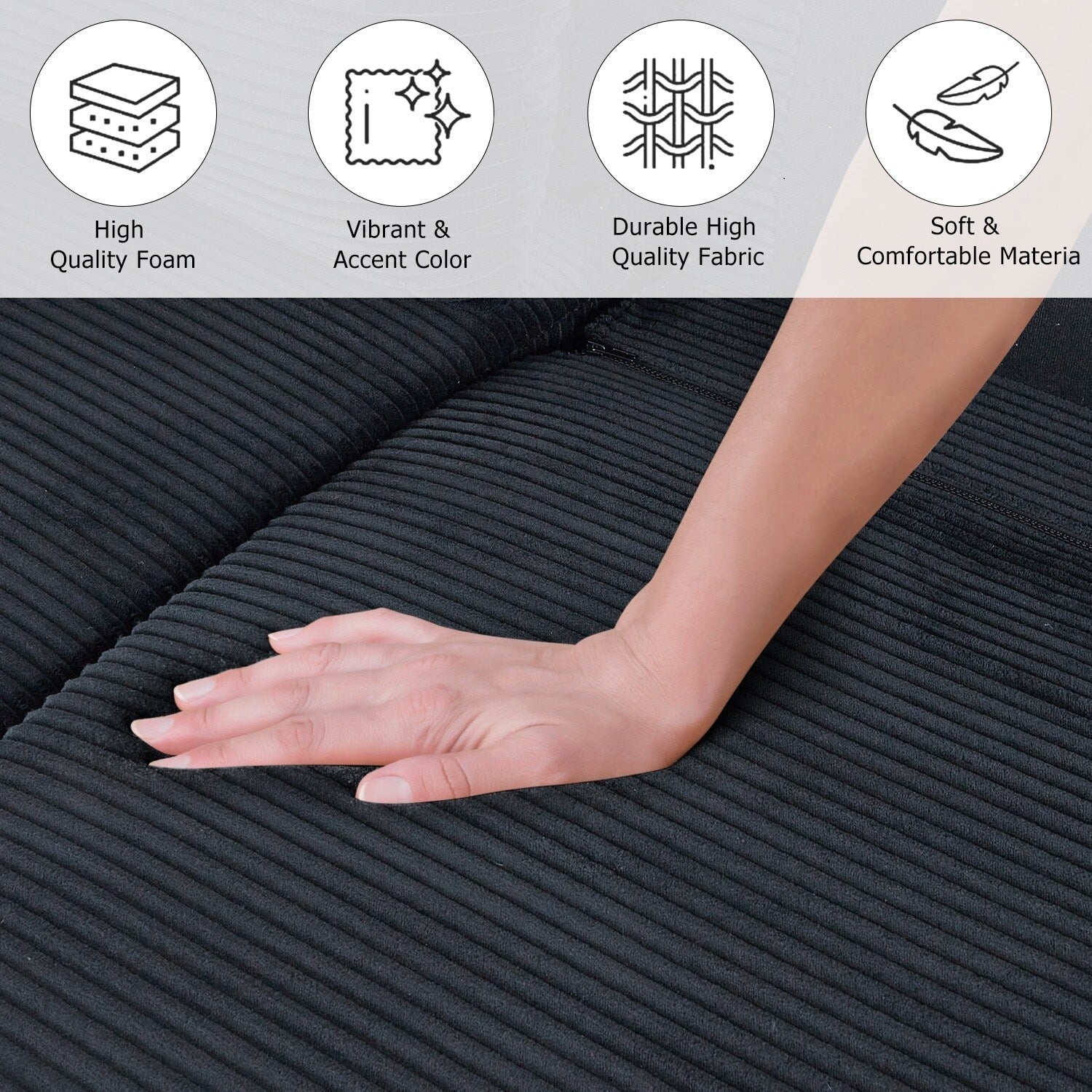 - Style moderne avec charme texturé « Enveloppé dans un tissu en velours côtelé moelleux avec des accents touffetés et des accoudoirs fins et inclinés, ce canapé apporte un caractère moderne avec une sensation de confort.