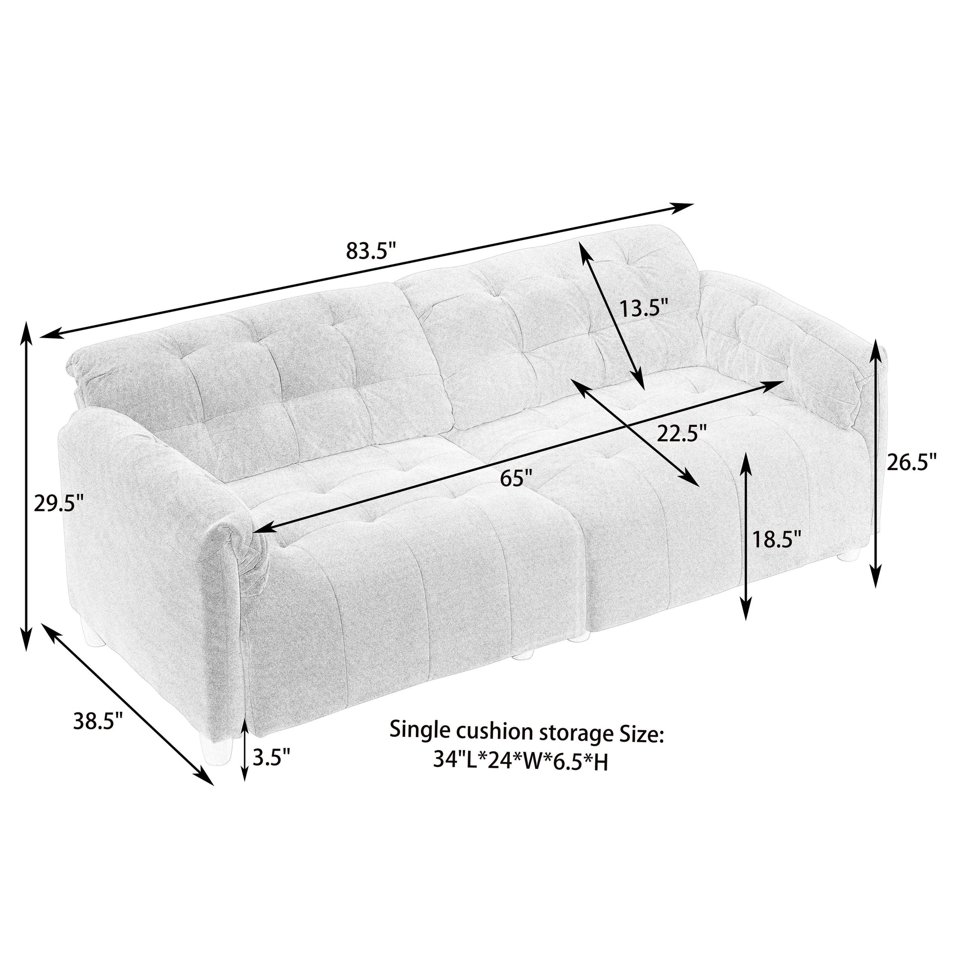 - Dimensions du canapé : 83,10' x 38,00' x 29,13'