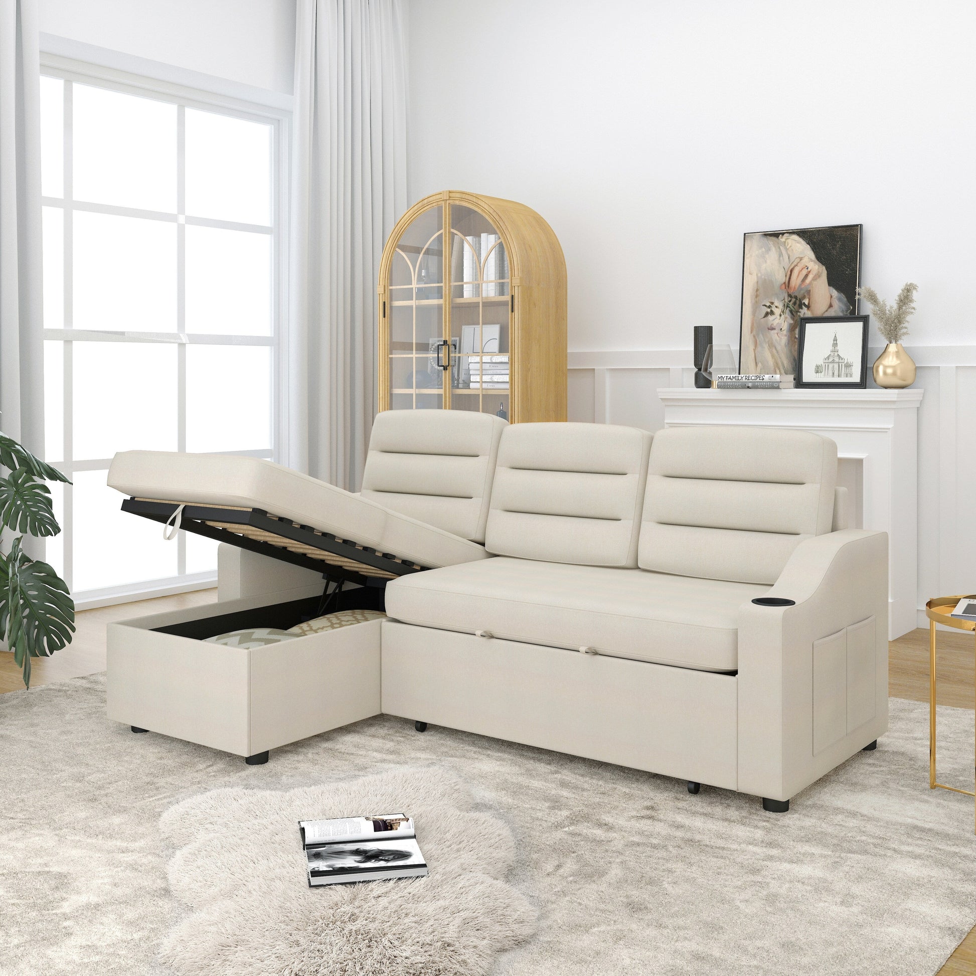 Canapé-lit convertible 3 places en polyester de 83,5 pouces avec lit gigogne, fauteuil inclinable de rangement, porte-gobelet et poches latérales