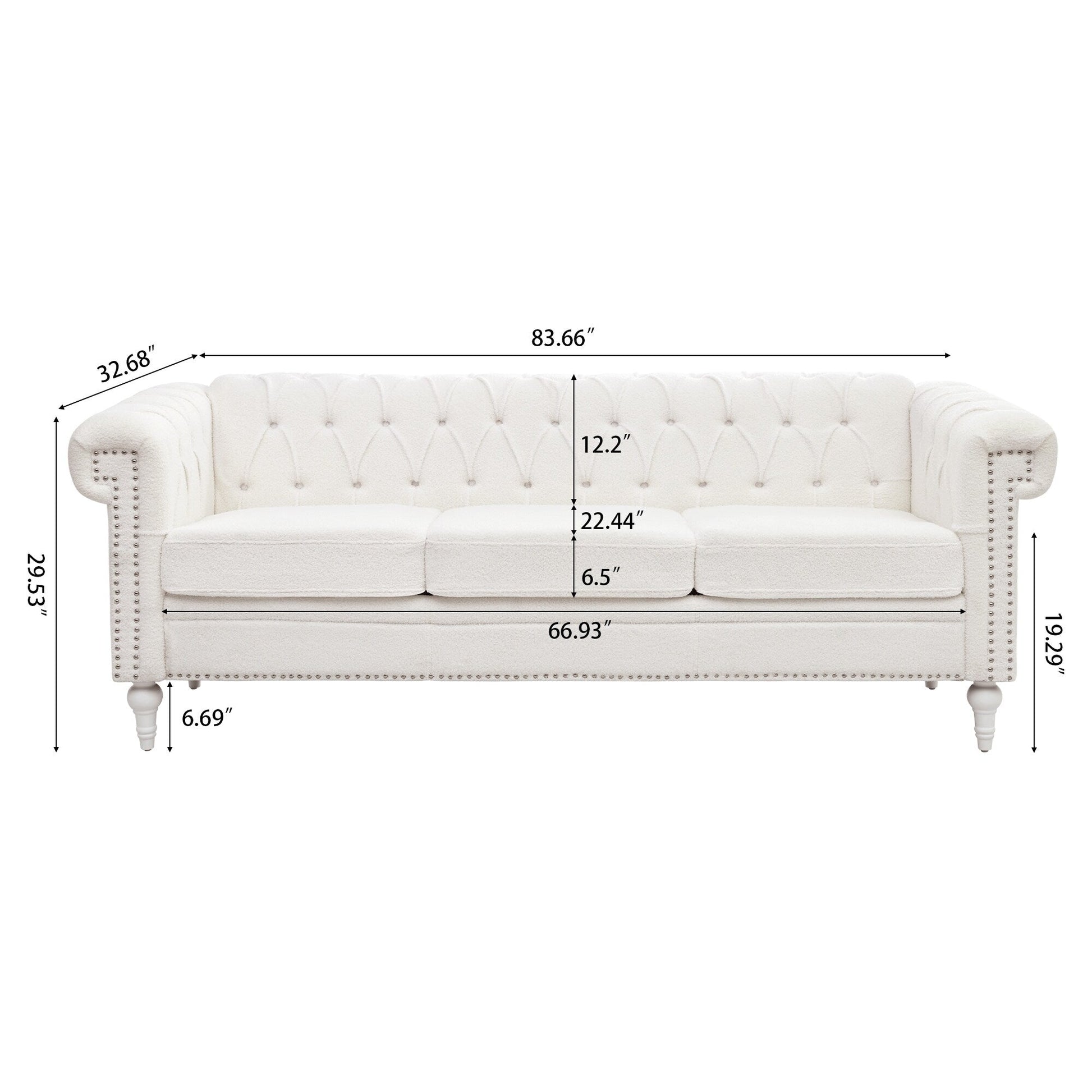 - Conception réfléchie : une longueur d'assise de 66,93' avec une hauteur d'assise de 19,29' et des pieds de 6,69' créent des proportions parfaites