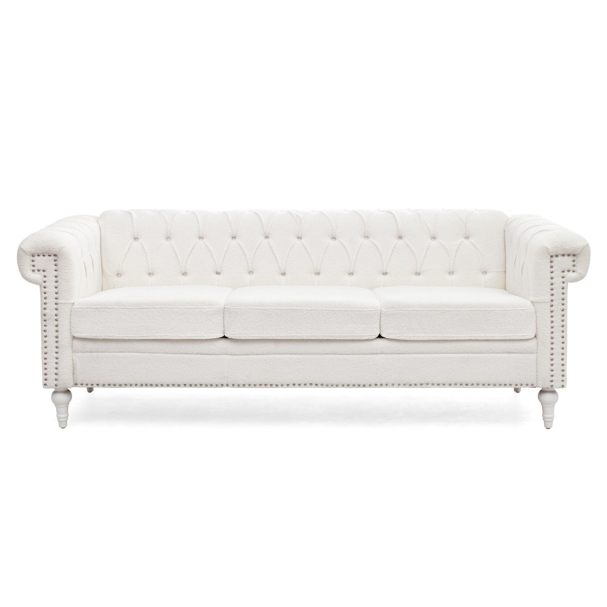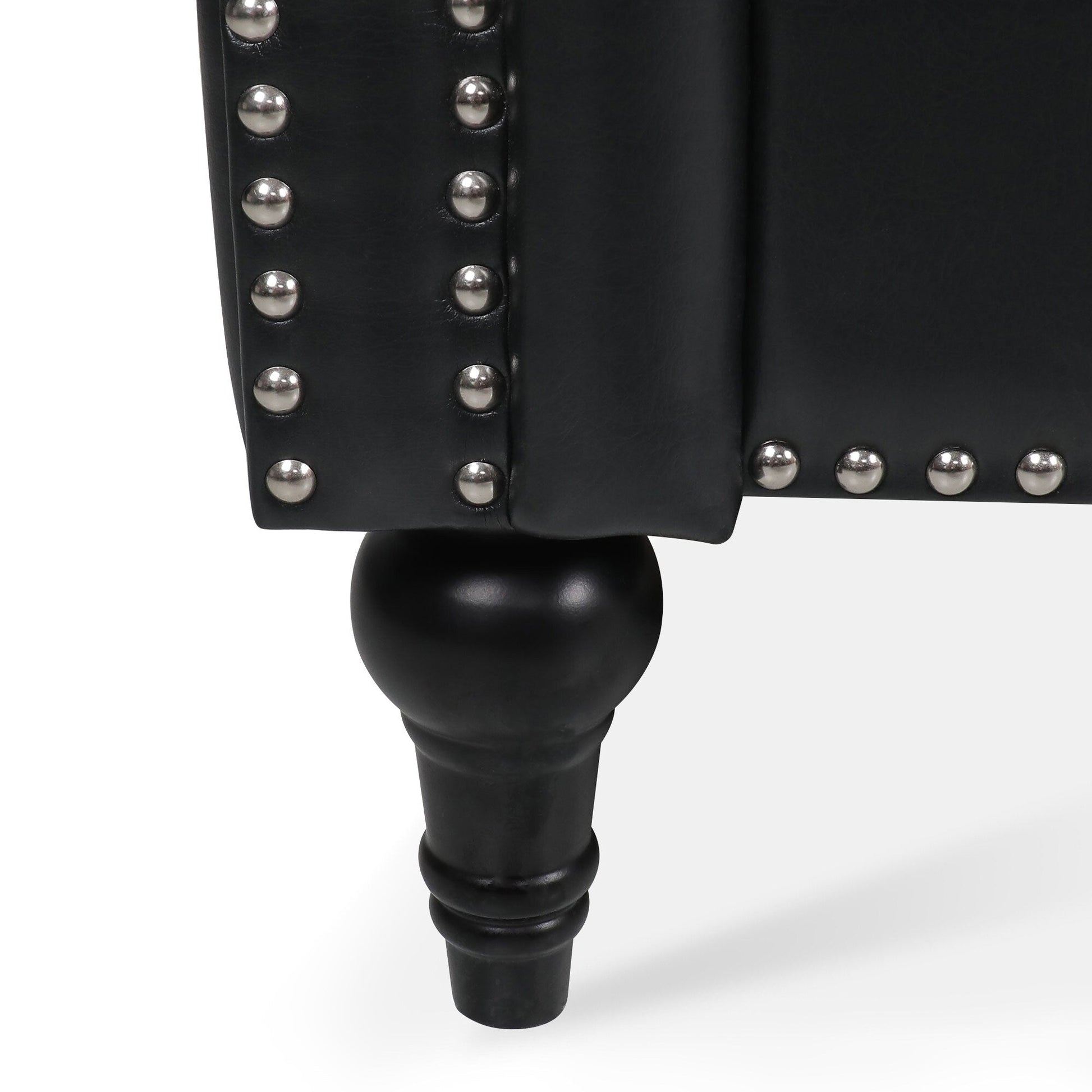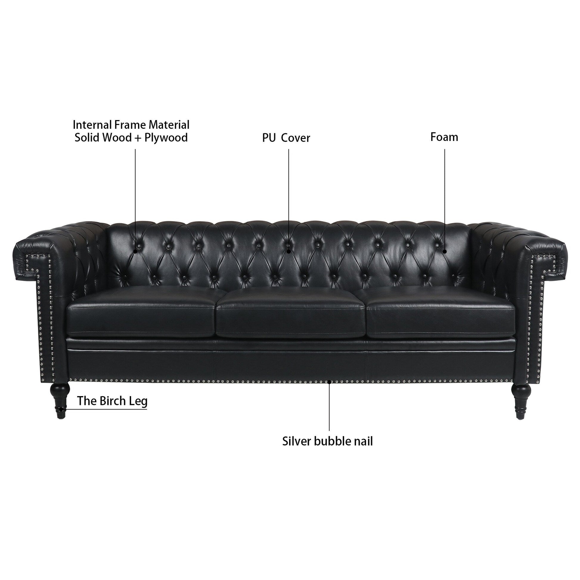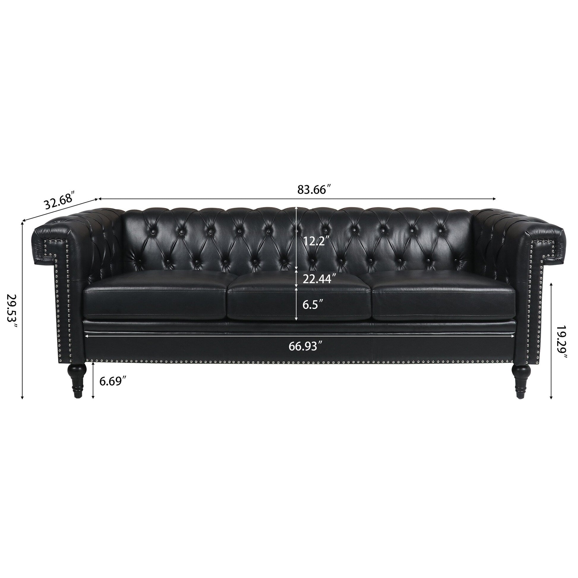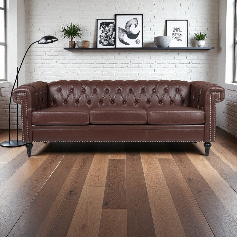 Canapé 3 places à accoudoirs carrés en similicuir 83,66 po avec coussins amovibles, support à ressorts ensachés et garniture cloutée