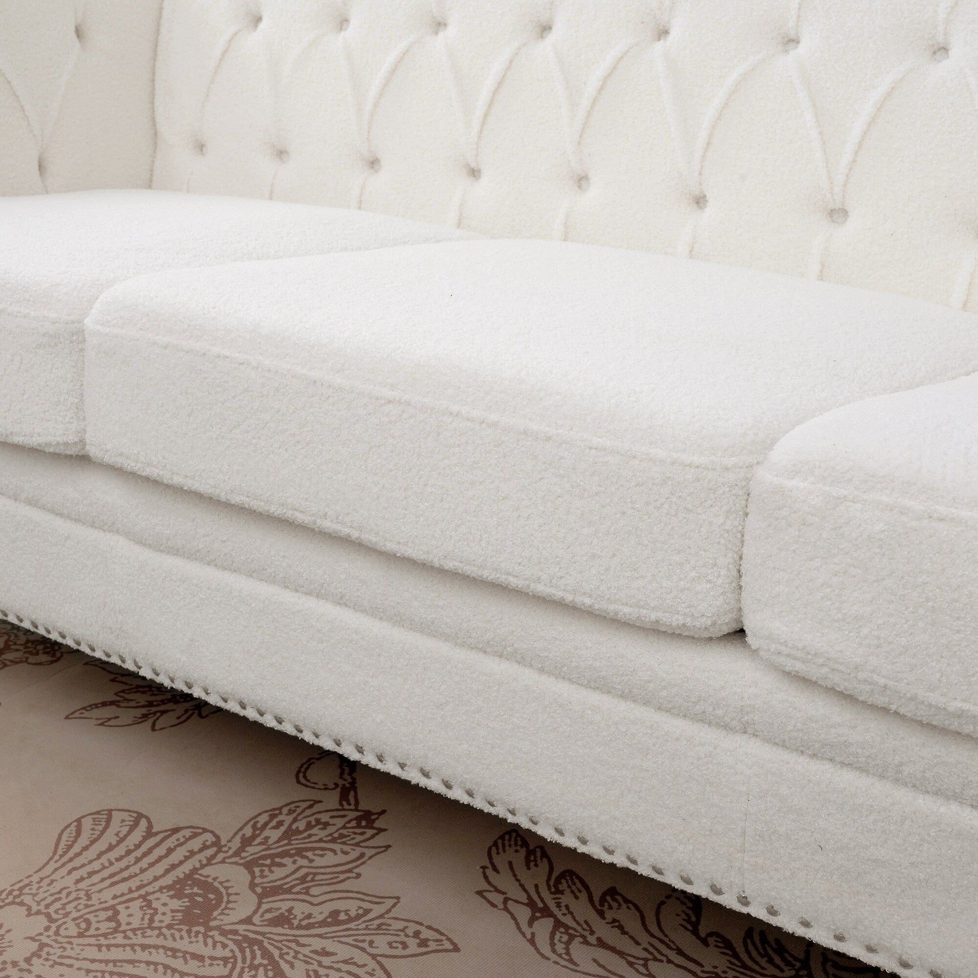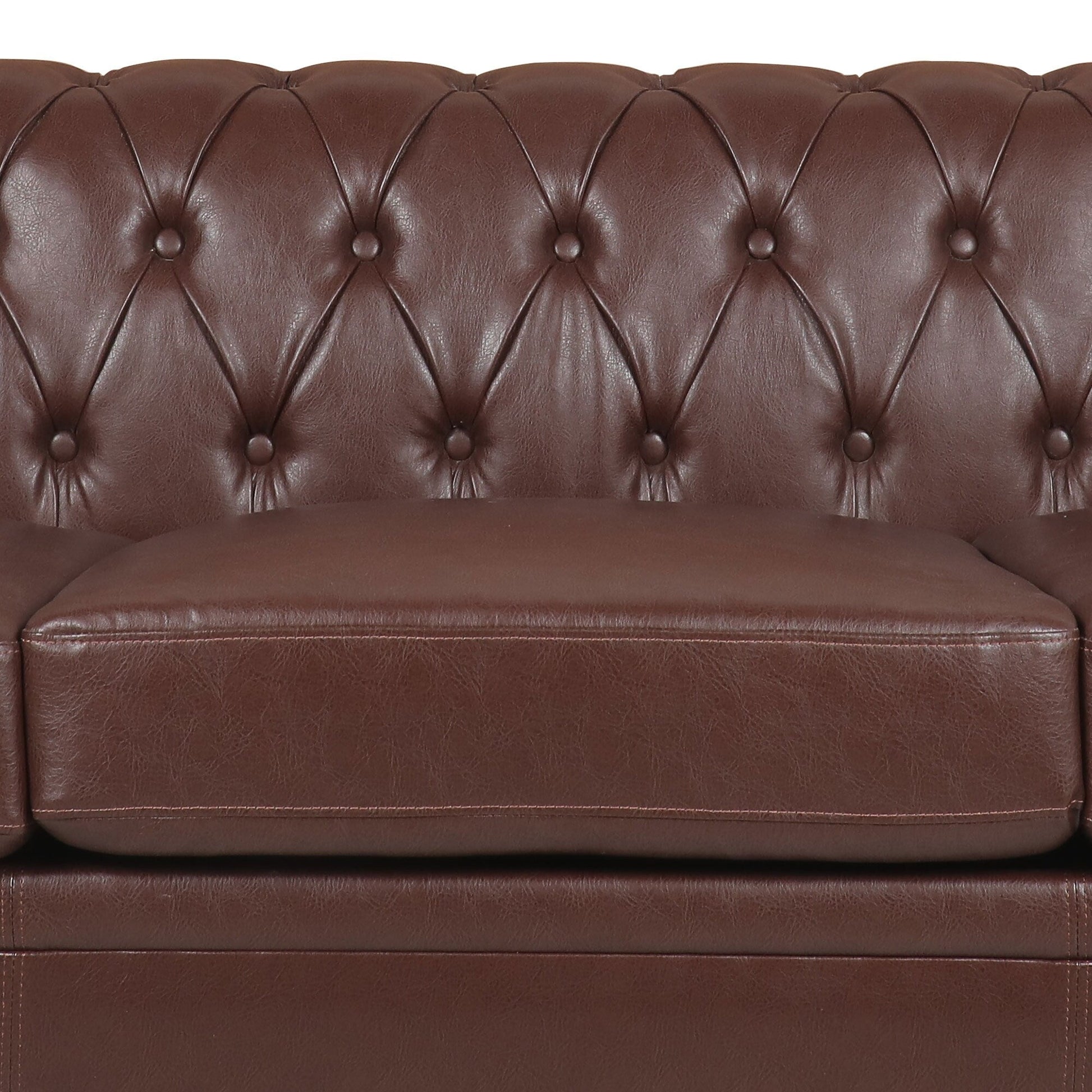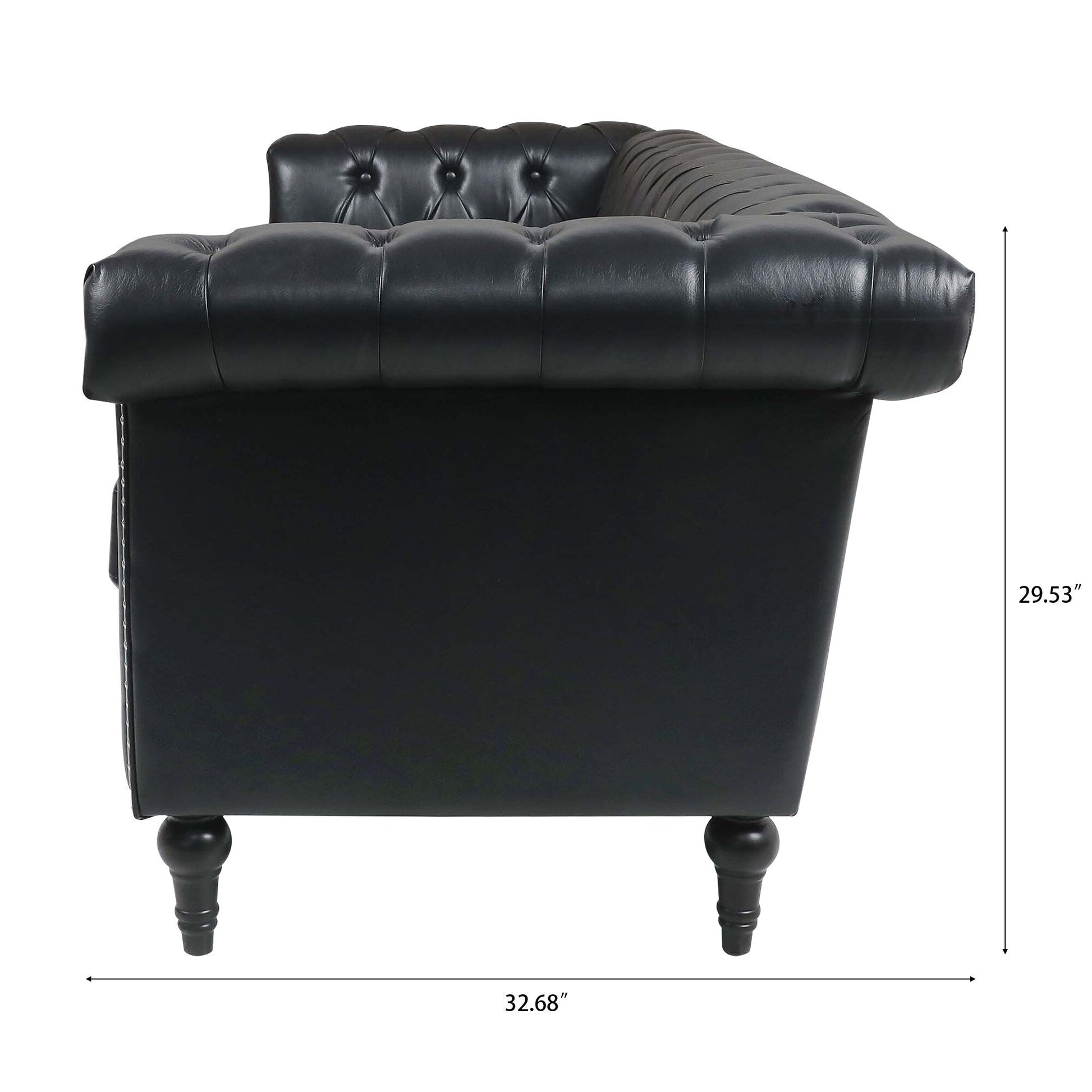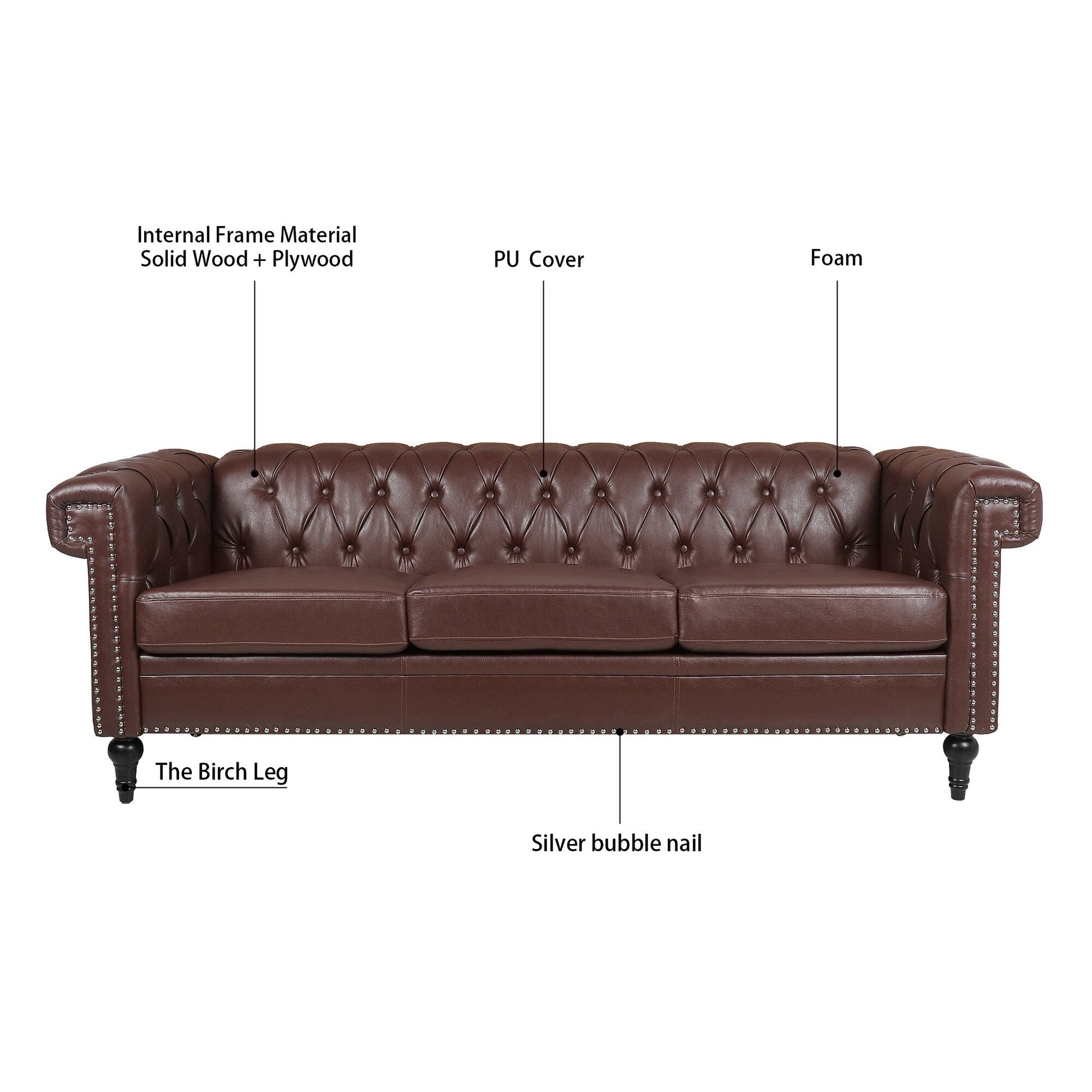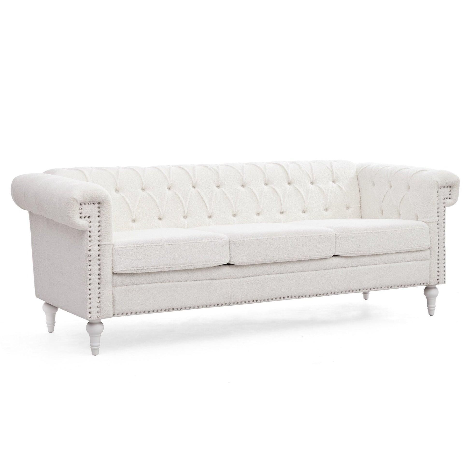 Canapé 3 places à accoudoirs carrés en similicuir 83,66 po avec coussins amovibles, support à ressorts ensachés et garniture cloutée