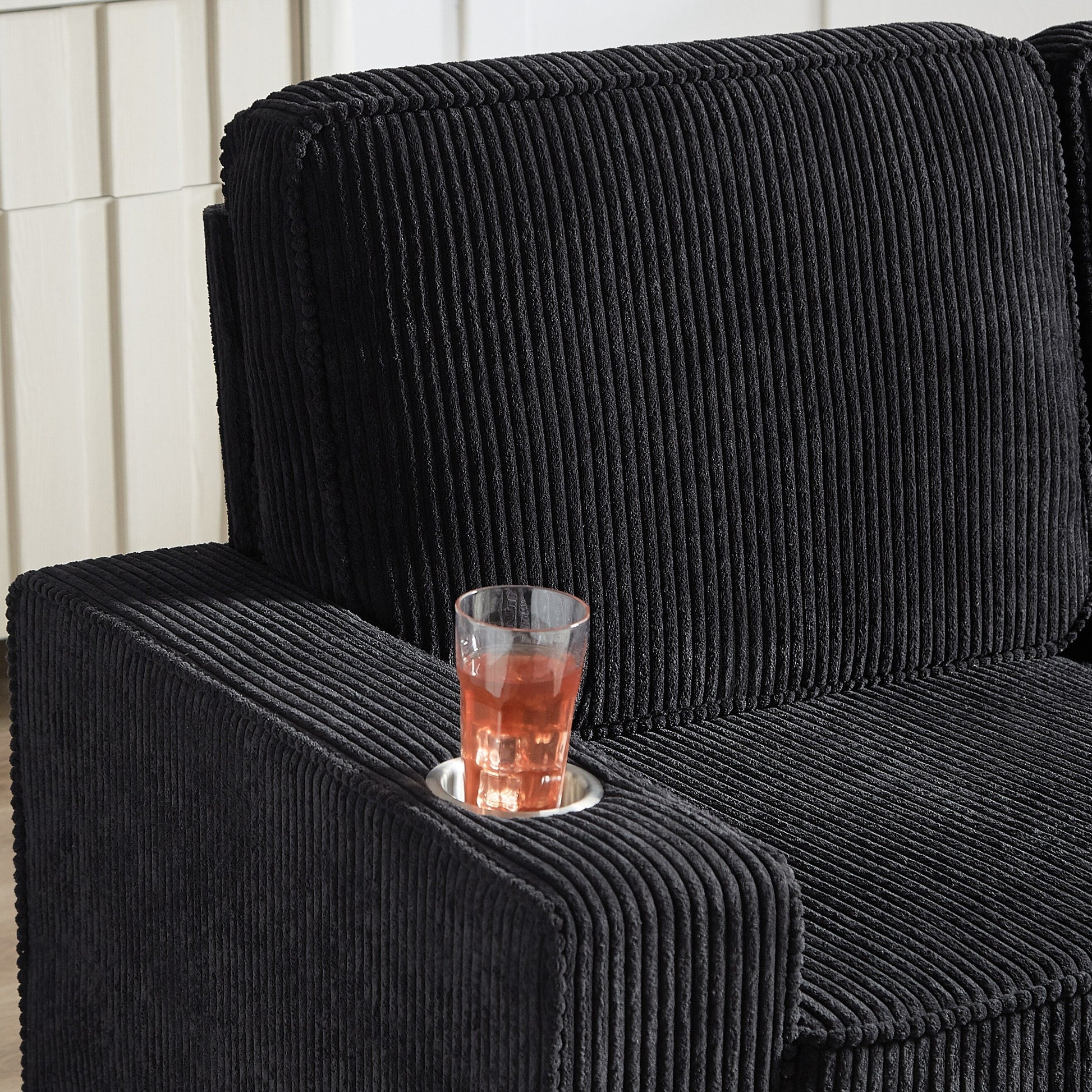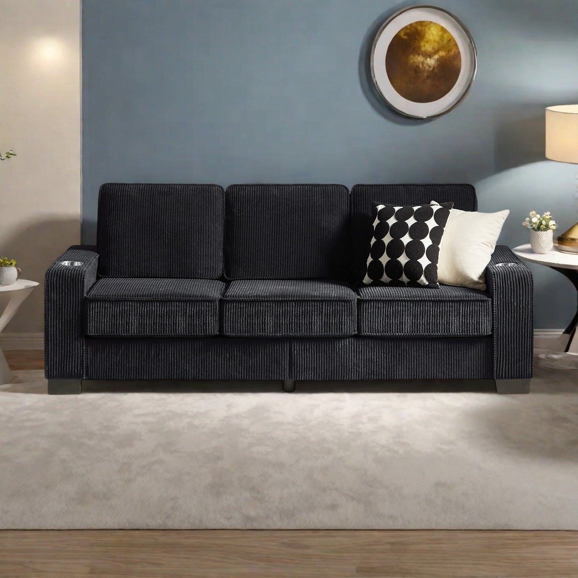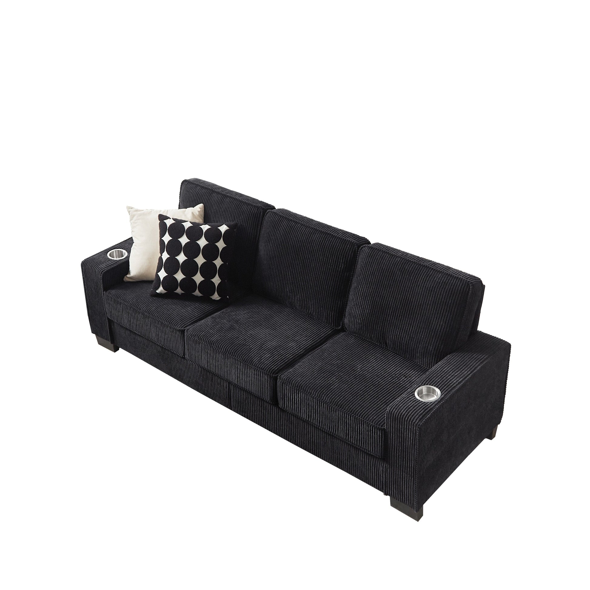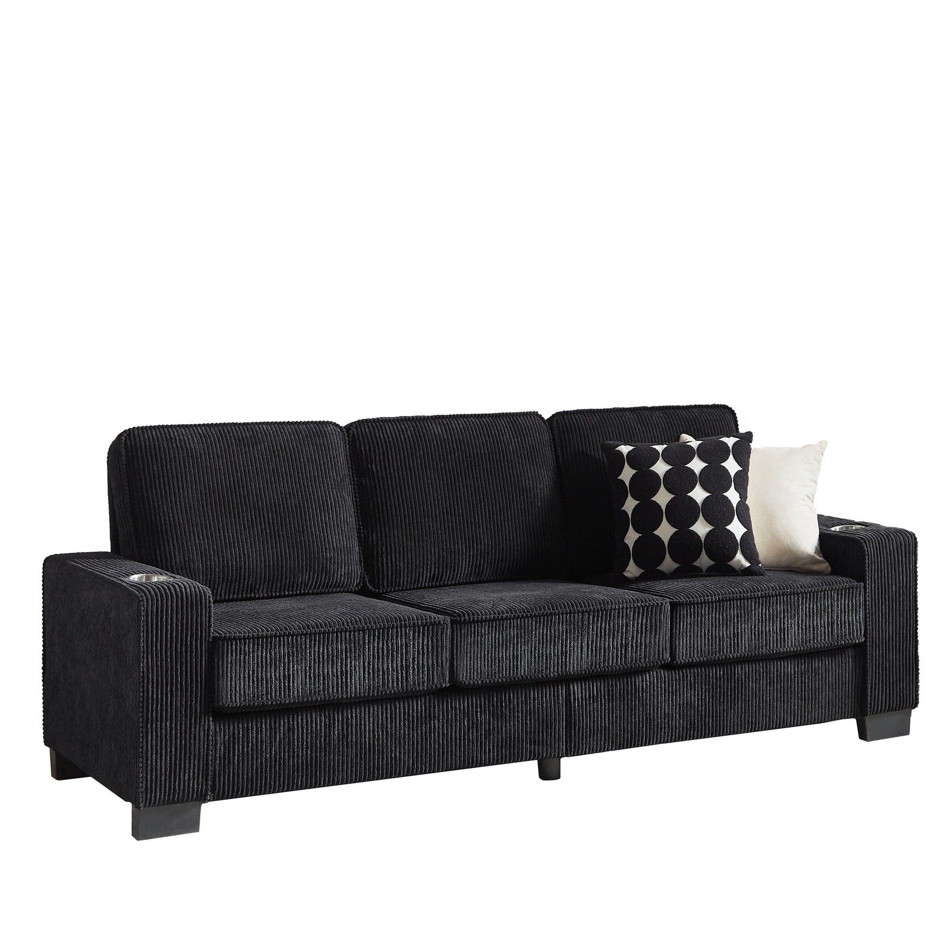 Canapé 3 places en velours côtelé 84,25 avec accoudoirs porte-gobelets - Coussins en éponge haute densité et à ressorts