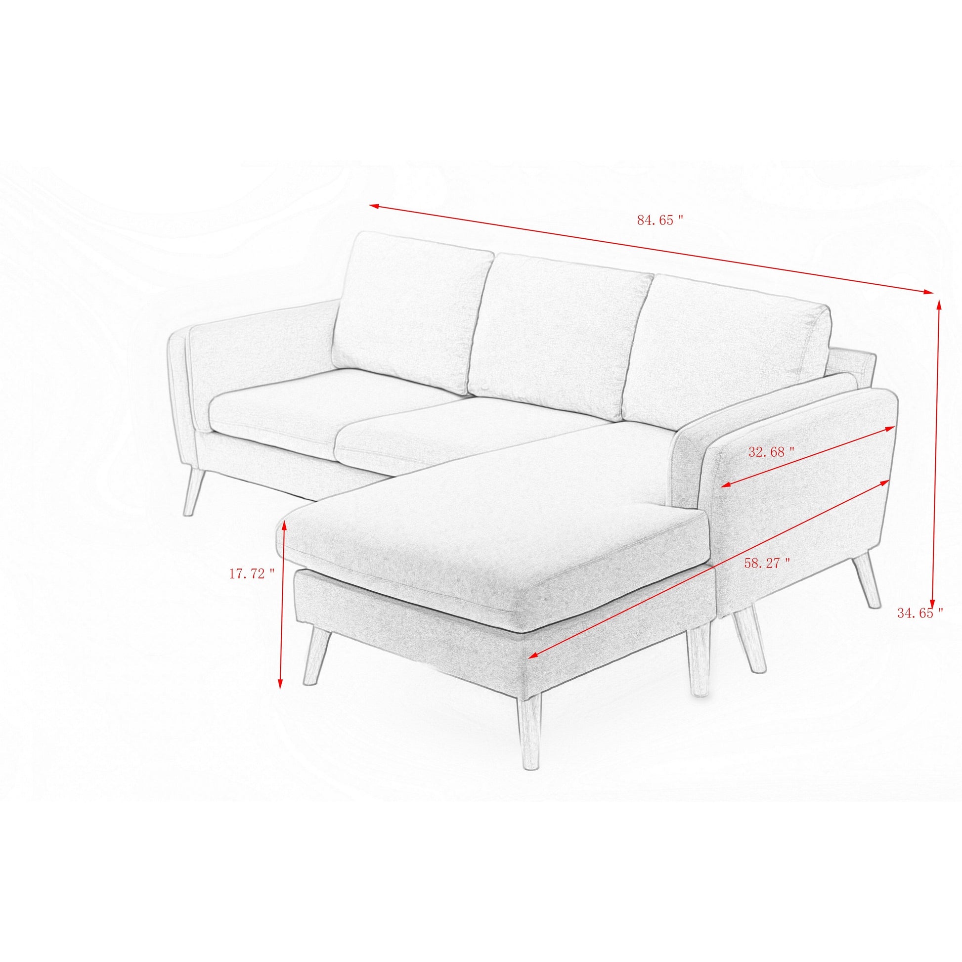 Canapé en L en lin de 84,6 po avec méridienne réversible