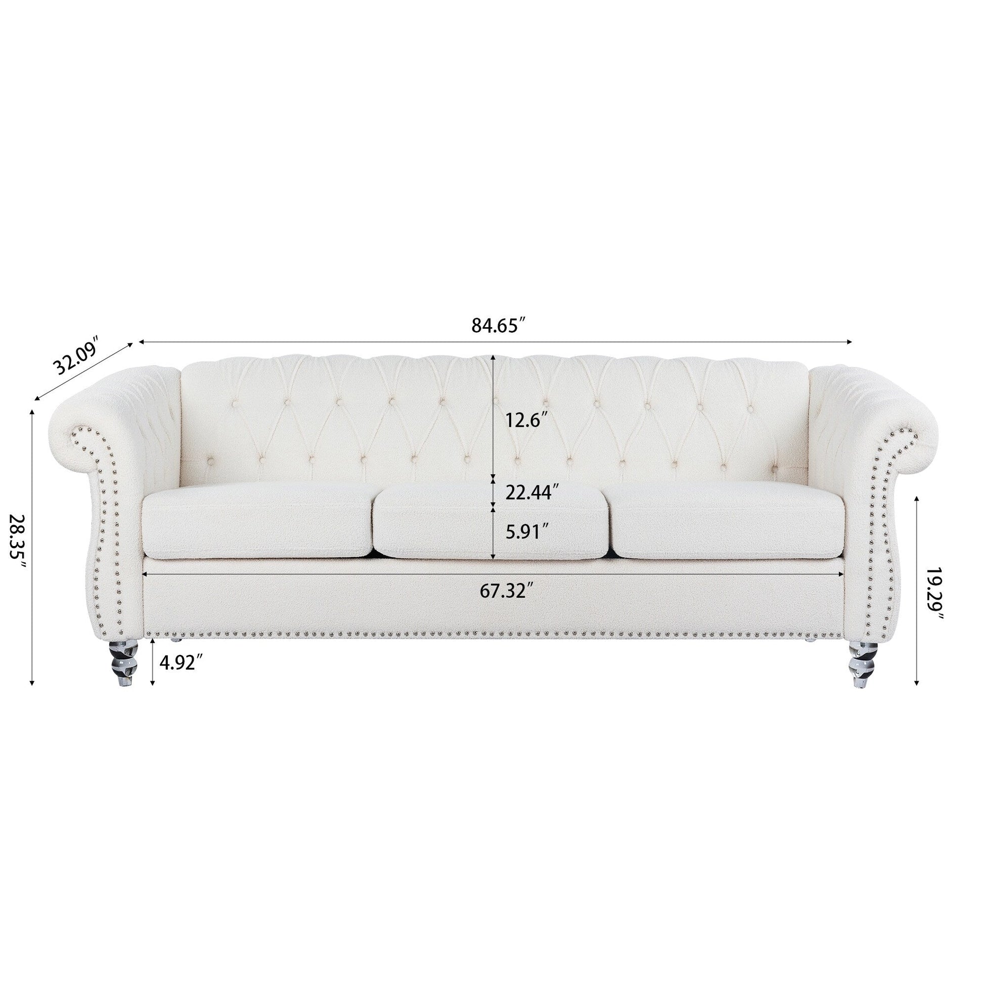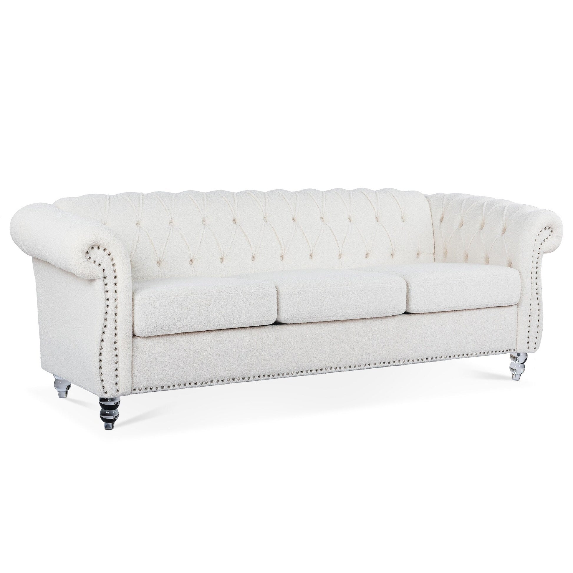 Canapé Chesterfield en polyester 84,65 avec accoudoirs roulés (3 places)