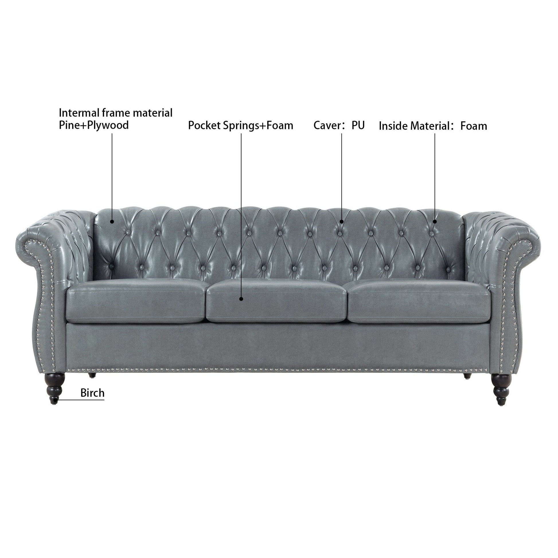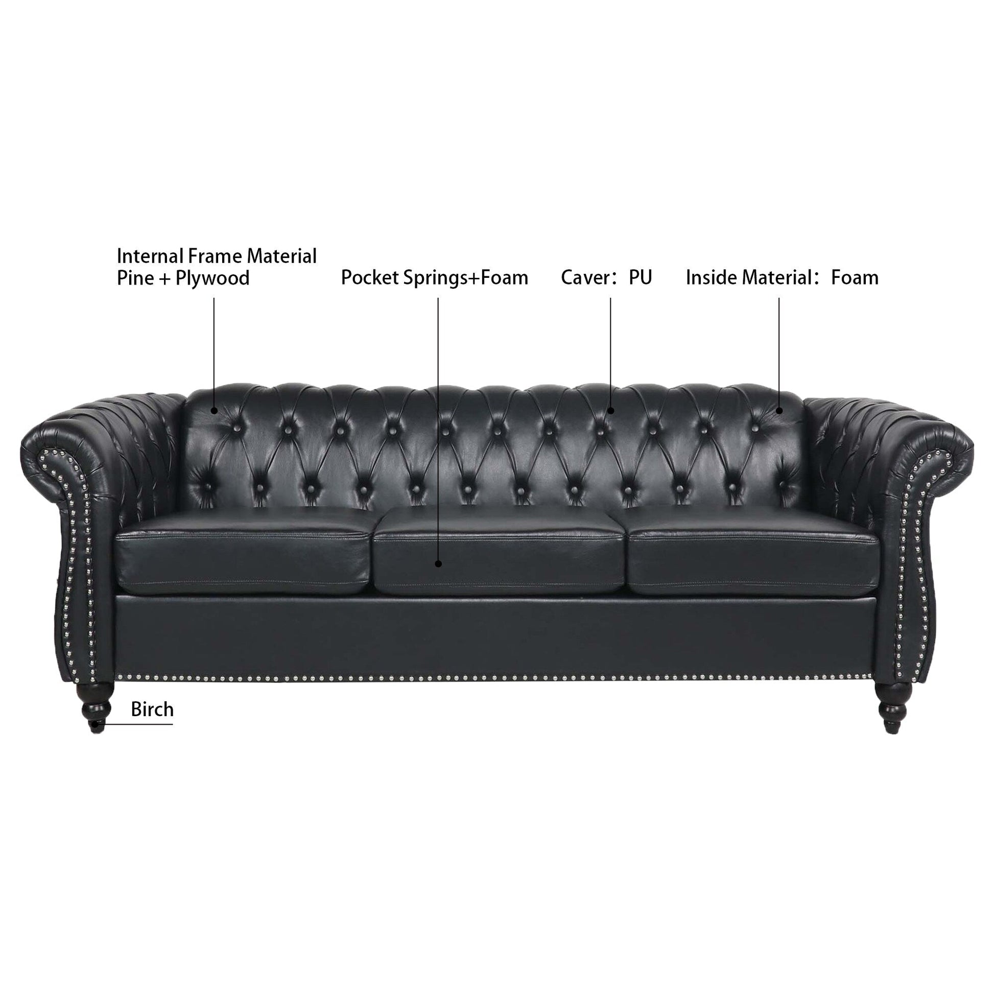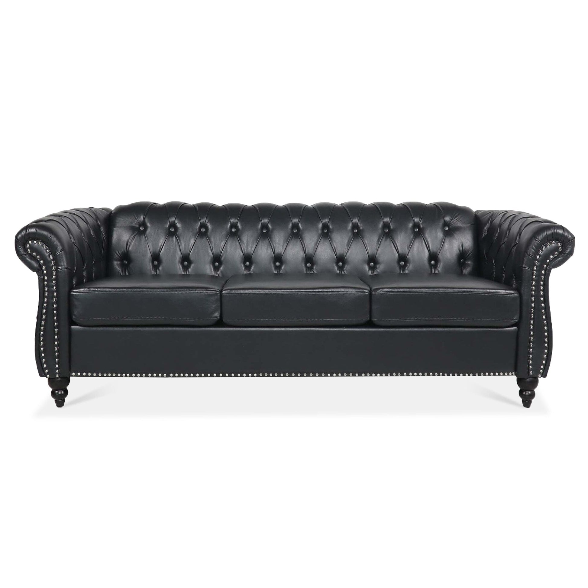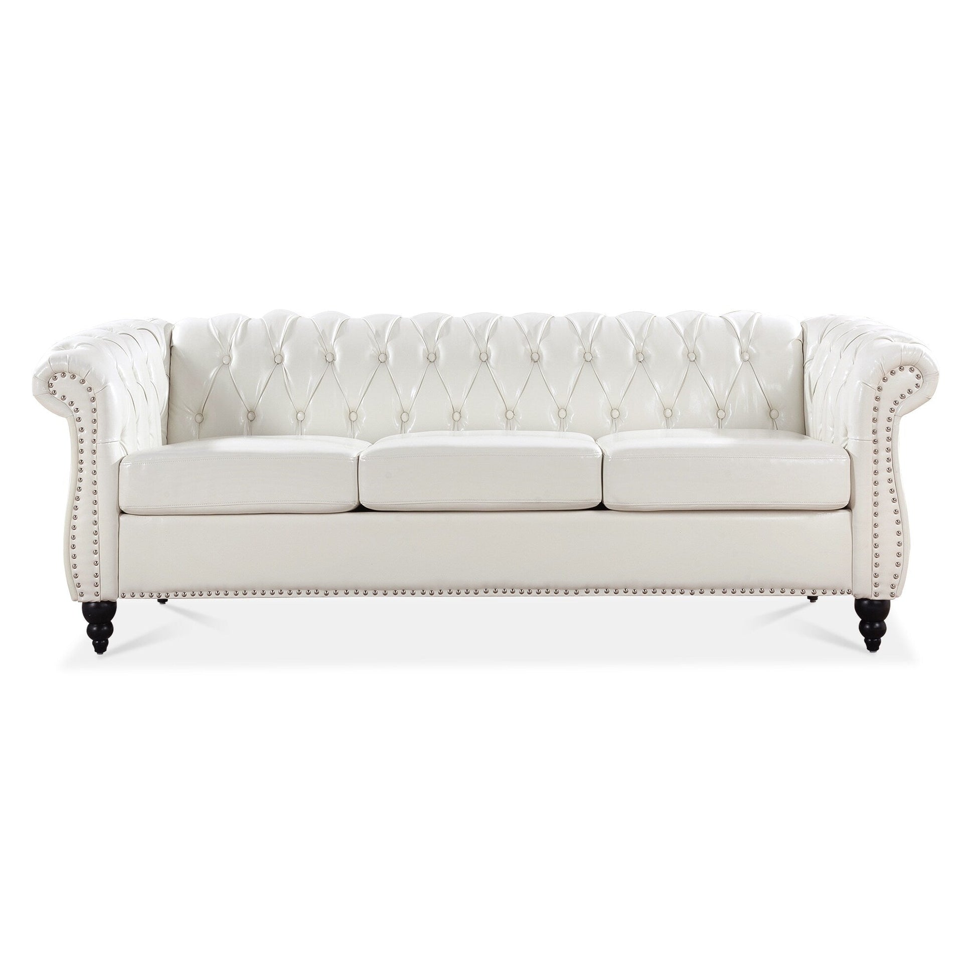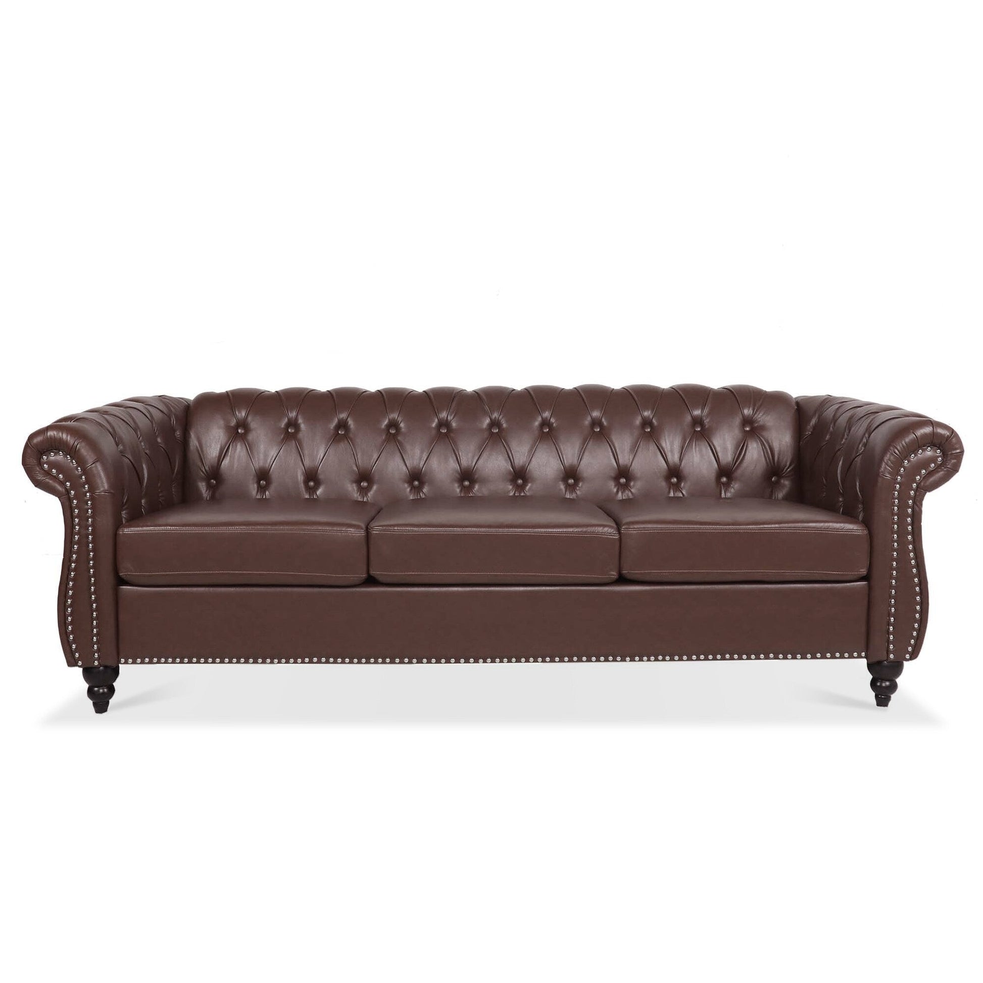 Canapé Chesterfield en similicuir avec accoudoirs roulés (3 places)
