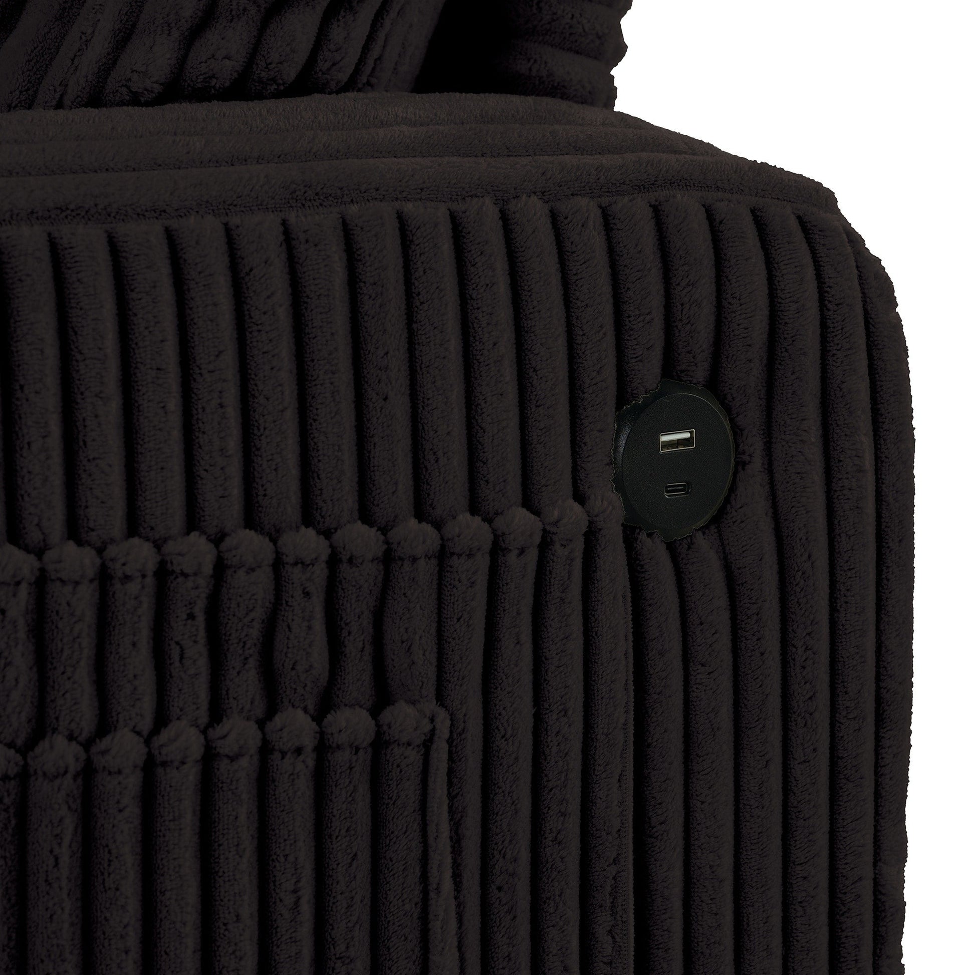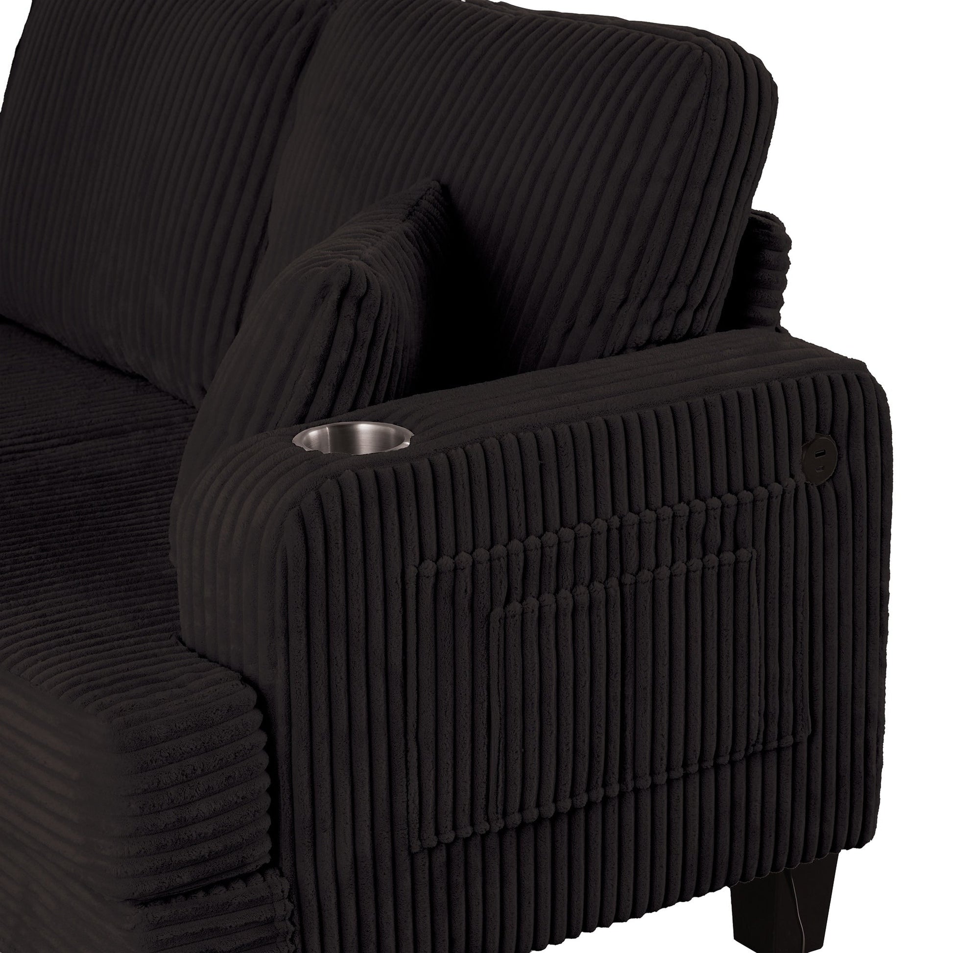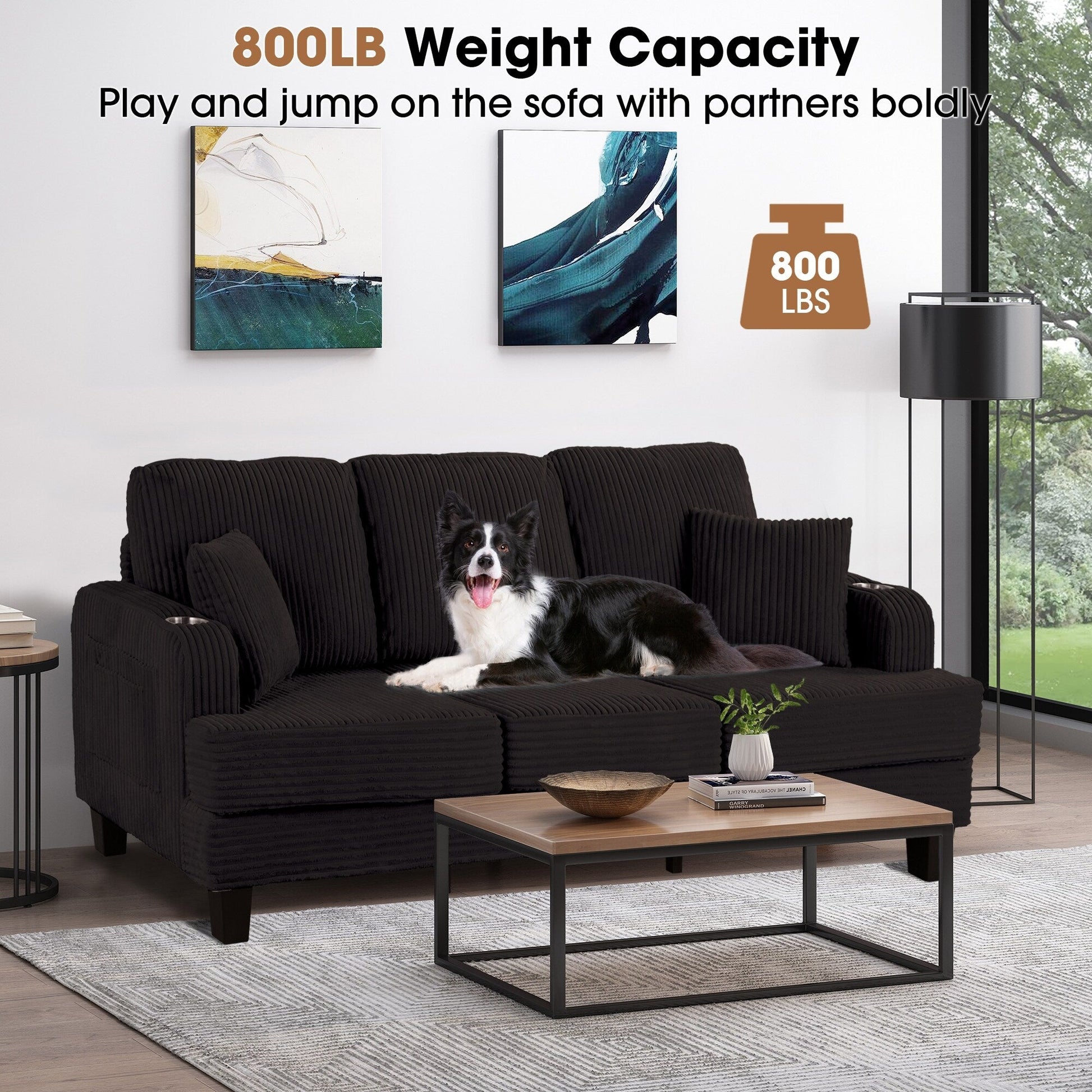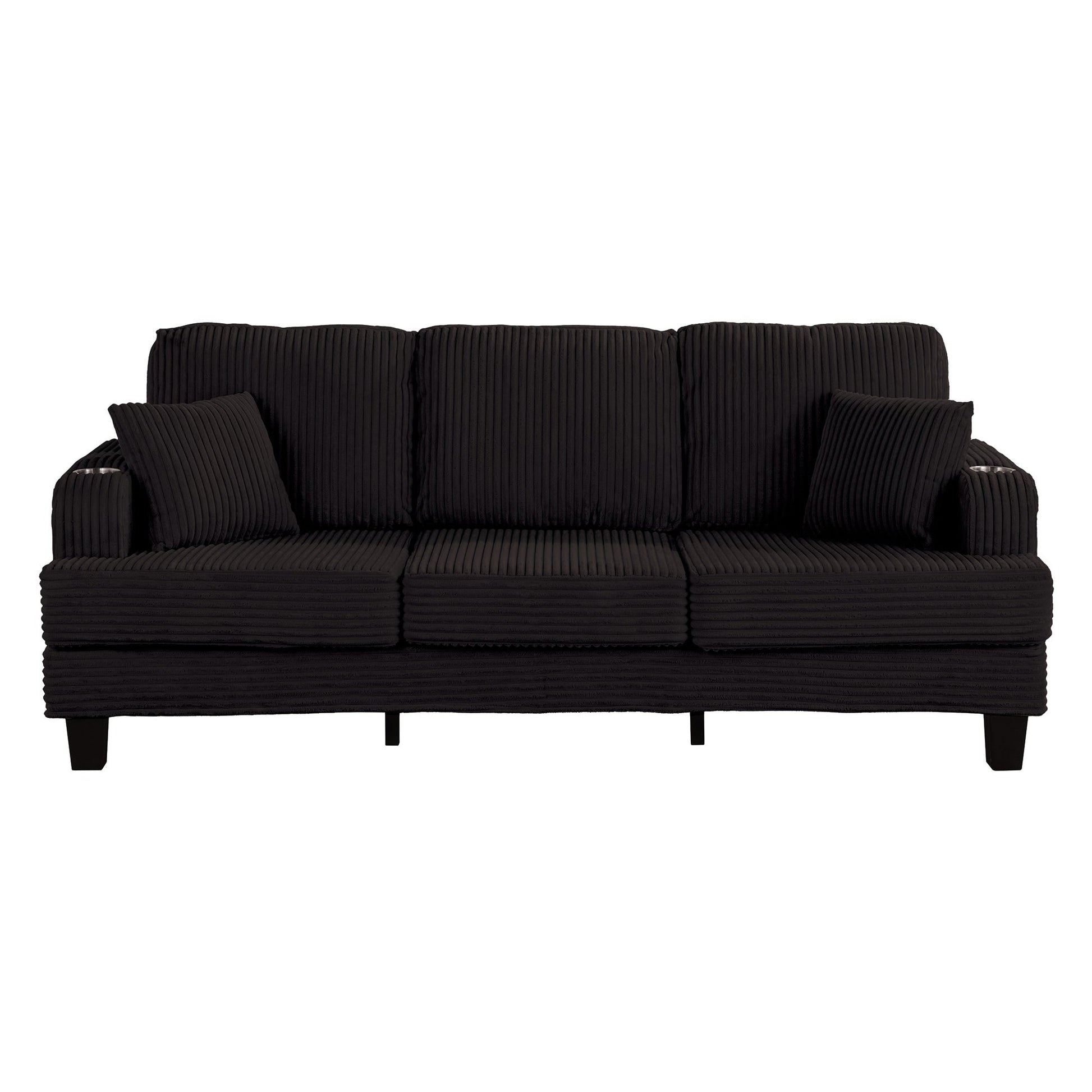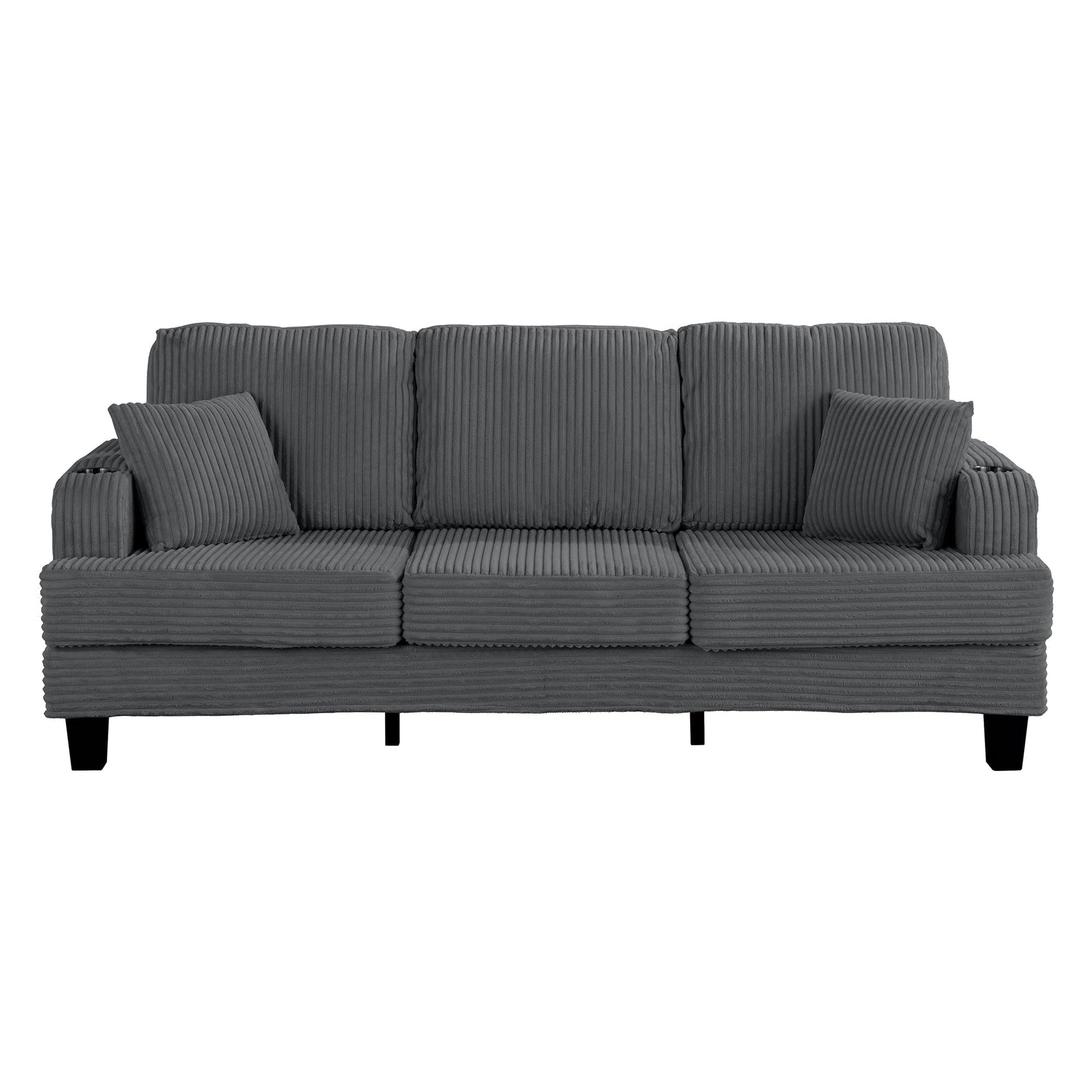 Canapé rectangulaire moderne 3 places en velours côtelé avec port USB et 2 oreillers