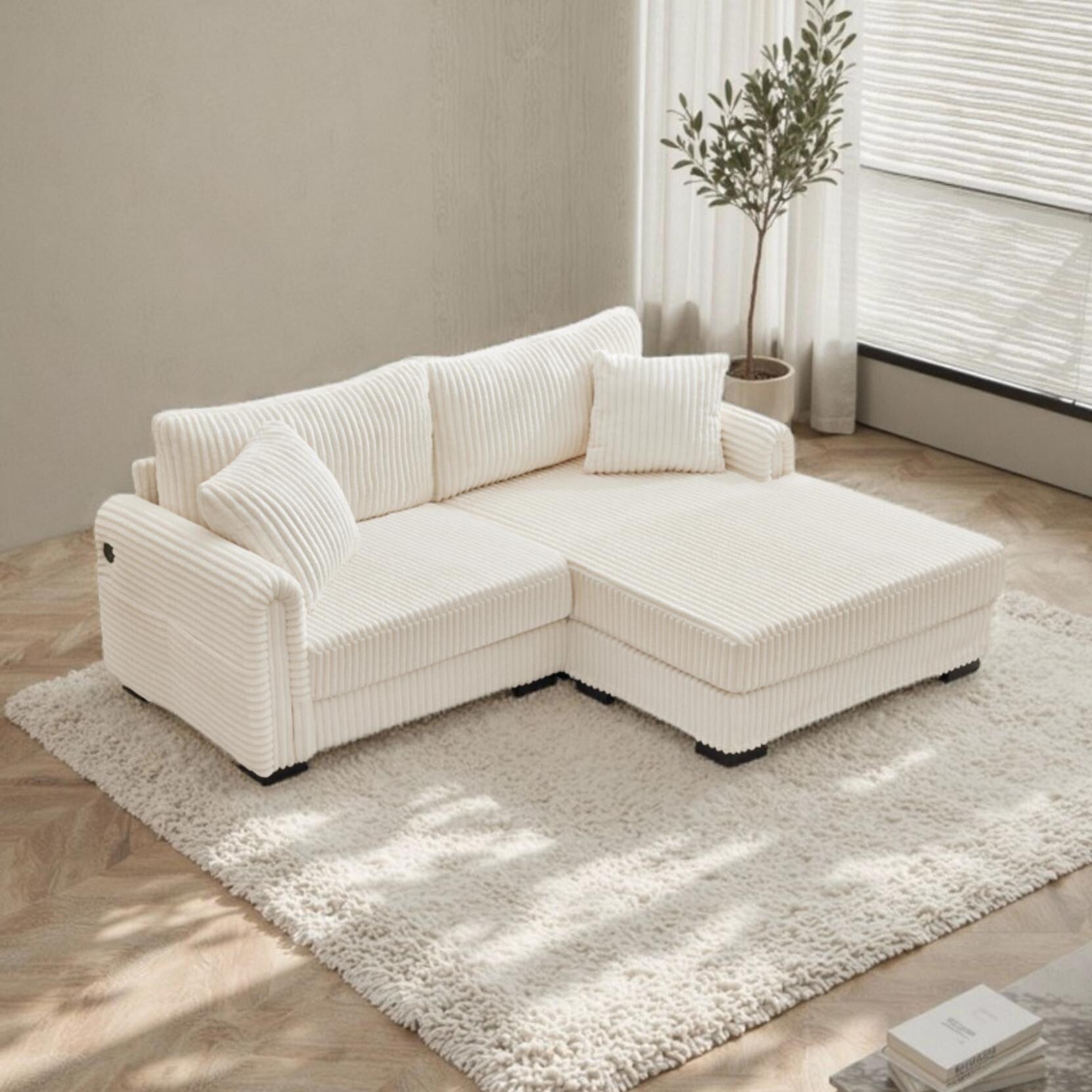 Canapé réversible 2 places en L en velours côtelé avec chargement USB-C et poche de rangement pour le salon