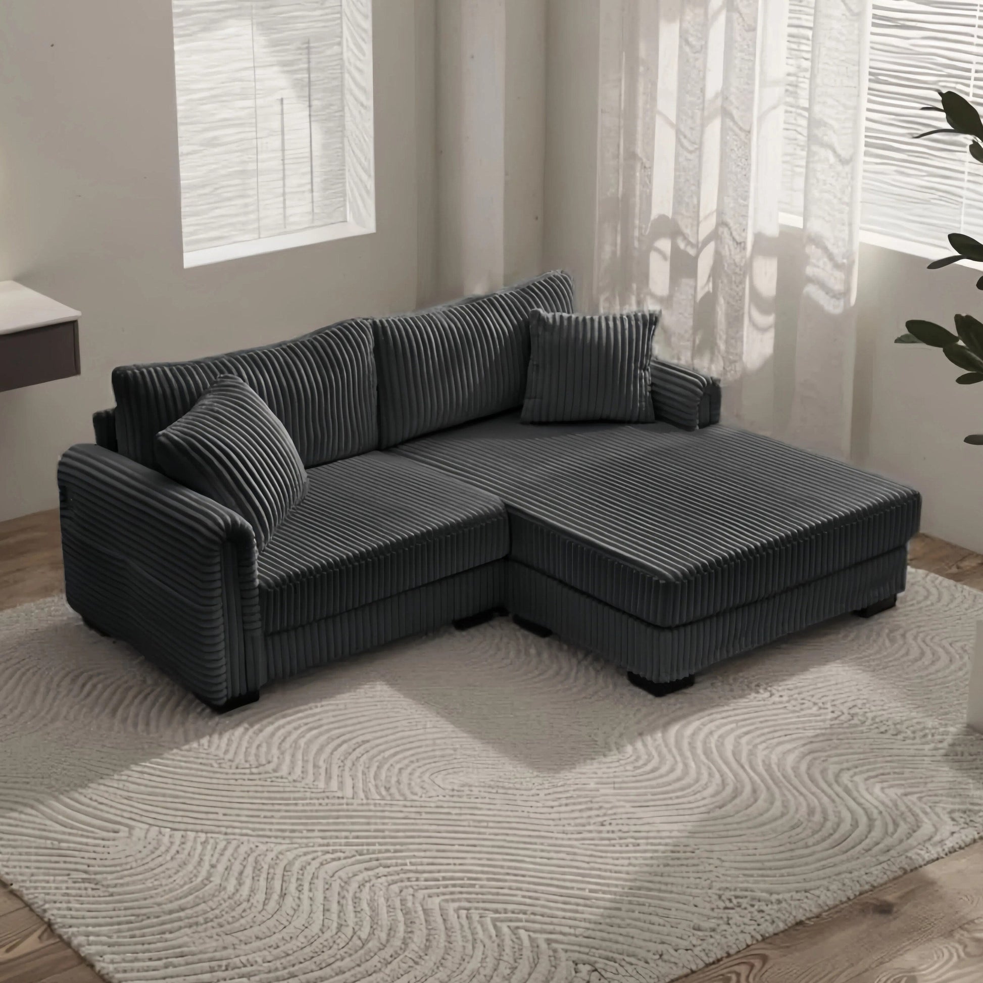 - Tissu velours côtelé haut de gamme : Fabriqué en velours côtelé doux et résistant, ce canapé offre une sensation chaleureuse et confortable, tout en étant facile d'entretien et durable. Même après une utilisation quotidienne ou des taches accidentelles, un simple coup d'éponge lui permet de conserver son aspect neuf et d'ajouter une touche d'élégance durable à votre intérieur.