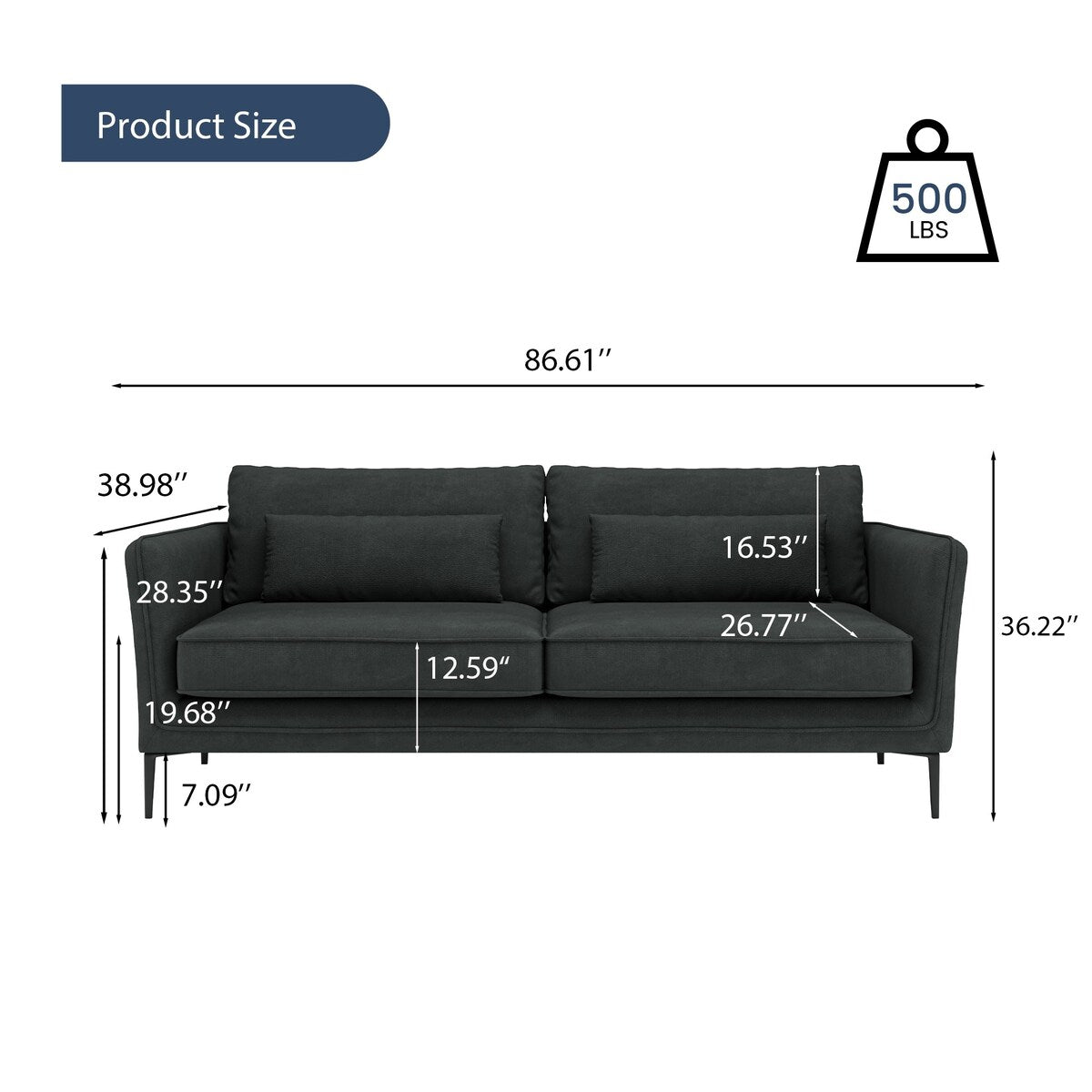 Canapé minimaliste moderne anti-rayures et imperméable 86,61 po, gris foncé