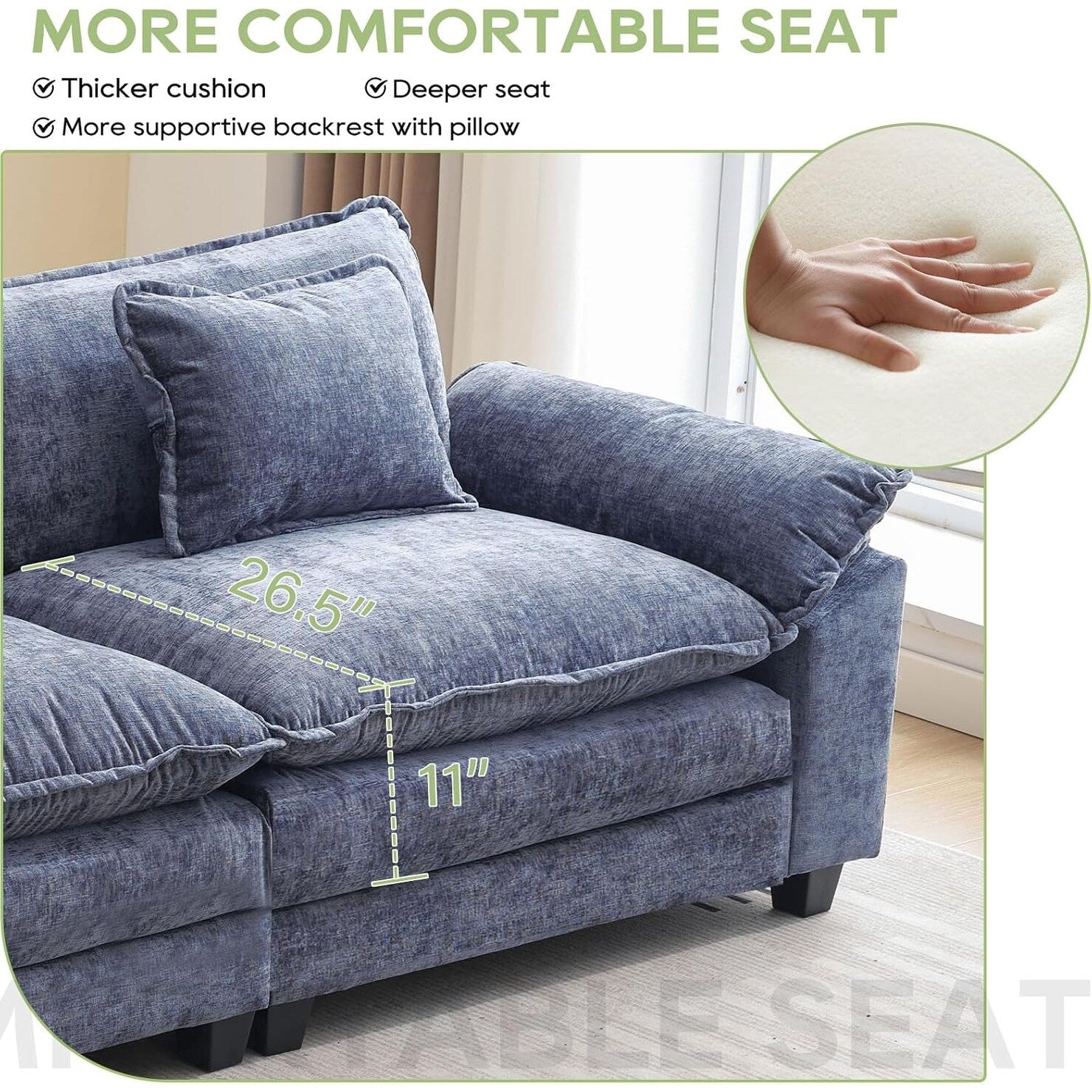 - Espace d'assise spacieux : avec sa conception d'assise extra-large et extra-profonde de 26,5 pouces, le canapé nuage doux offre un espace d'assise généreux, que vous receviez des invités ou que vous profitiez de moments de qualité en famille, tout le monde peut trouver un endroit confortable sur le canapé nuage