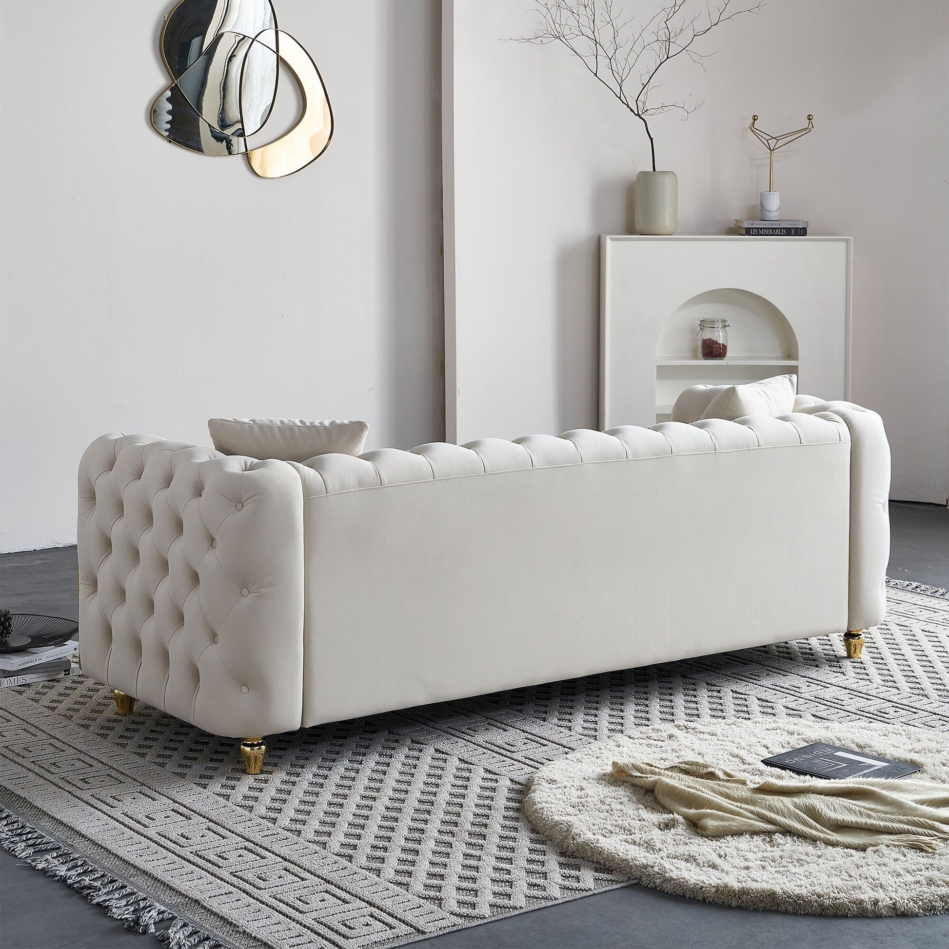 Canapé capitonné moderne de luxe de 86 po de largeur avec 2 coussins décoratifs pour salon et chambre à coucher