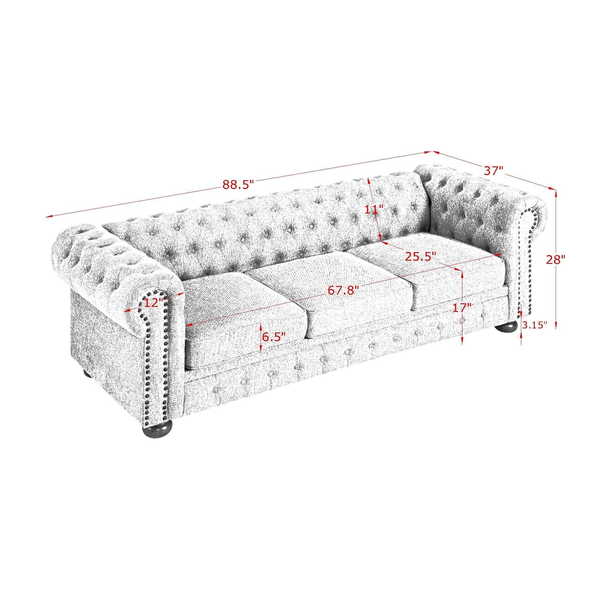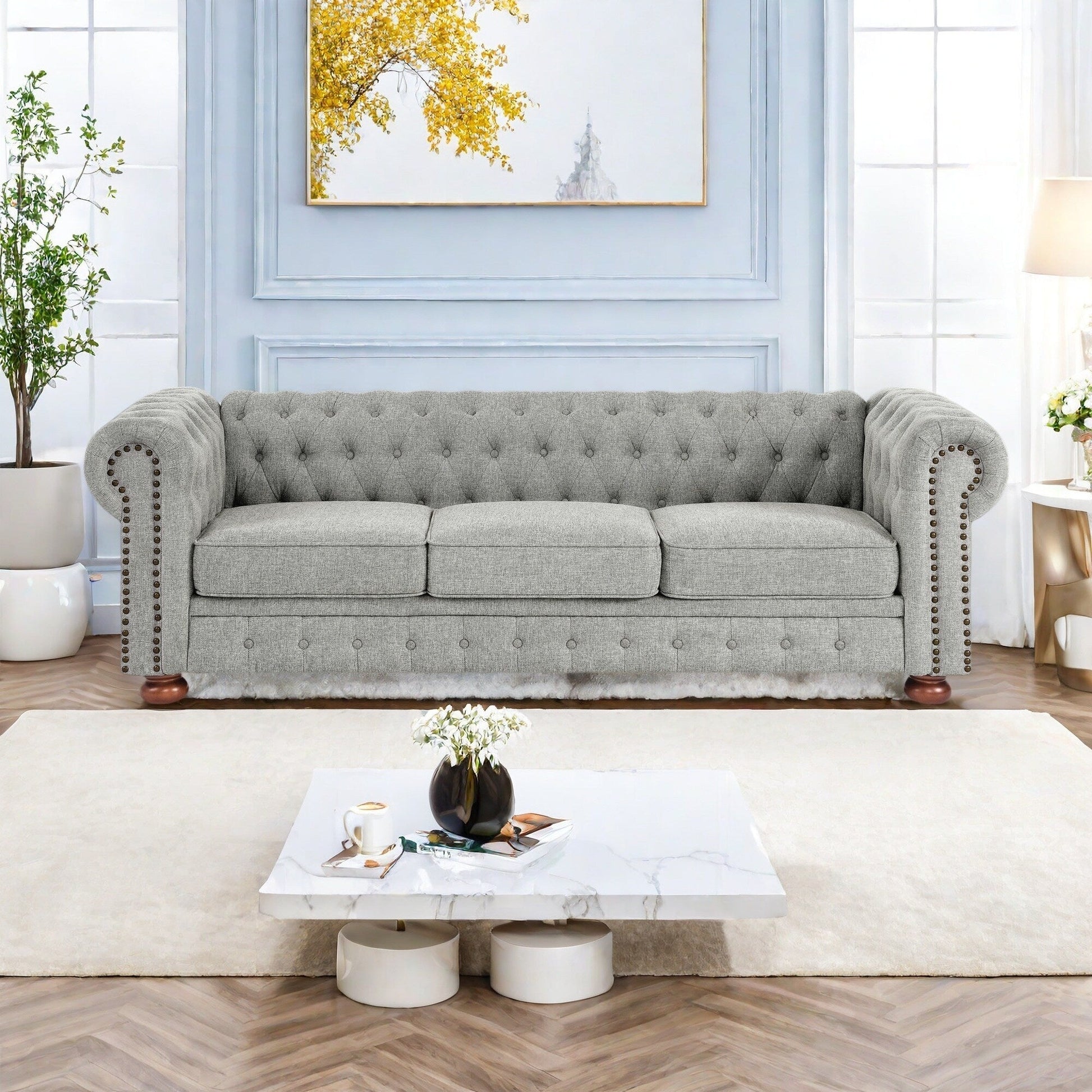 Canapé 3 places en lin 88,5 avec détails cloutés et structure en bois massif pour le salon