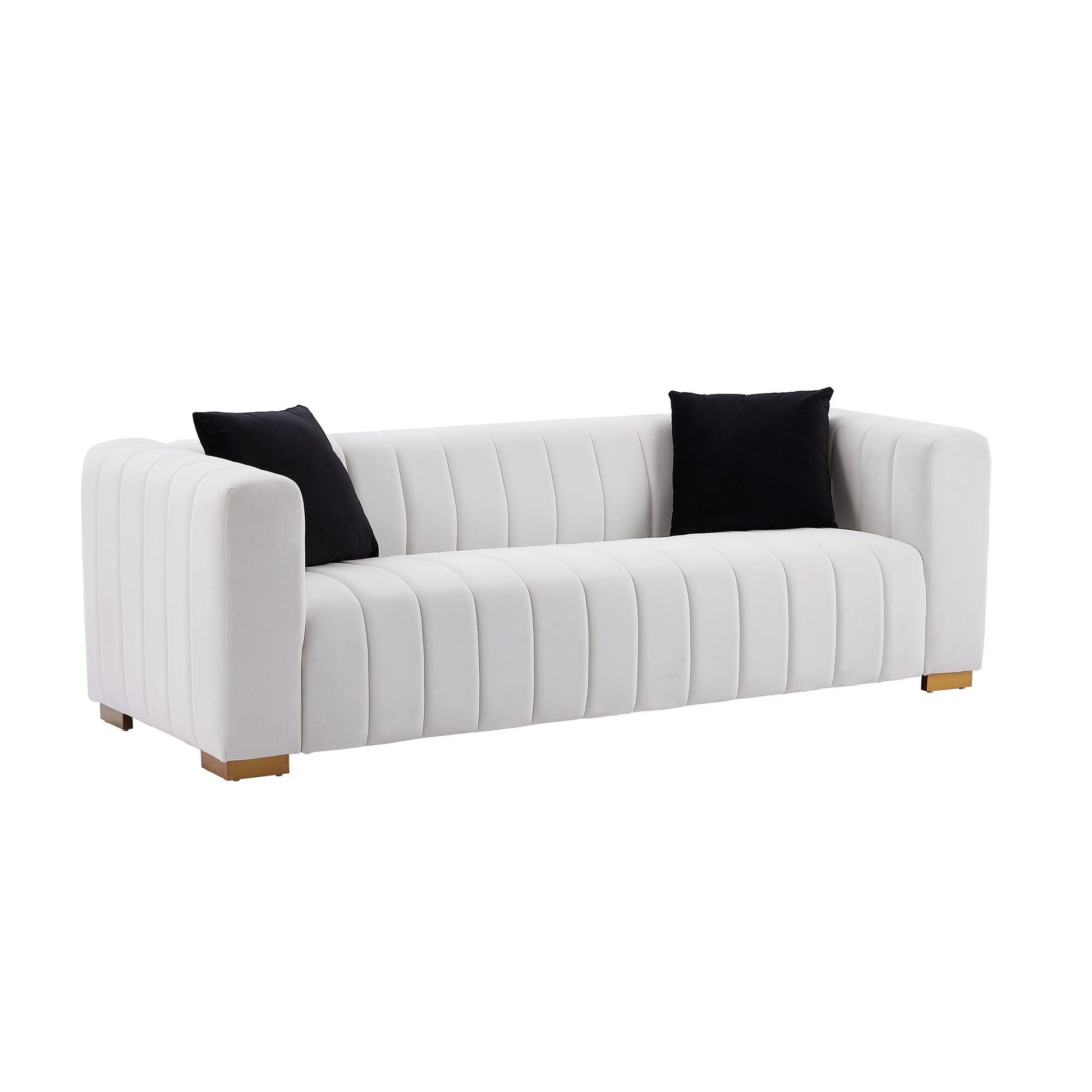 - Design moderne : Comprend un capitonnage à canaux verticaux, des accoudoirs arrondis et des pieds élégants en métal doré pour une esthétique contemporaine qui complète n'importe quel décor.