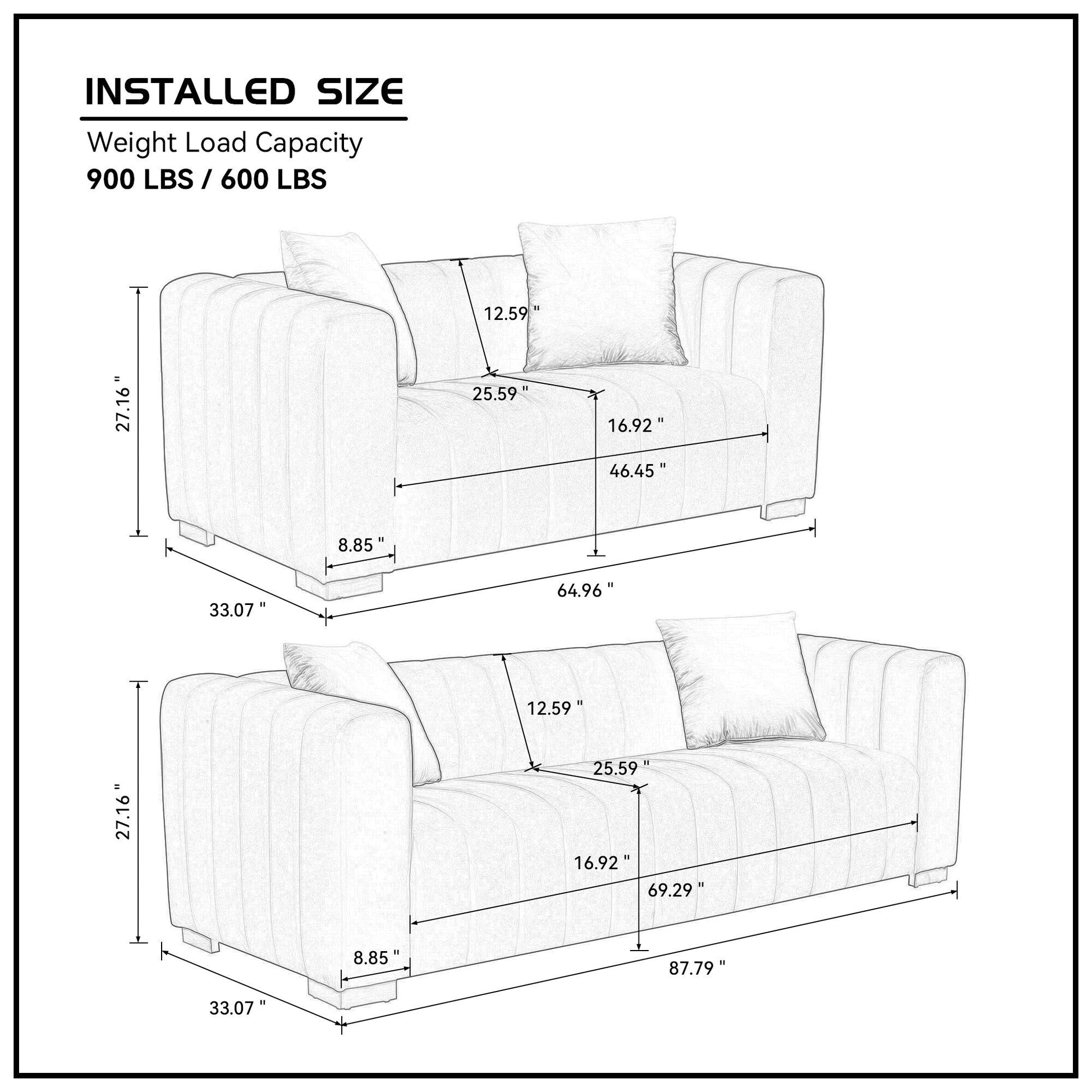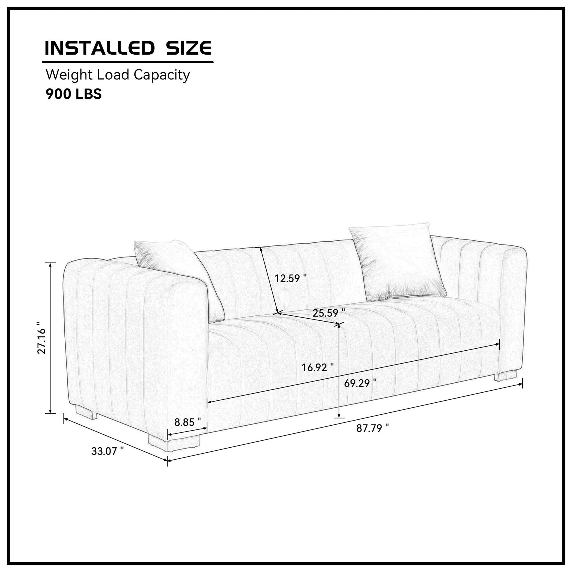 - Conception peu encombrante : les dimensions compactes (87,79'L x 27,16'W x 33,07'H) évitent un aspect encombré tout en offrant une assise confortable.