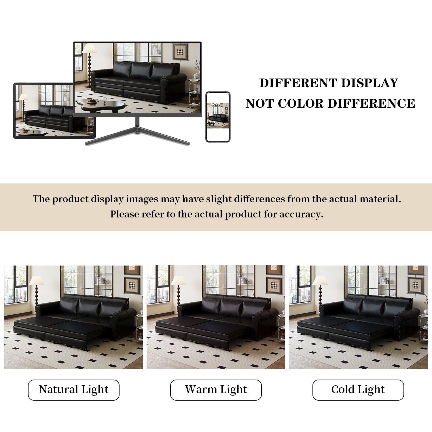 Canapé-lit 3 places en similicuir avec méridienne, style rétro avec garniture à rivets, 93,70 $