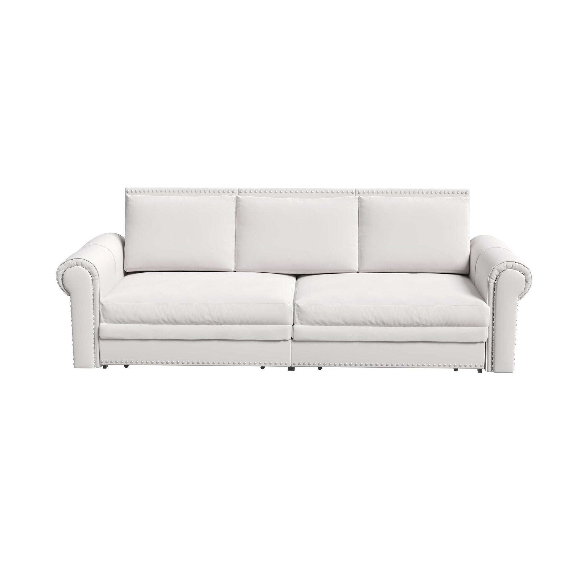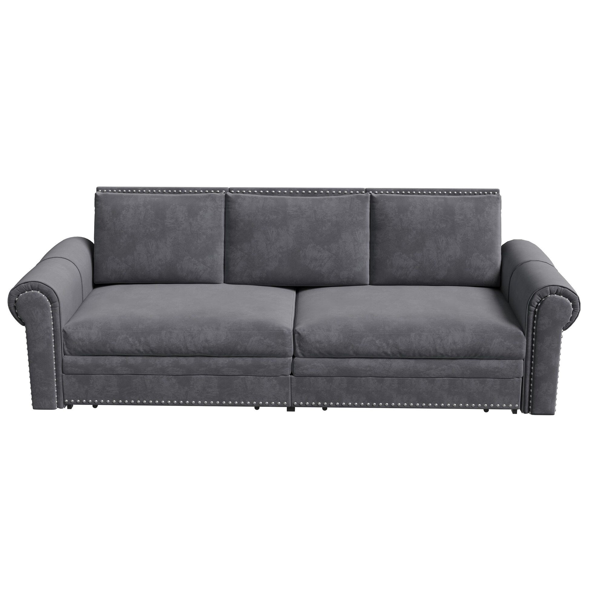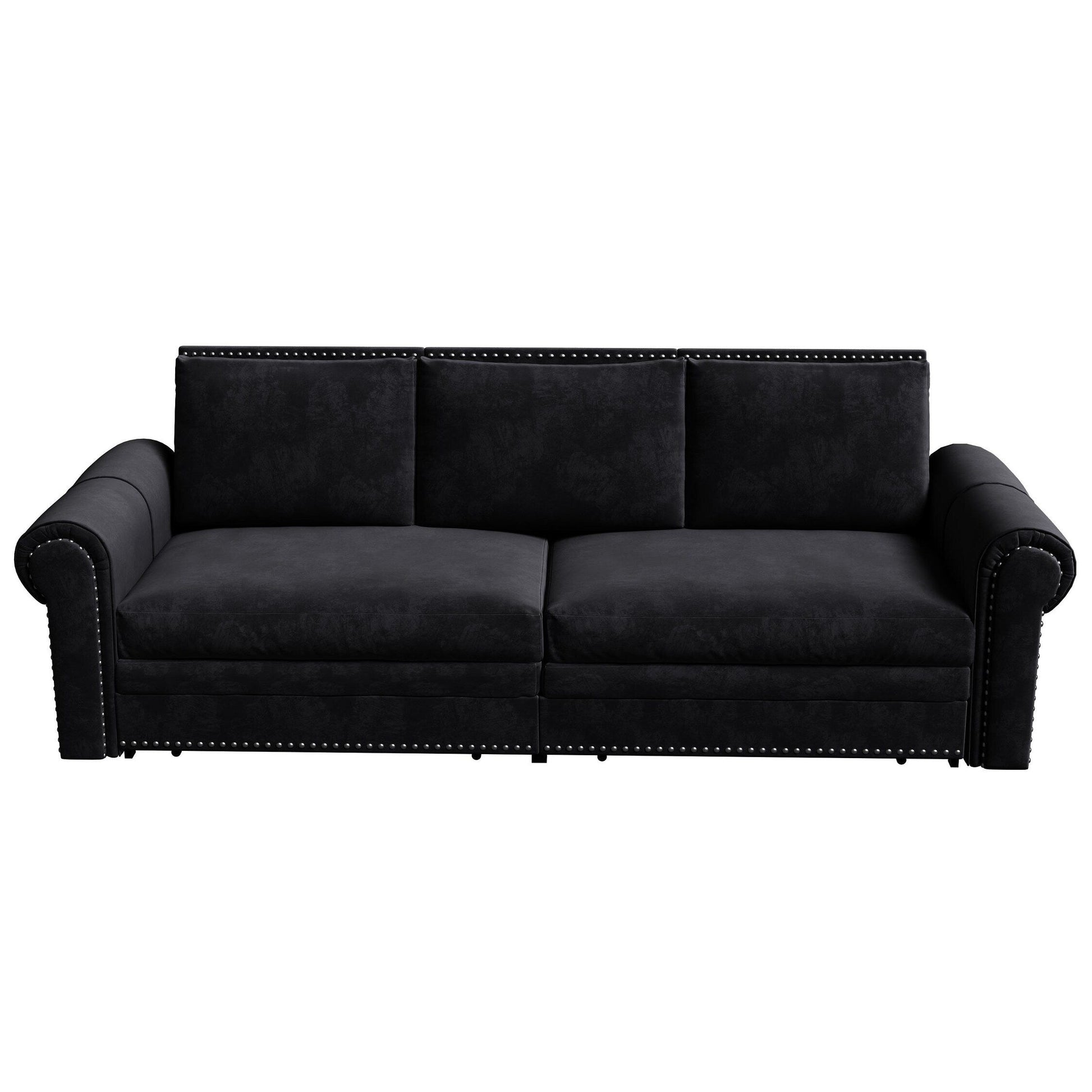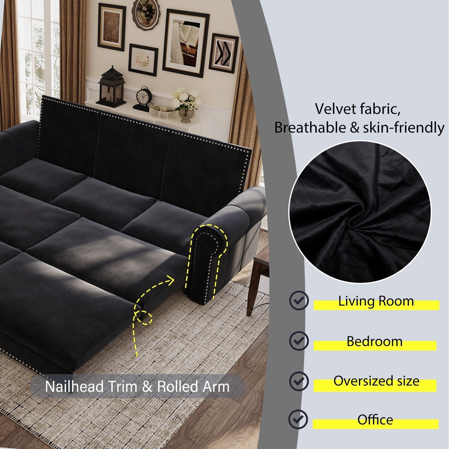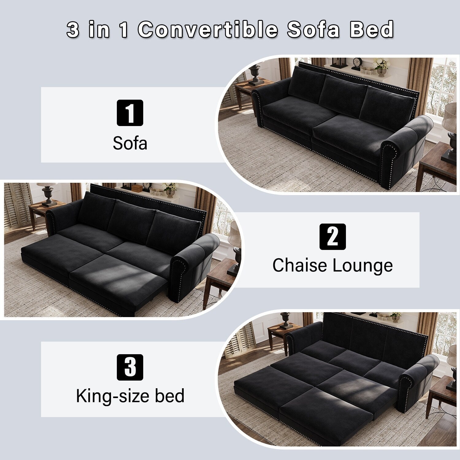 Canapé-lit 3 places en velours 93,7 pouces 3 en 1 avec accoudoirs roulés et garniture cloutée