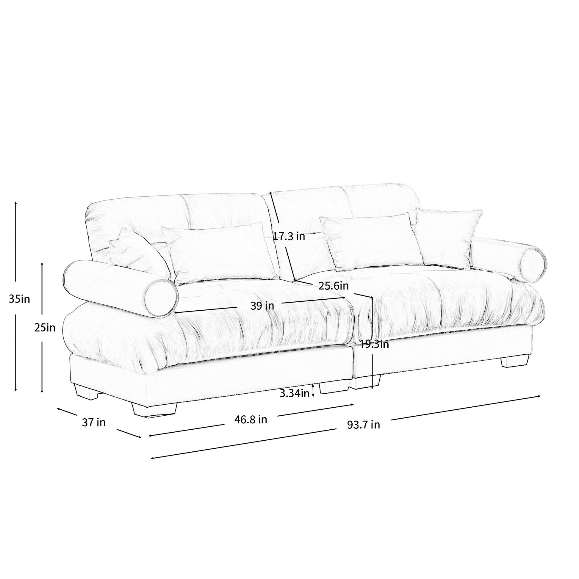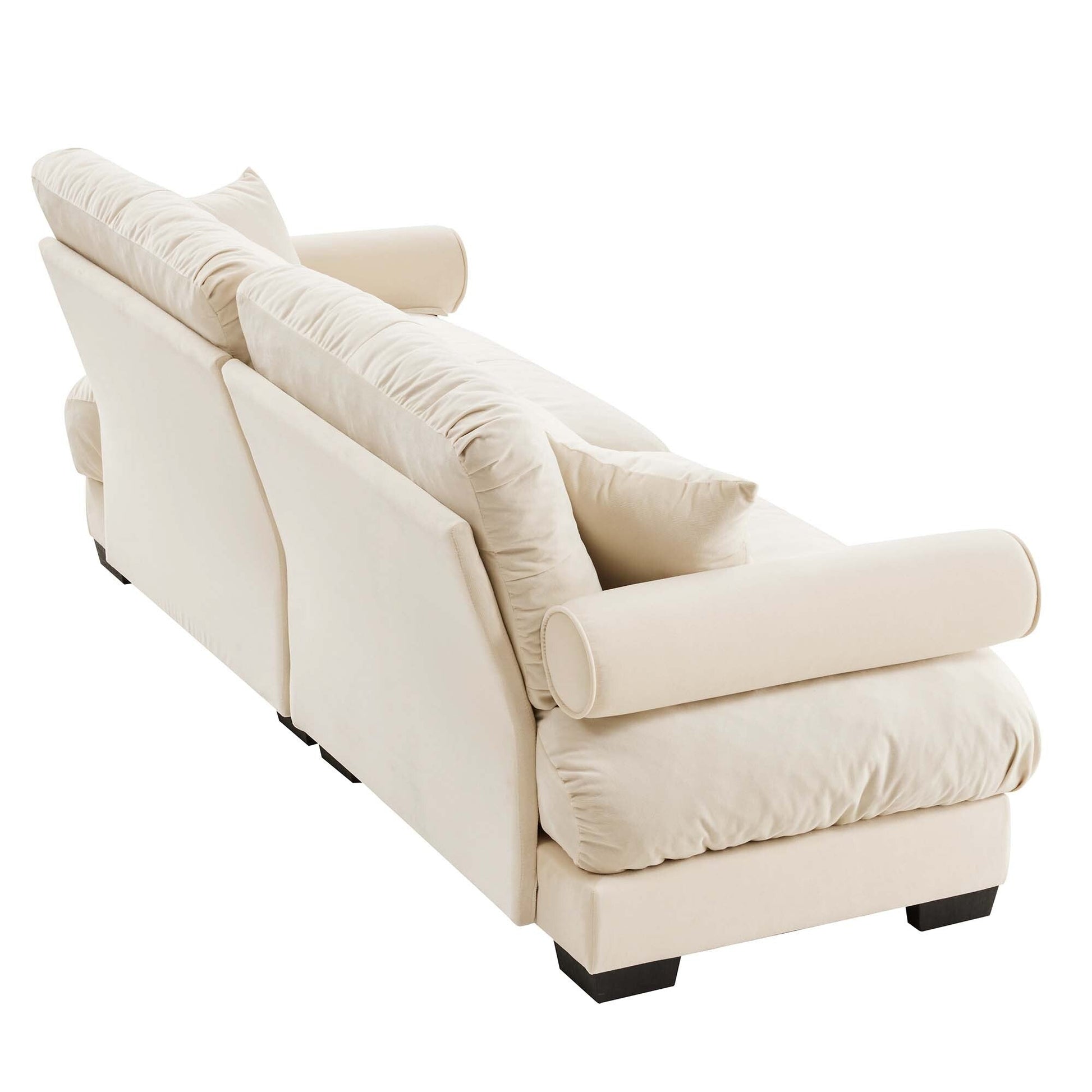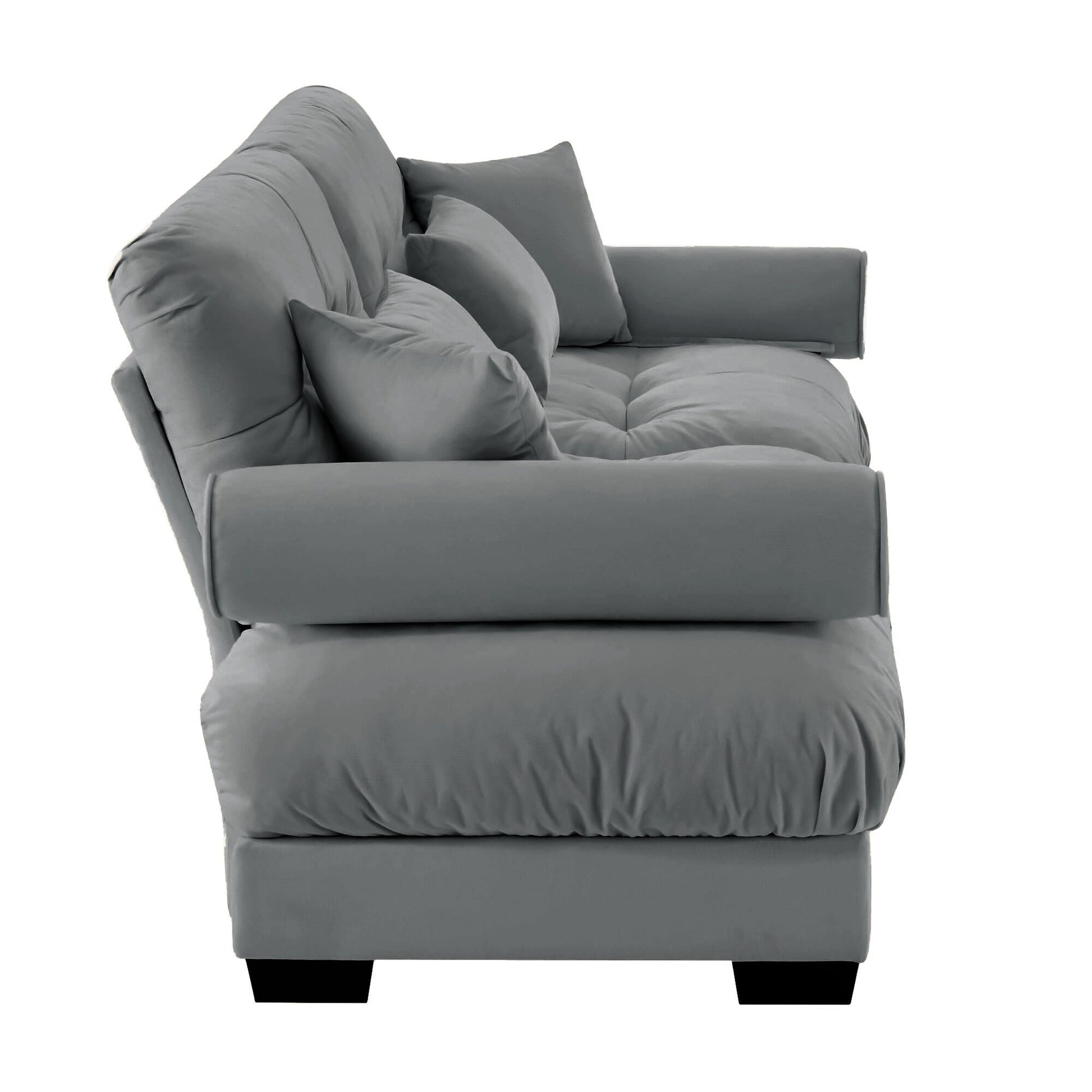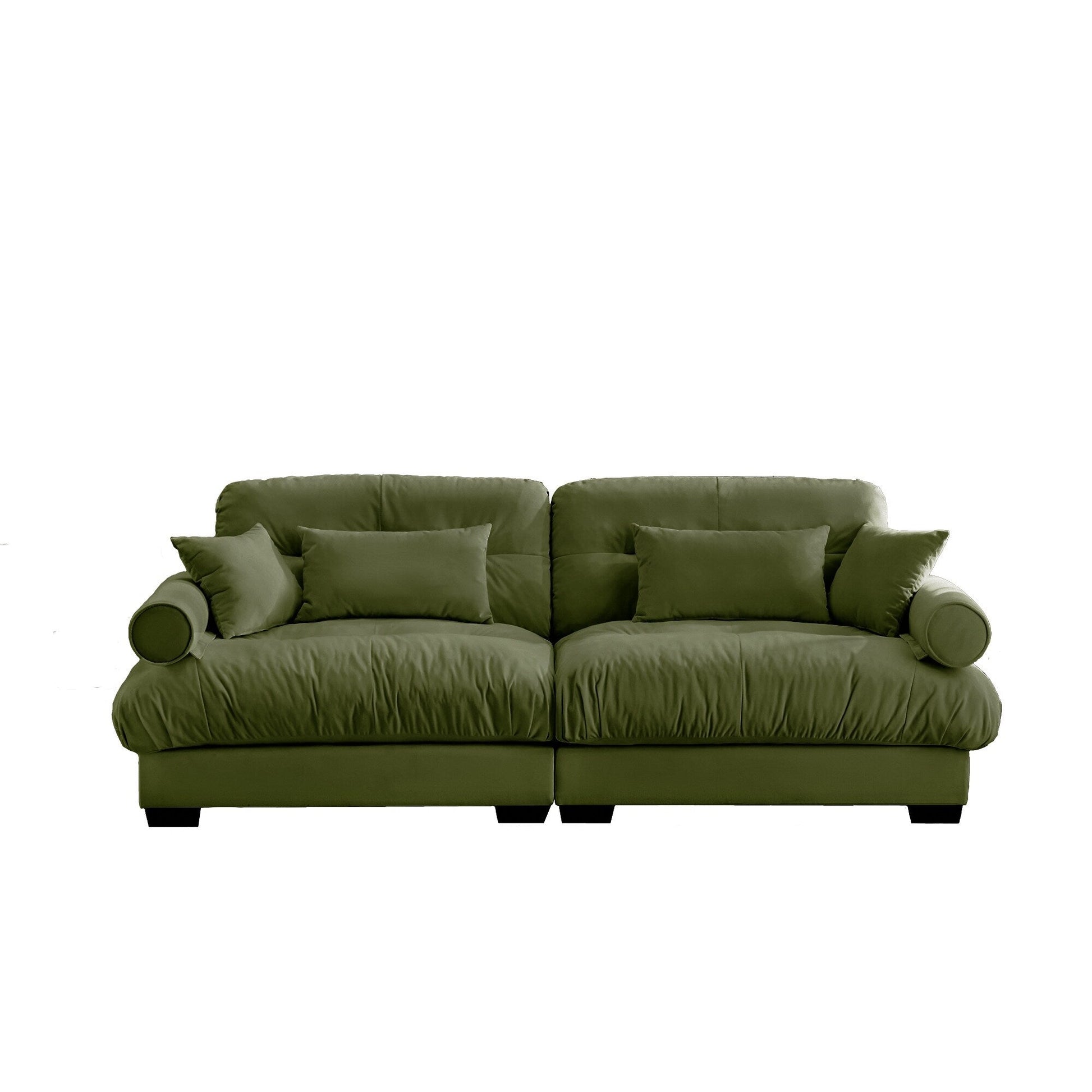 Canapé 3 places en velours 93,7 pouces avec accoudoirs traversins et coussins en éponge haute résilience