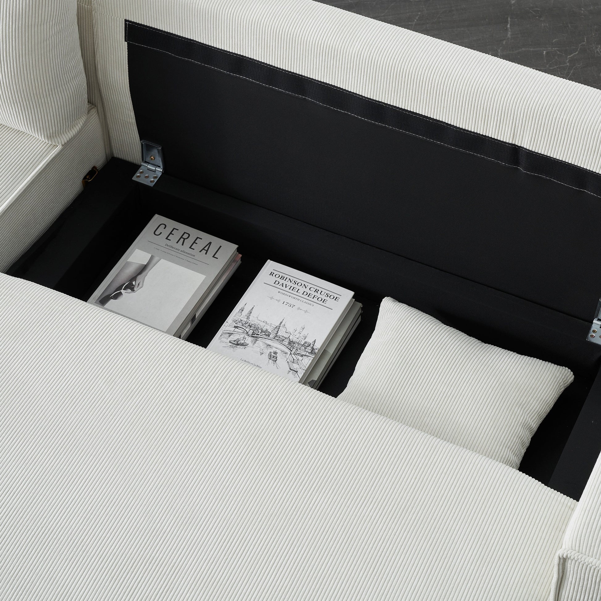 Canapé-lit convertible 3 places en velours côtelé de 93 po avec méridienne réglable, deux oreillers et rangement - Design compact