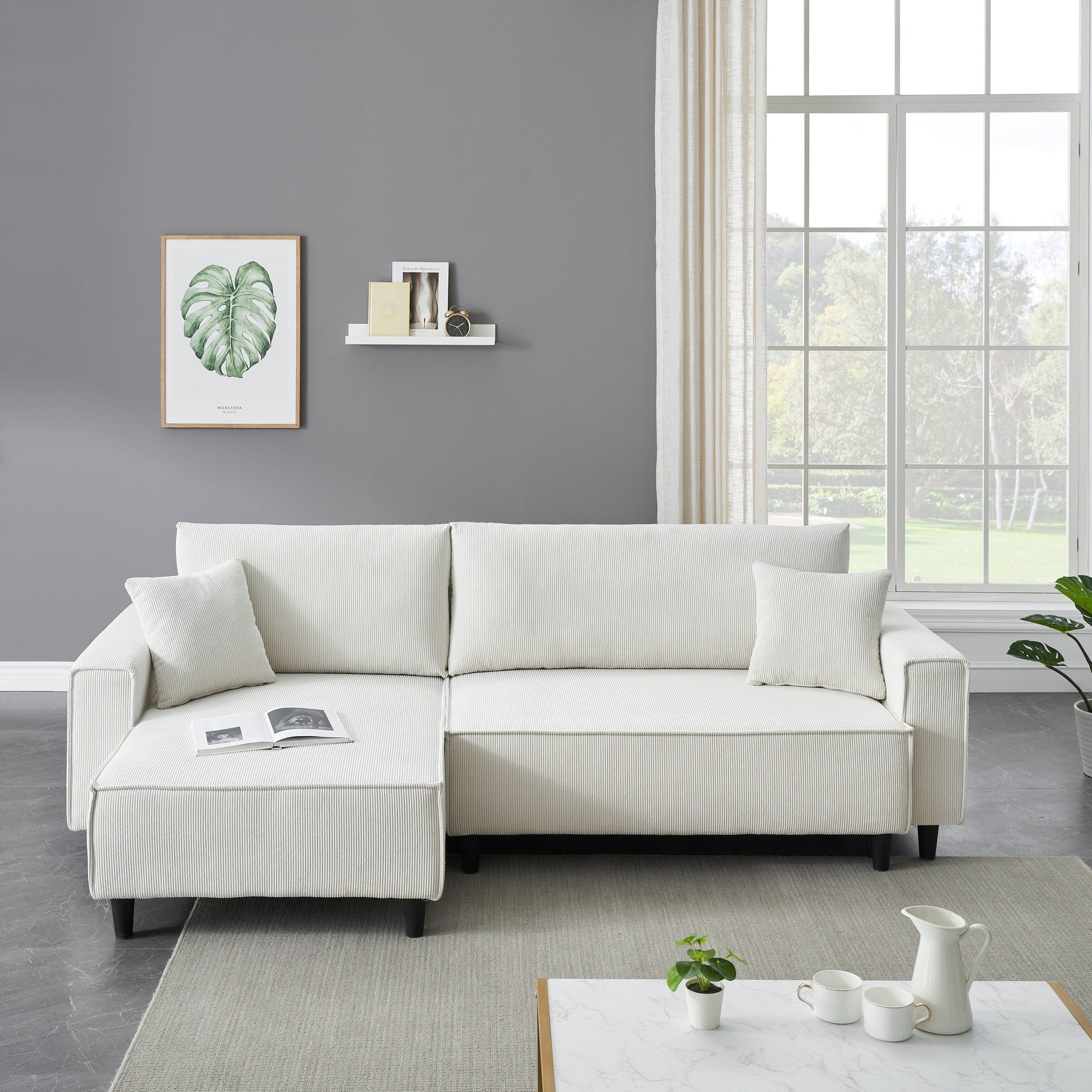 - Tissu en velours côtelé durable : Fabriqué en velours côtelé de haute qualité, le canapé est conçu pour résister à une utilisation quotidienne tout en offrant un toucher doux.