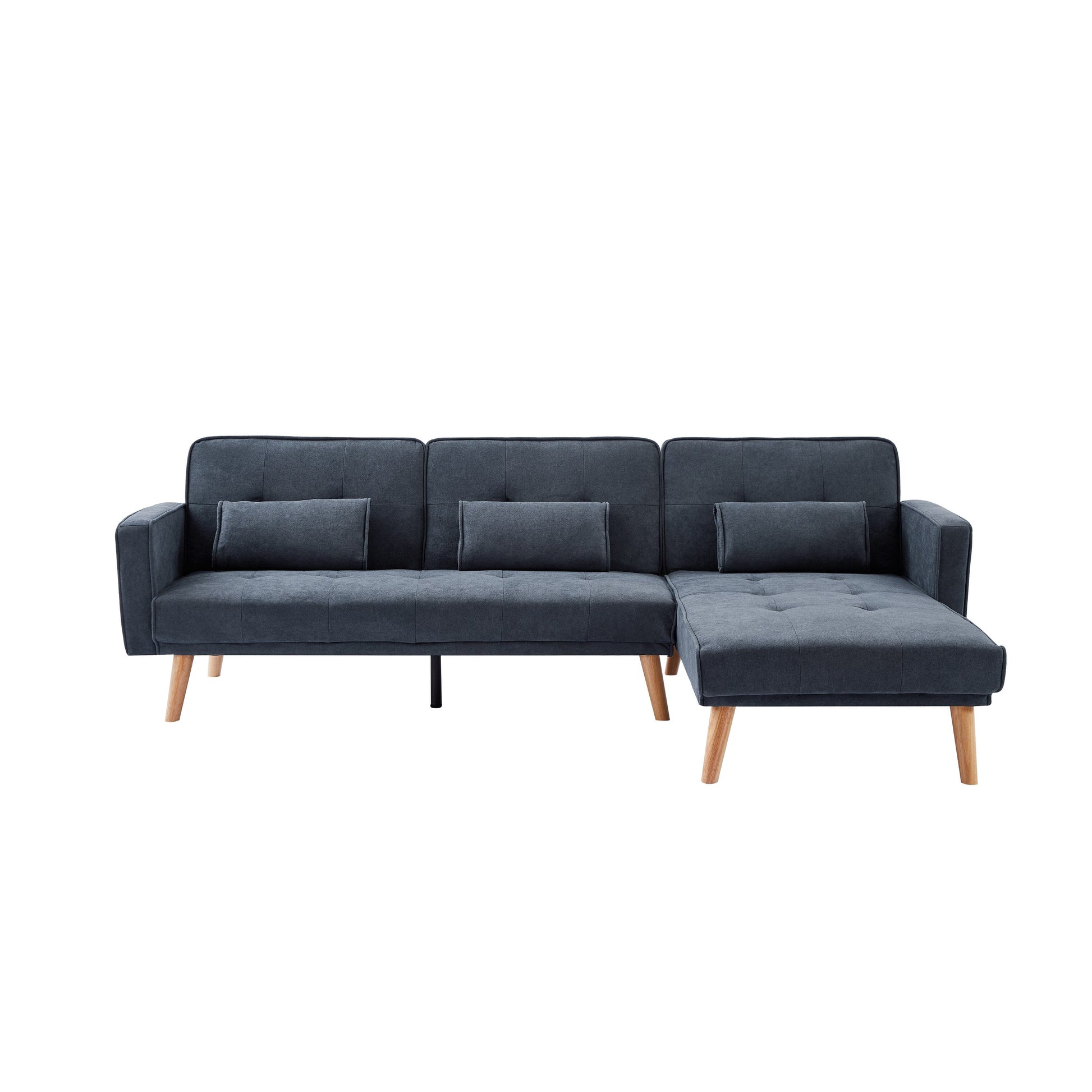 Canapé sectionnel convertible en lin de 94,5 po avec méridienne droite, rangement et coussins en mousse