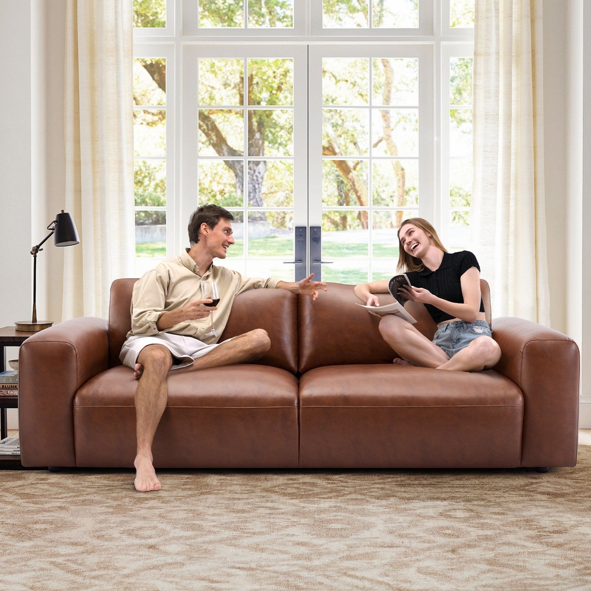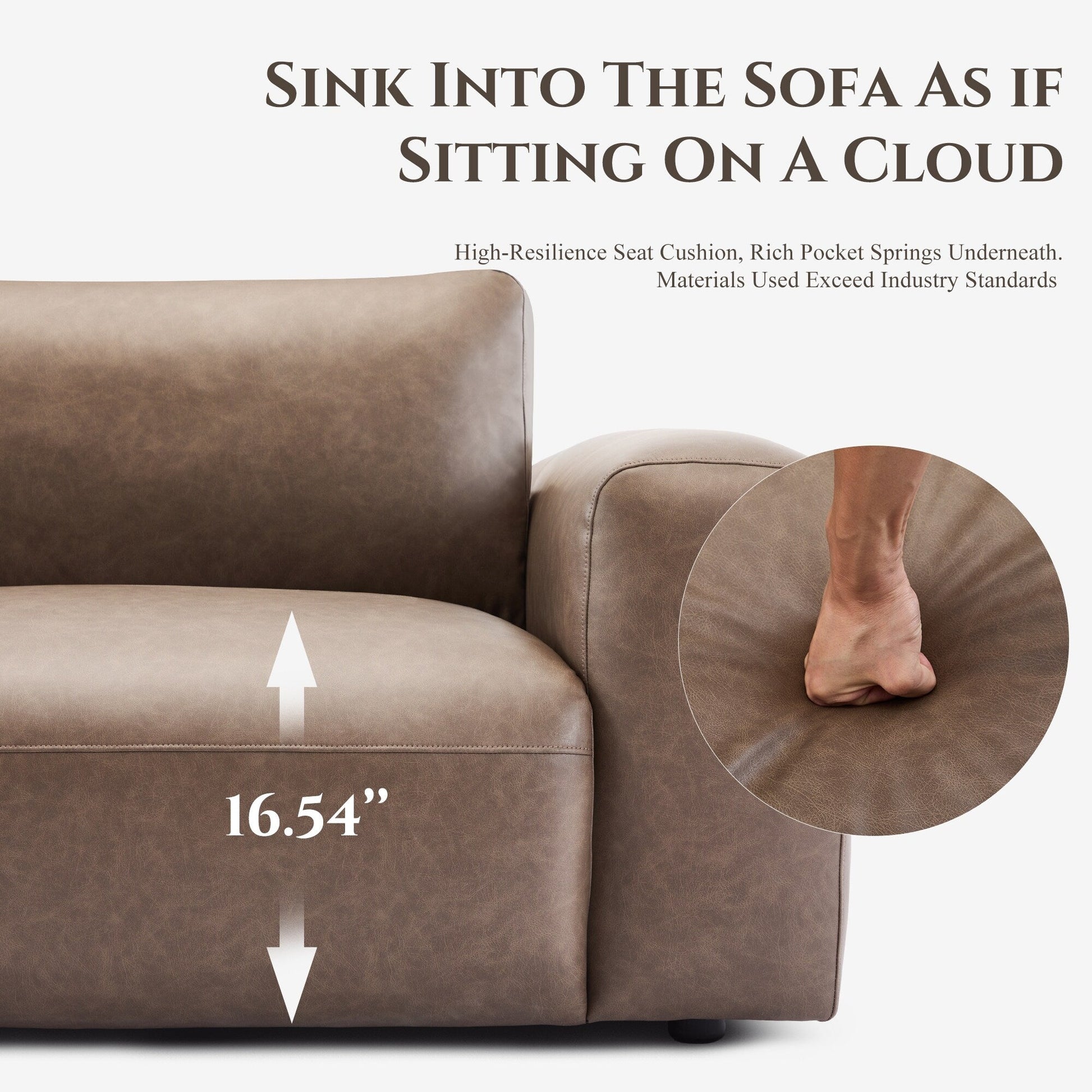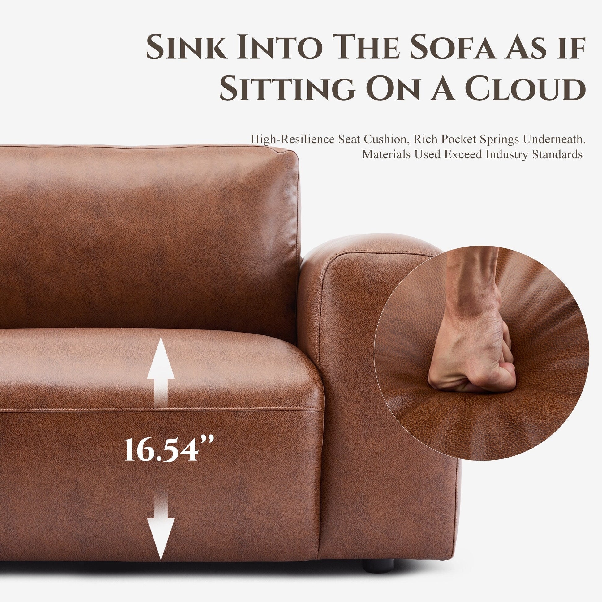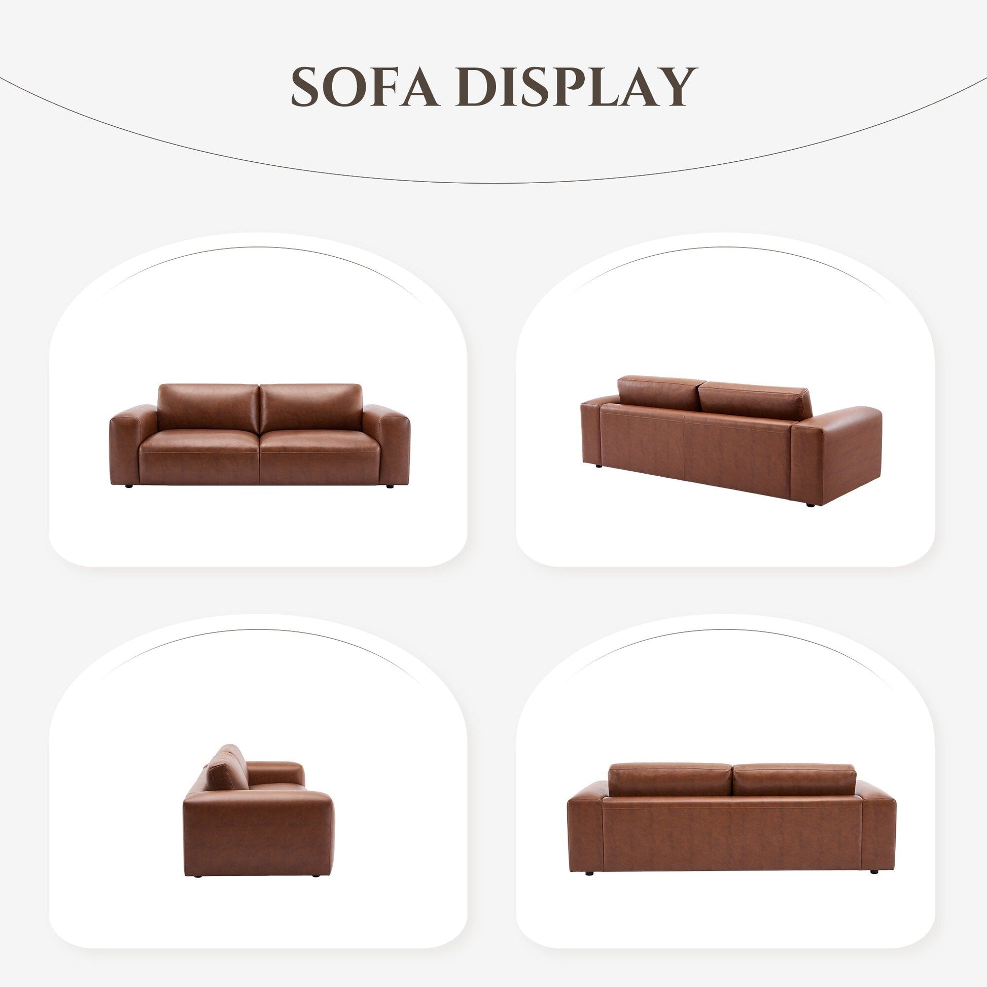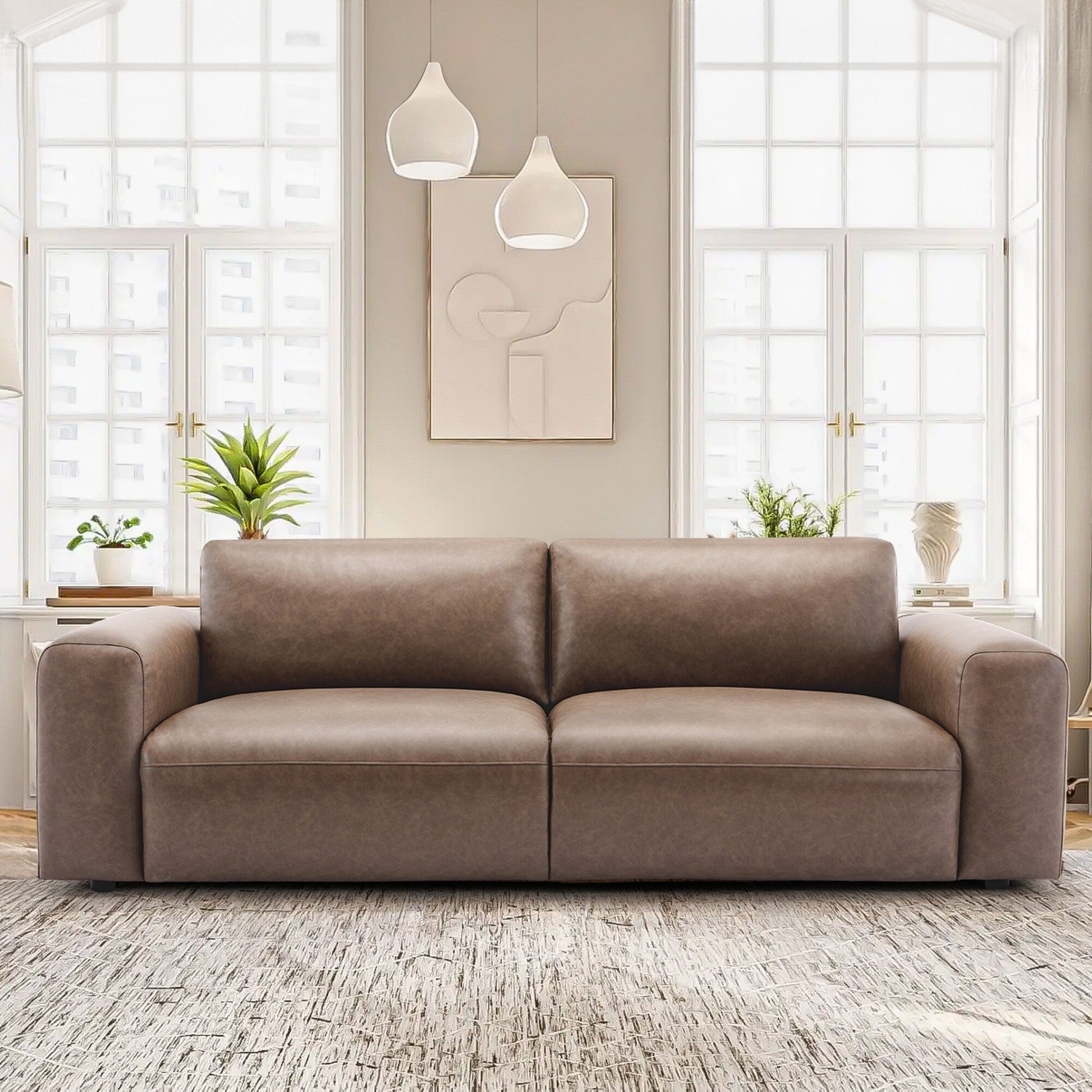 Canapé 3 places surdimensionné 95 cm - Assises extra profondes et accoudoirs larges, canapé en cuir synthétique garni de duvet pour salon et appartement