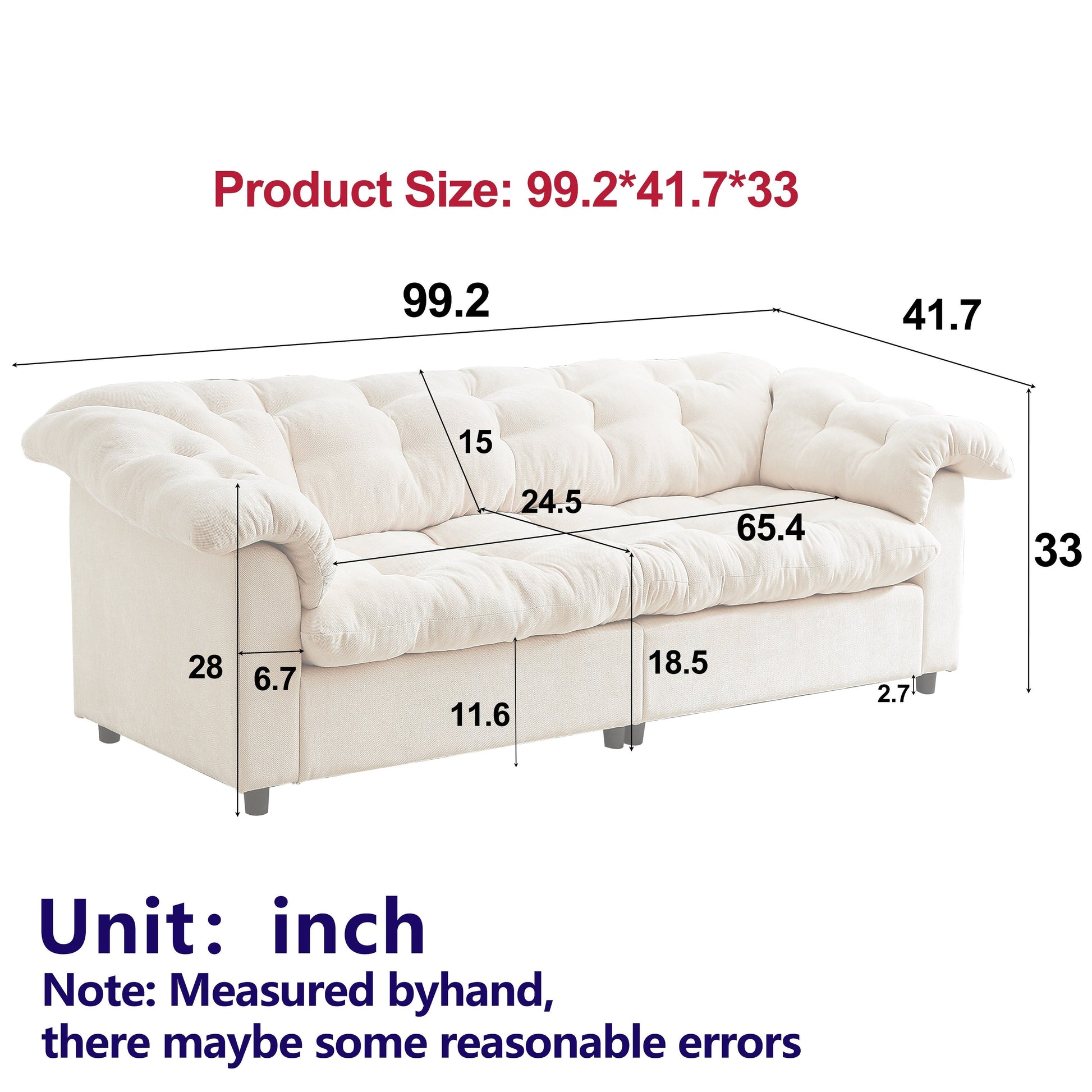 Canapé 3 places classique moderne en tissu 99.2, structure en bois massif et coussin moelleux en forme de nuage