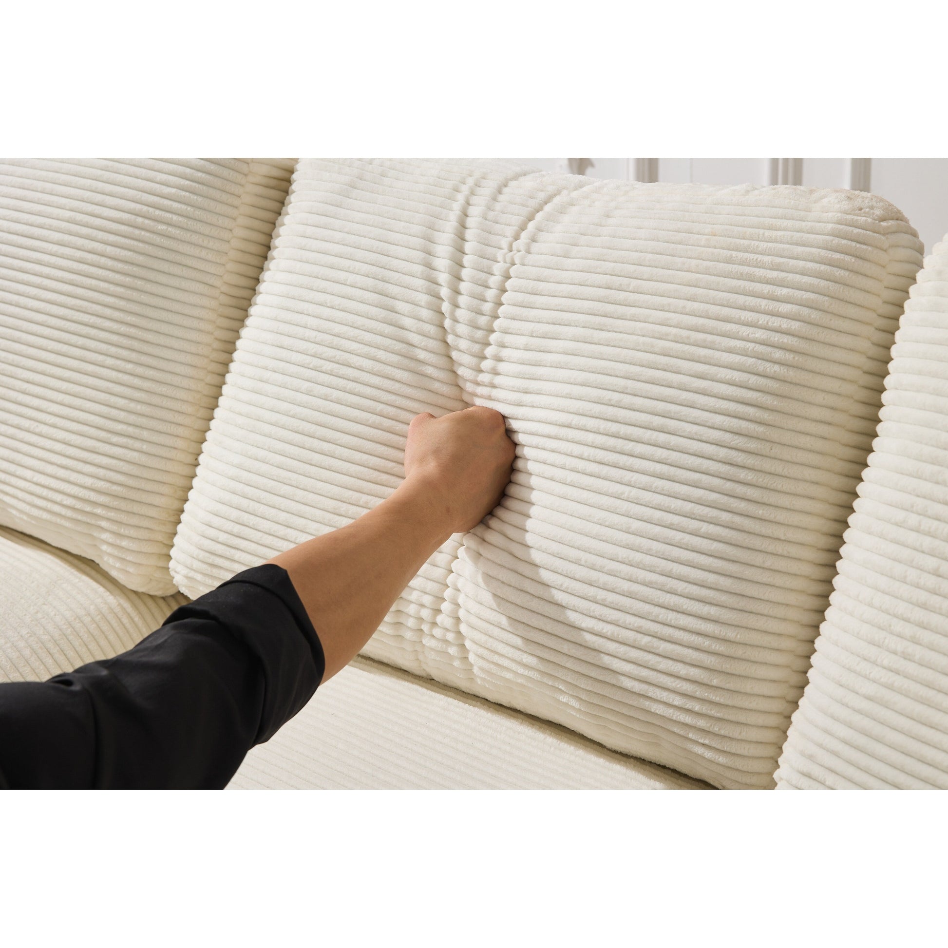 Canapé confortable : Notre ensemble de canapé réversible incarne le luxe et l'espace d'assise, vous offrant un confort optimal. Confectionné en velours côtelé doux, cet ensemble de salon est soutenu par une structure en éponge et un ensemble de ressorts pour un confort durable. Associé à un oreiller moelleux et résistant, il allie parfaitement confort et élasticité. Les bords droits offrent non seulement un attrait visuel, mais aussi une douceur durable, pour un confort durable.