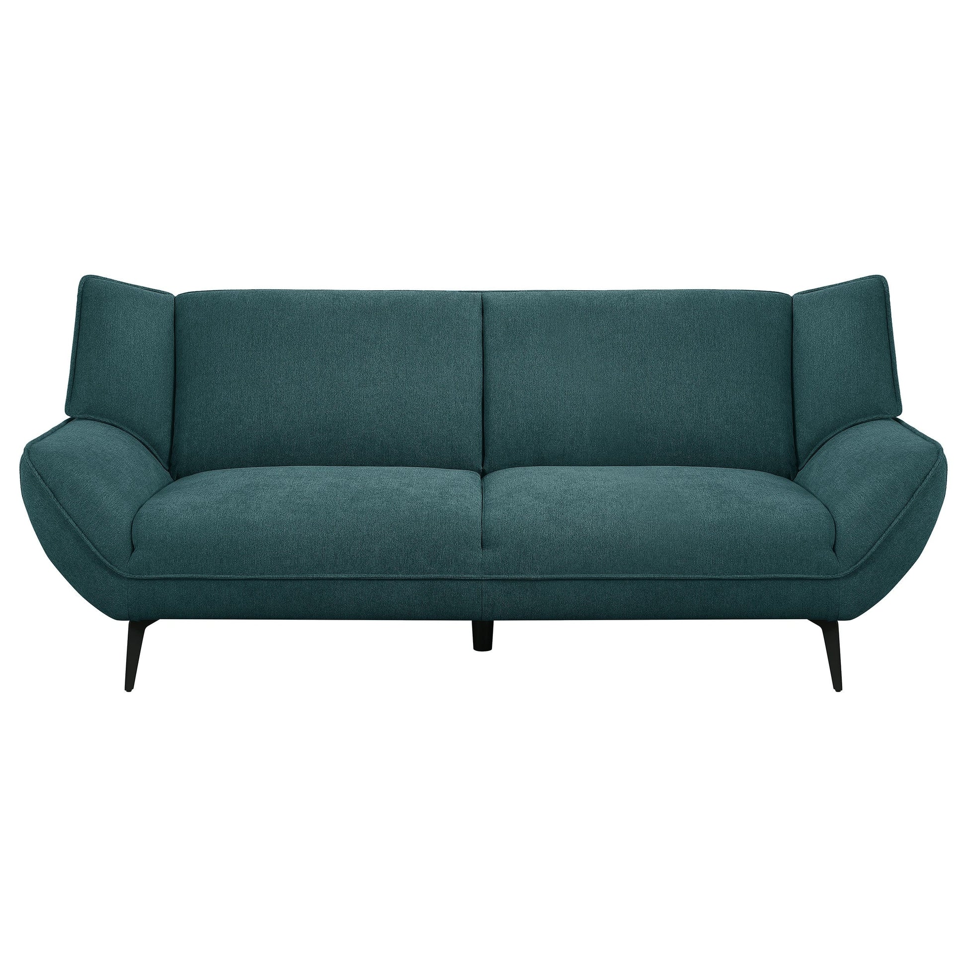 Un motif emblématique du milieu du siècle trouvera parfaitement sa place dans votre salon ou votre coin détente. Ce canapé confortable et élégant recrée des éléments de design rétro et vous promet une détente confortable et en toute simplicité. Son magnifique revêtement en tissu bleu sarcelle offre une palette de couleurs riche. Ses accoudoirs évasés et son dossier à oreilles sont fixés à des coussins d'assise et de dossier non amovibles. Ses pieds fuselés en métal noir s'harmonisent avec le magnifique revêtement bleu sarcelle.