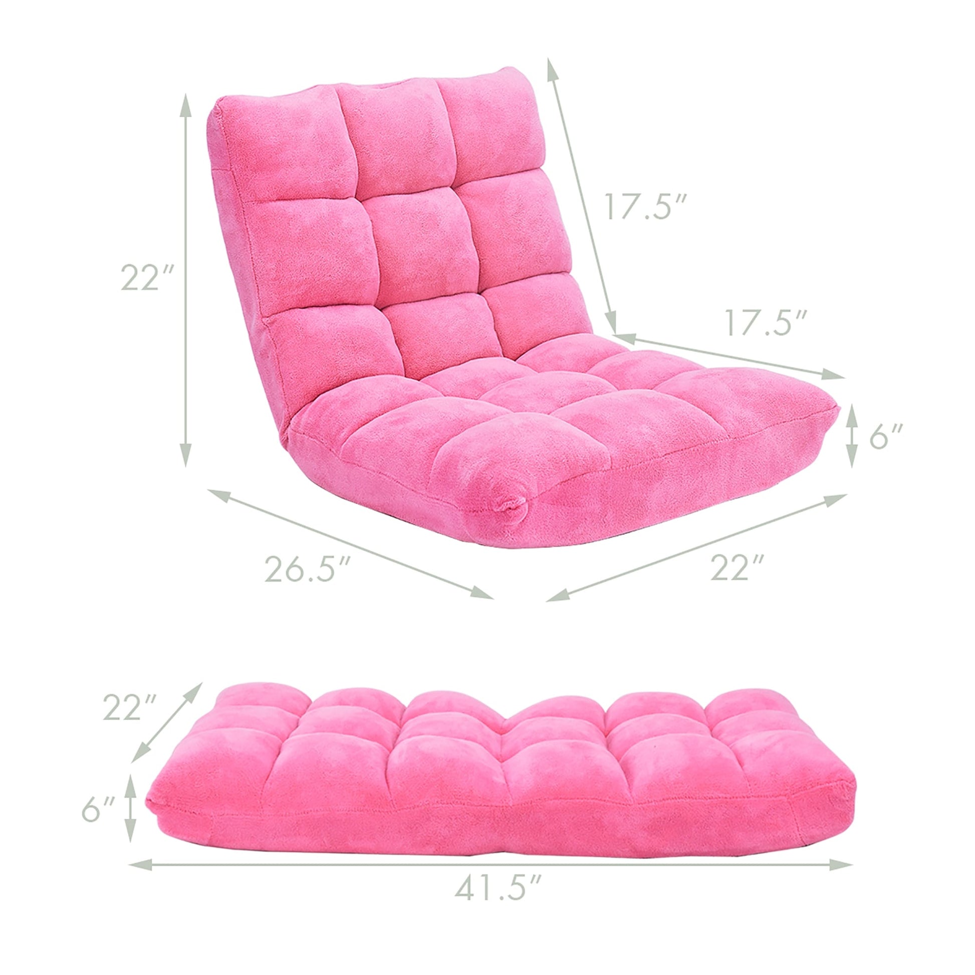Idéal pour se détendre en lisant ou en regardant la télévision, ce fauteuil inclinable est confortable et polyvalent. Conçu pour être posé directement sur le sol, il est doté d'un rembourrage en mousse à mémoire de forme de haute qualité et d'une assise et d'un dossier confortables, recouverts de velours capitonné. Le dossier est réglable sur 14 positions différentes, vous permettant de vous incliner à l'angle qui vous convient le mieux.
