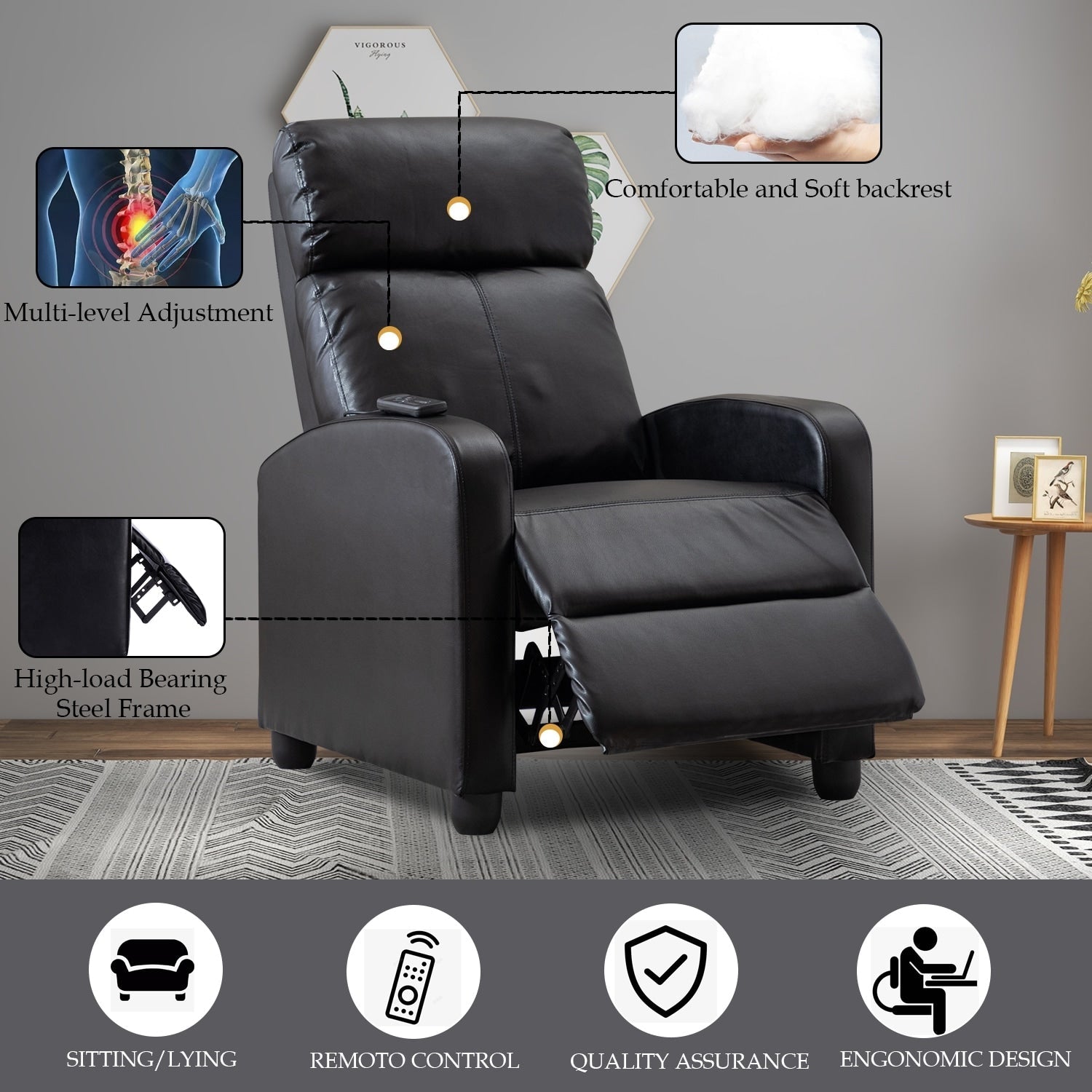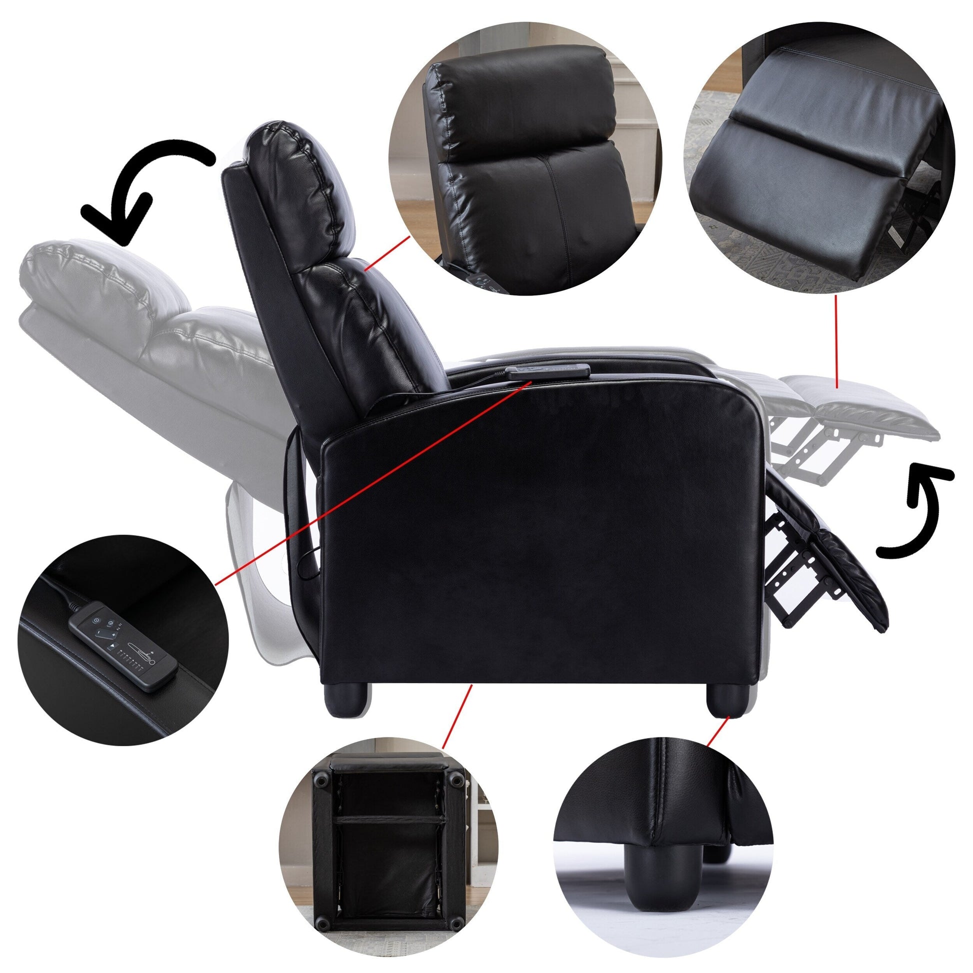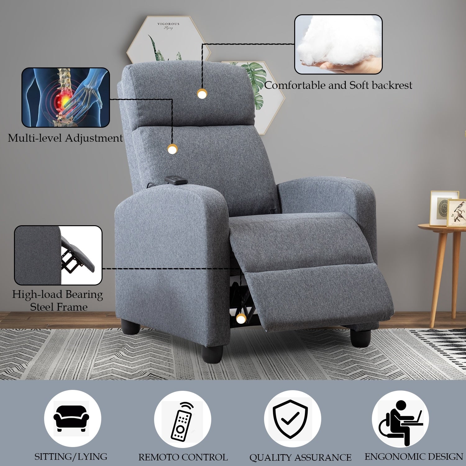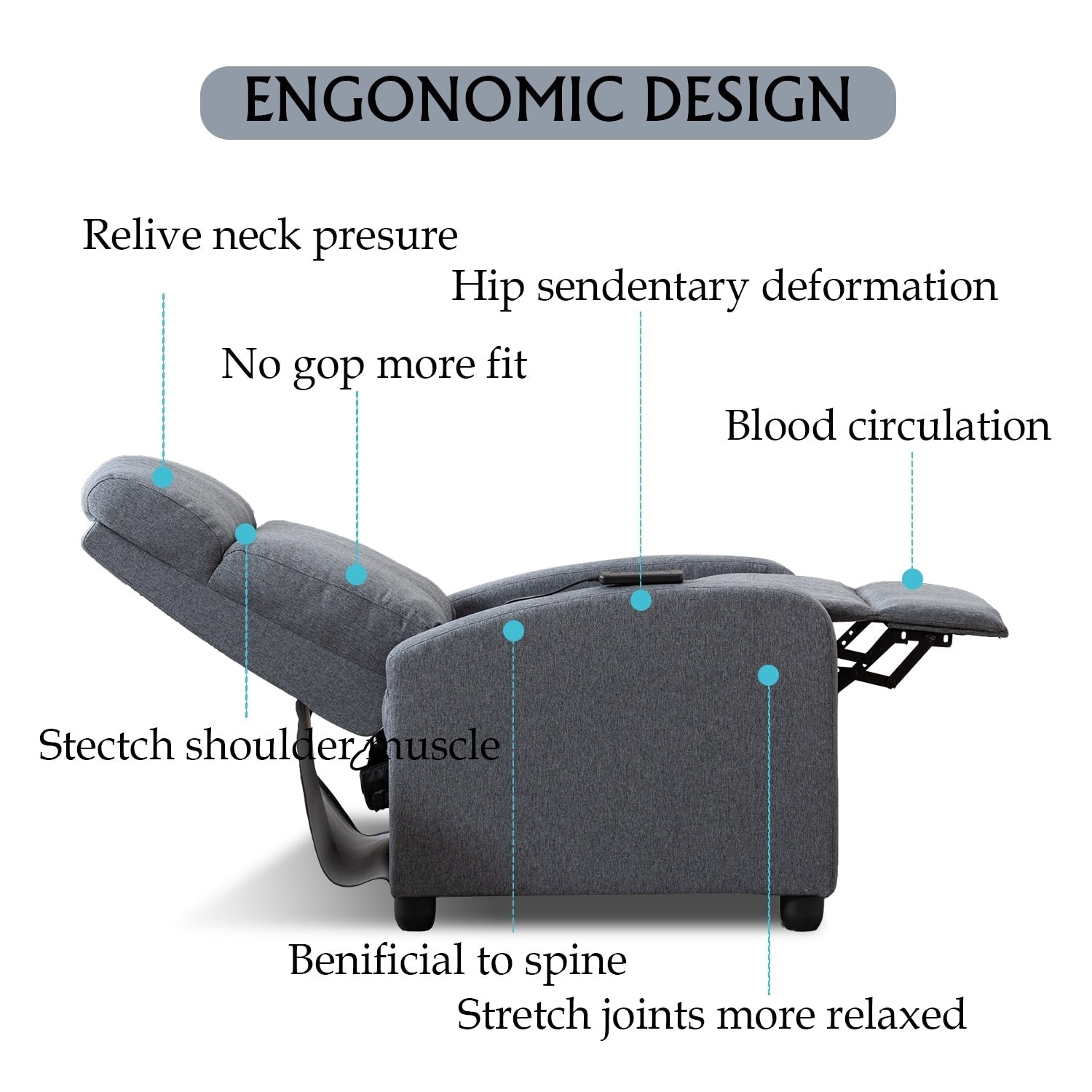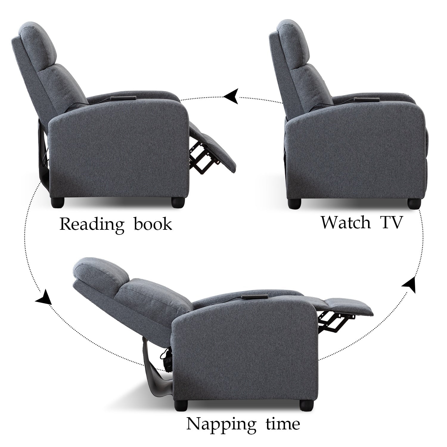 Ce fauteuil inclinable, petit mais pratique, est idéal pour le salon et la chambre, même dans les espaces restreints. Poussez l'accoudoir pour allonger le repose-pieds et étirez vos jambes, puis tirez-le vers l'arrière avec vos talons jusqu'à ce qu'il se verrouille en place. Son design ergonomique et son dossier confortable, idéal pour lire, regarder la télévision ou dormir, offrent un confort optimal pour la nuque, le dos et les lombaires. Son mécanisme d'inclinaison fluide offre une expérience de détente optimale.