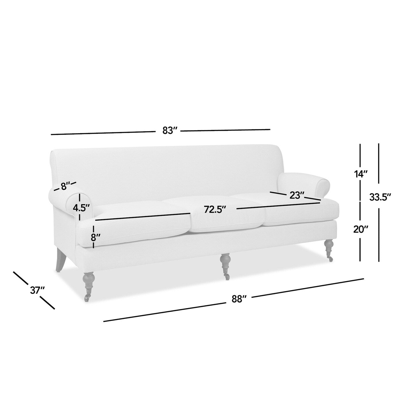 Canapé de salon Alana Lawson de 88 pouces « Canapé à trois coussins avec accoudoirs roulés et dossier serré » Assemblage minimal requis