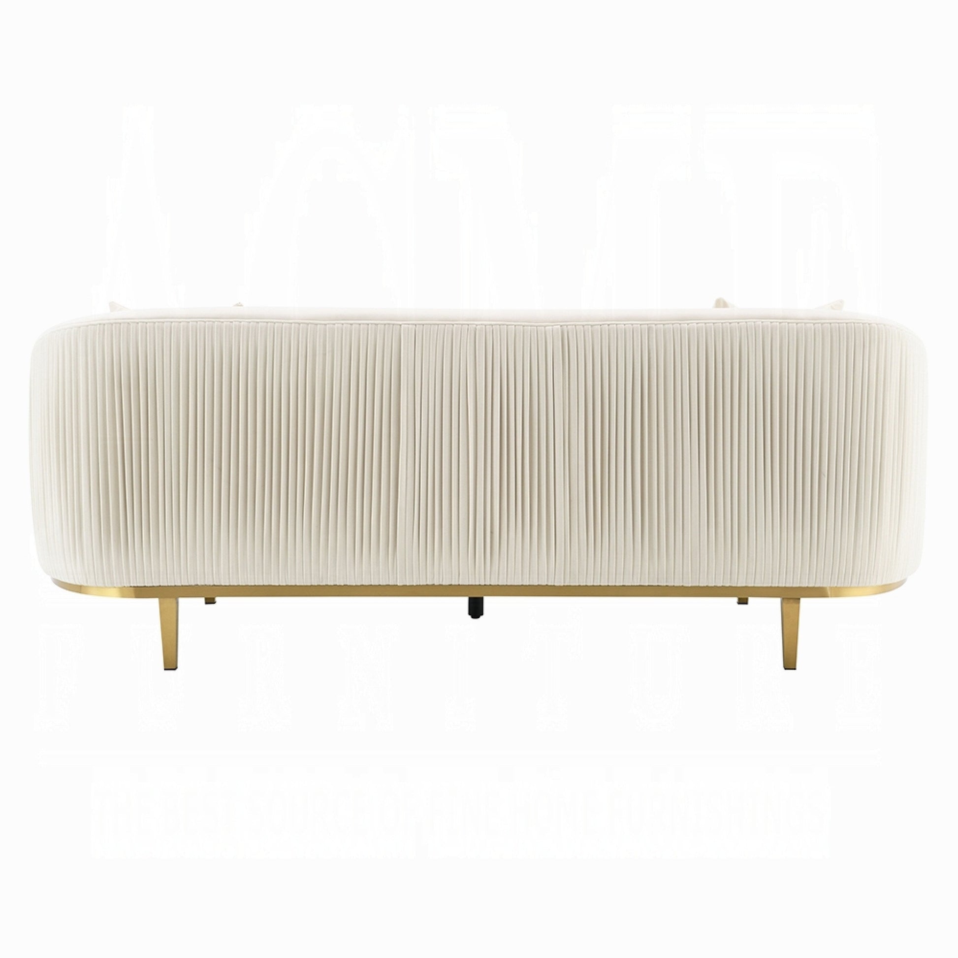 Canapé Artina, 2 coussins décoratifs, velours ivoire, métal doré, 226 cm
