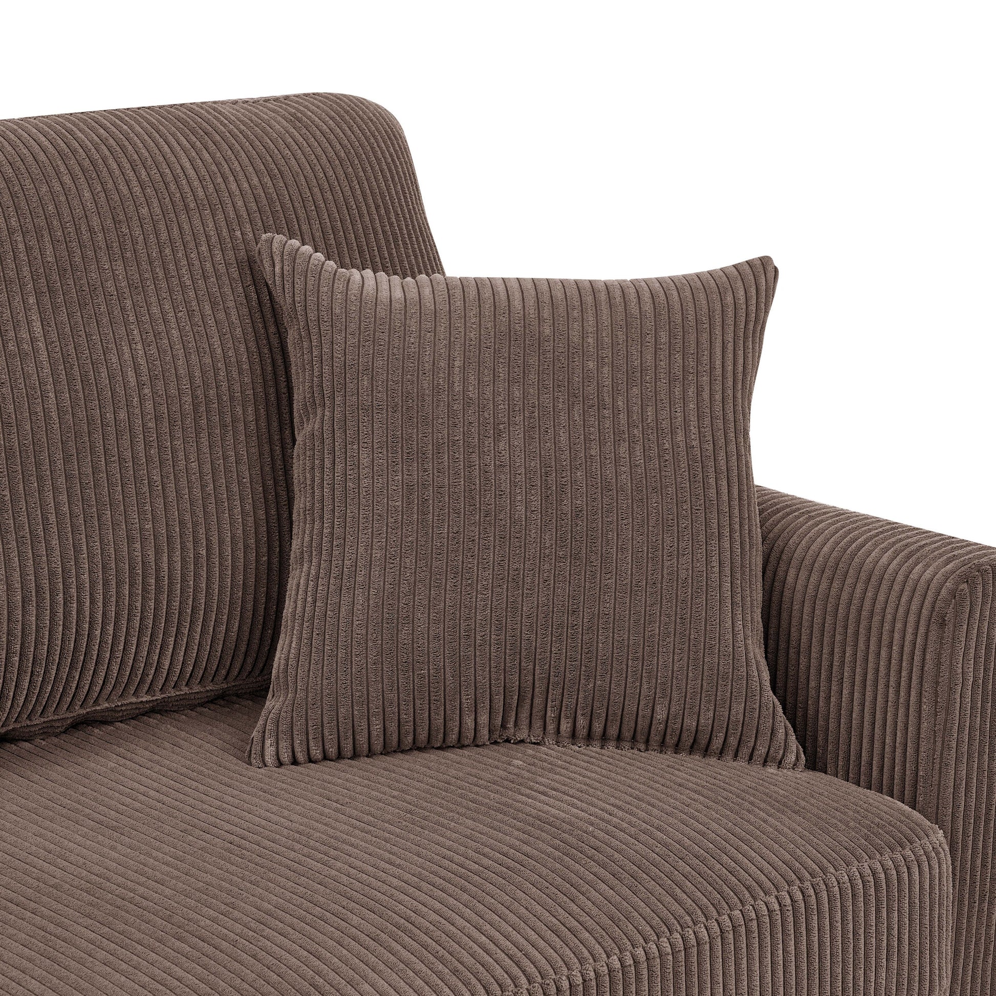 La texture du canal vertical ajoute une touche moderne à sa silhouette classique, tandis que deux coussins décoratifs assortis offrent un soutien et un style supplémentaires.