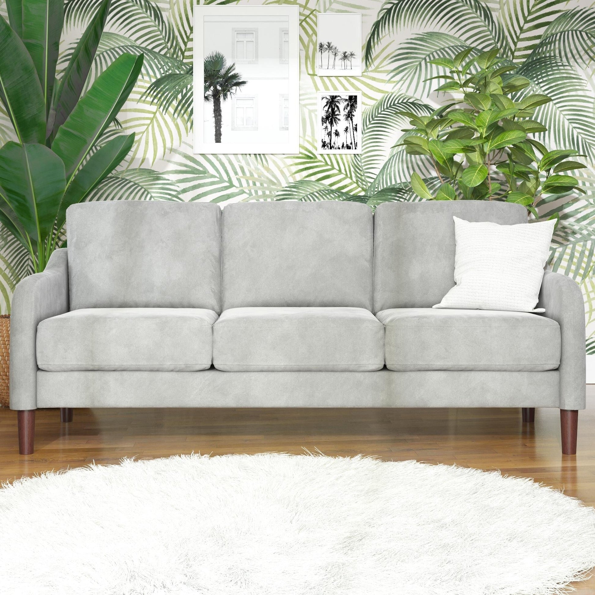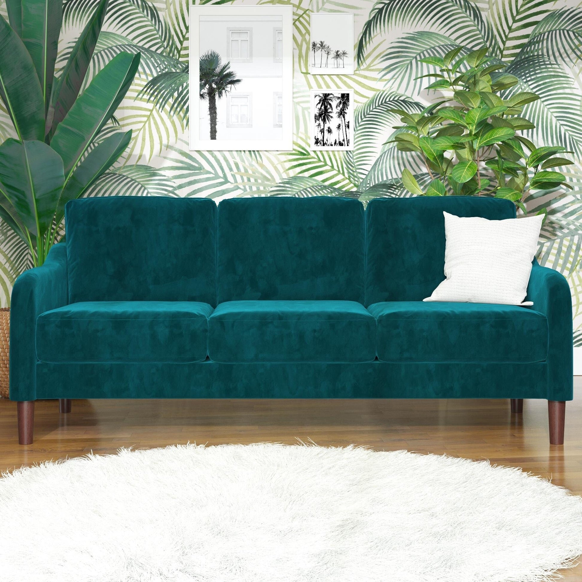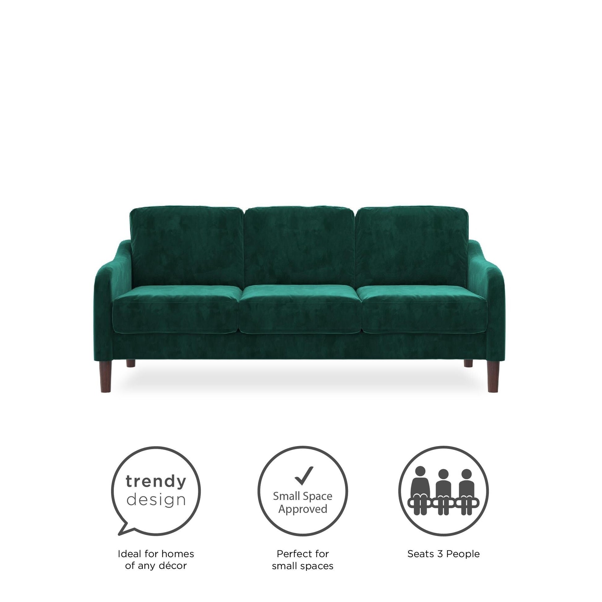 - Design simple et moderne avec accoudoirs incurvés et revêtement en velours doux. Peut accueillir confortablement trois personnes.