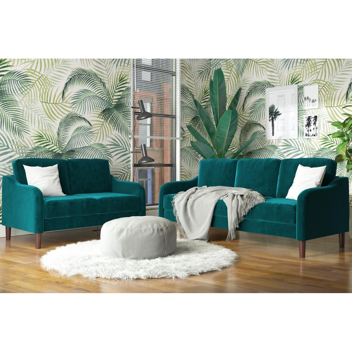 - Associez-le au canapé 2 places assorti pour un salon complet. Le velours peut présenter des variations par rapport à l'image, car la lumière peut altérer la couleur du produit.