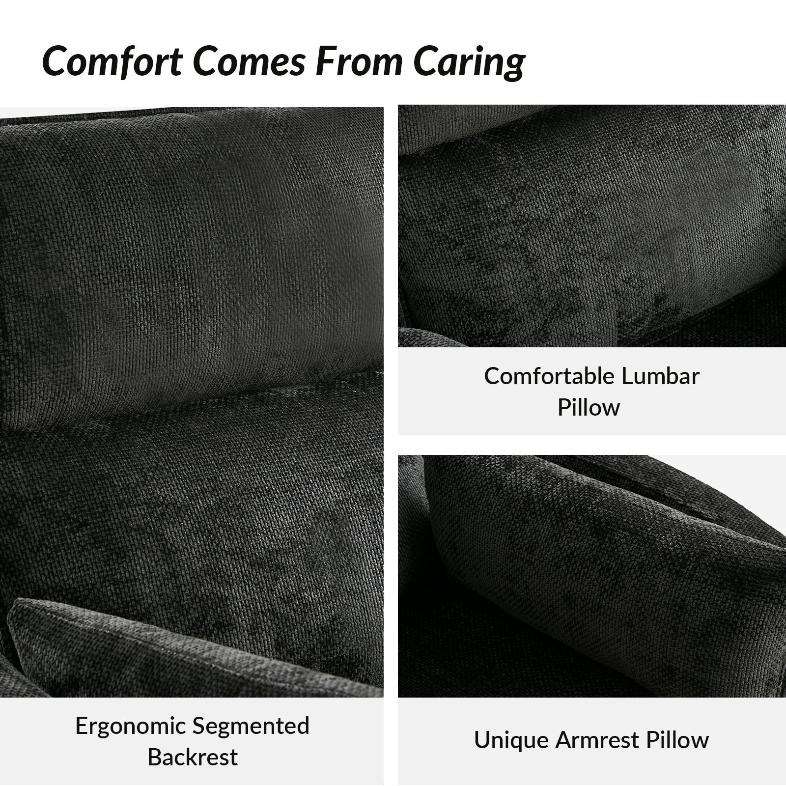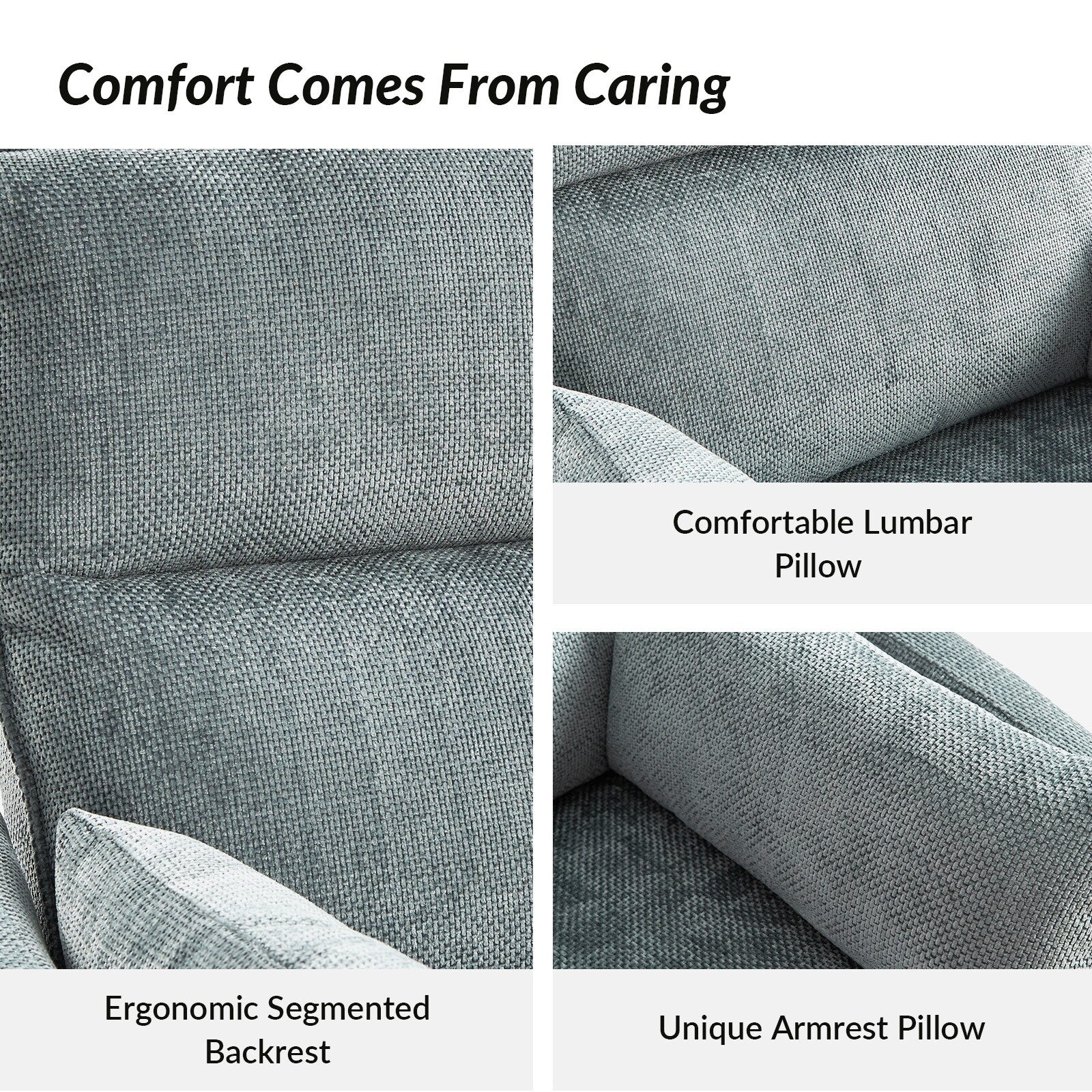 - Basculement et pivotement : Ce fauteuil inclinable oscille doucement d'avant en arrière, offrant un mouvement apaisant pour la détente. De plus, il pivote, vous permettant de vous tourner et d'ajuster facilement votre position sans vous lever.