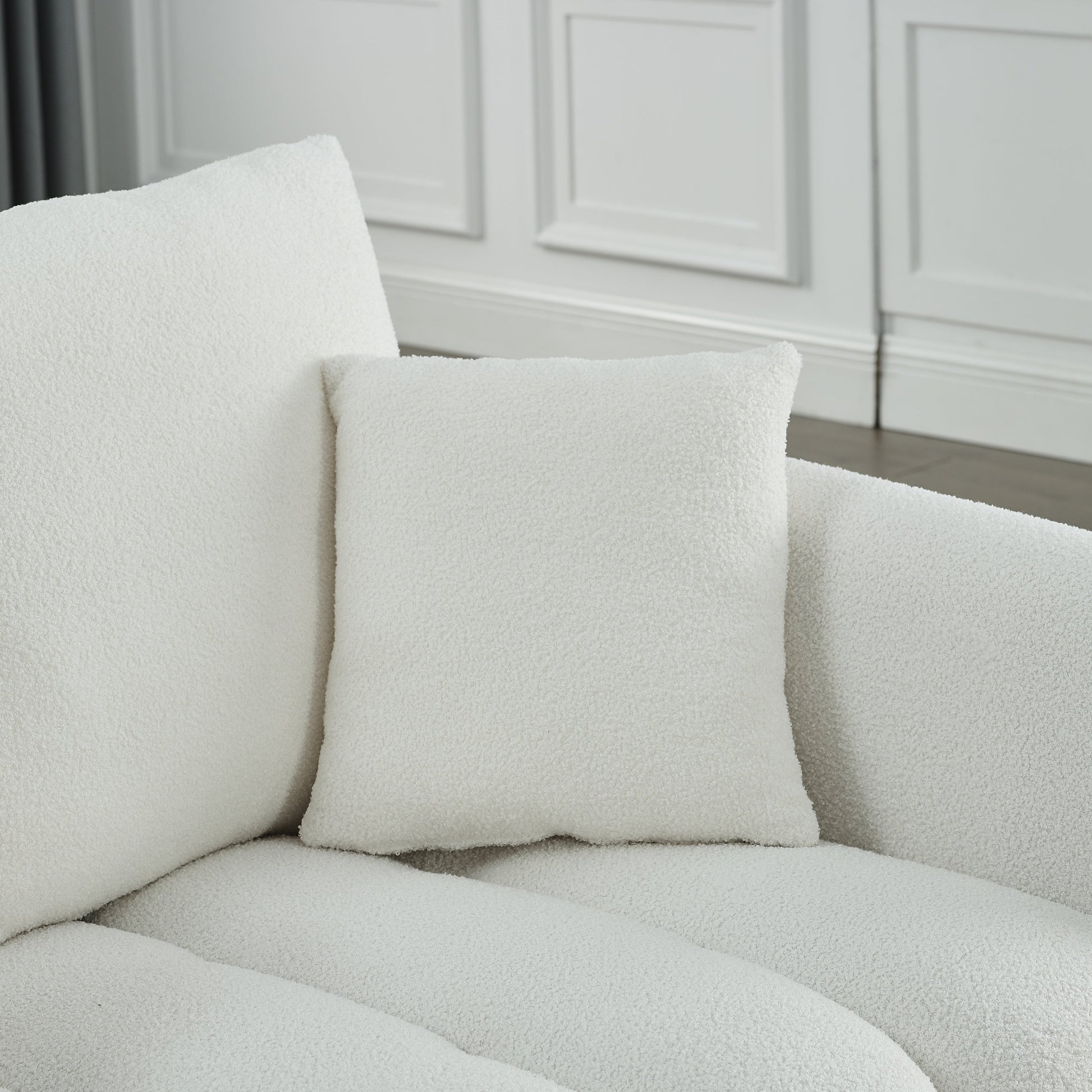 - [Durable] Ne vous inquiétez pas de sa durabilité ! Ce canapé en tissu Teddy est composé d'une structure en bois robuste, enveloppée de mousse de soutien et d'un tissu velours Teddy résistant pour un soutien optimal. L'assise peut supporter jusqu'à 340 kg et durera longtemps dans votre salon.