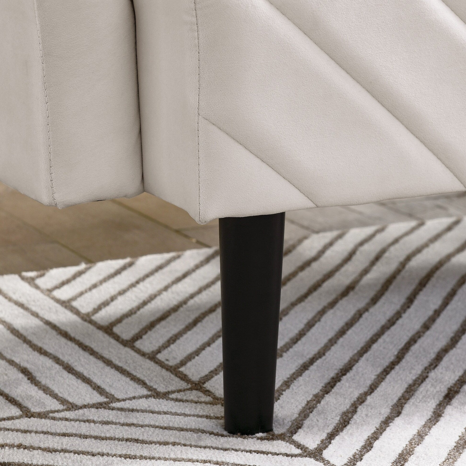 - Combinant des lignes modernes avec des détails modernes du milieu du siècle, tels que le capitonnage à chevrons et les pieds en plastique effilés, cette pièce présente un design intemporel qui ajoute du style à n'importe quel décor.