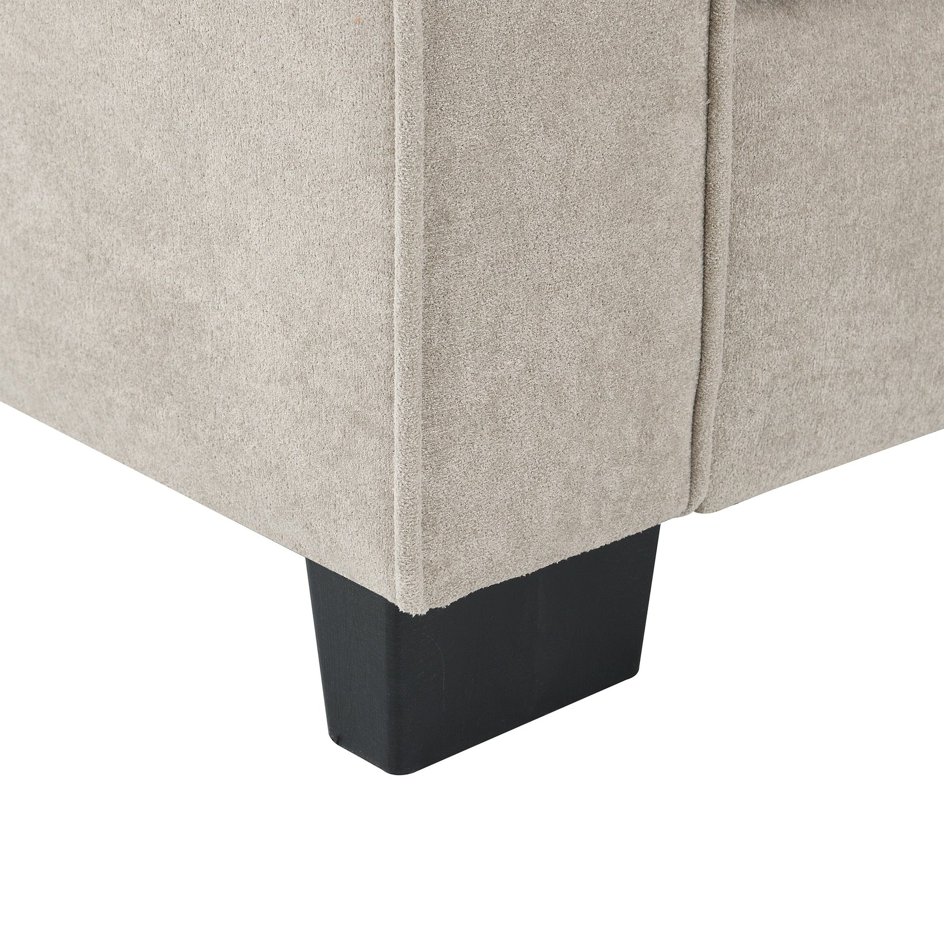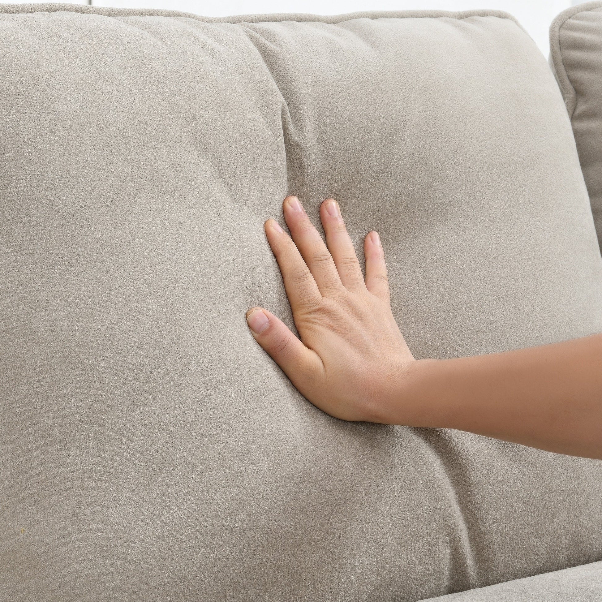 Canapé sectionnel 5 places en velours beige 89 po avec coussins doubles