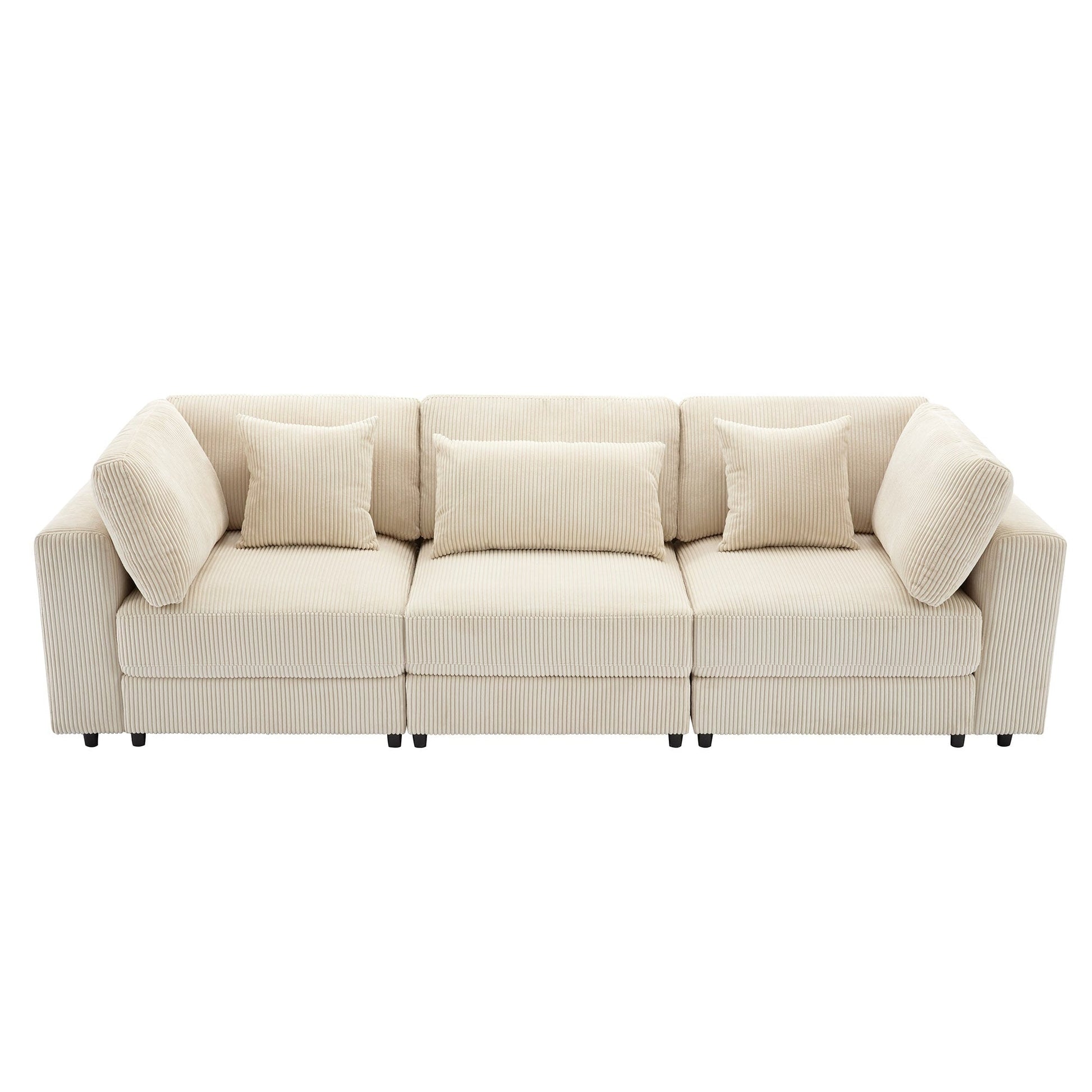 Canapé 3 places rembourré en velours côtelé beige avec coussins amovibles