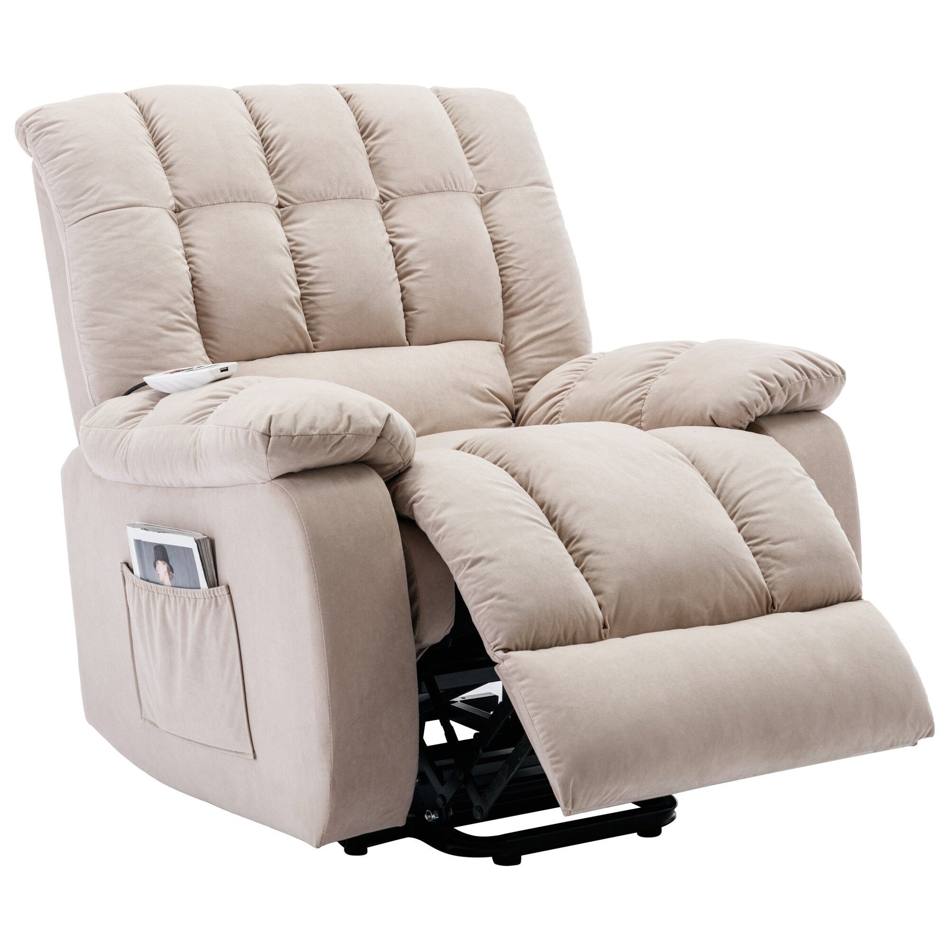 Fauteuil inclinable électrique beige avec chauffage, massage et rangement latéral pour salon ou chambre