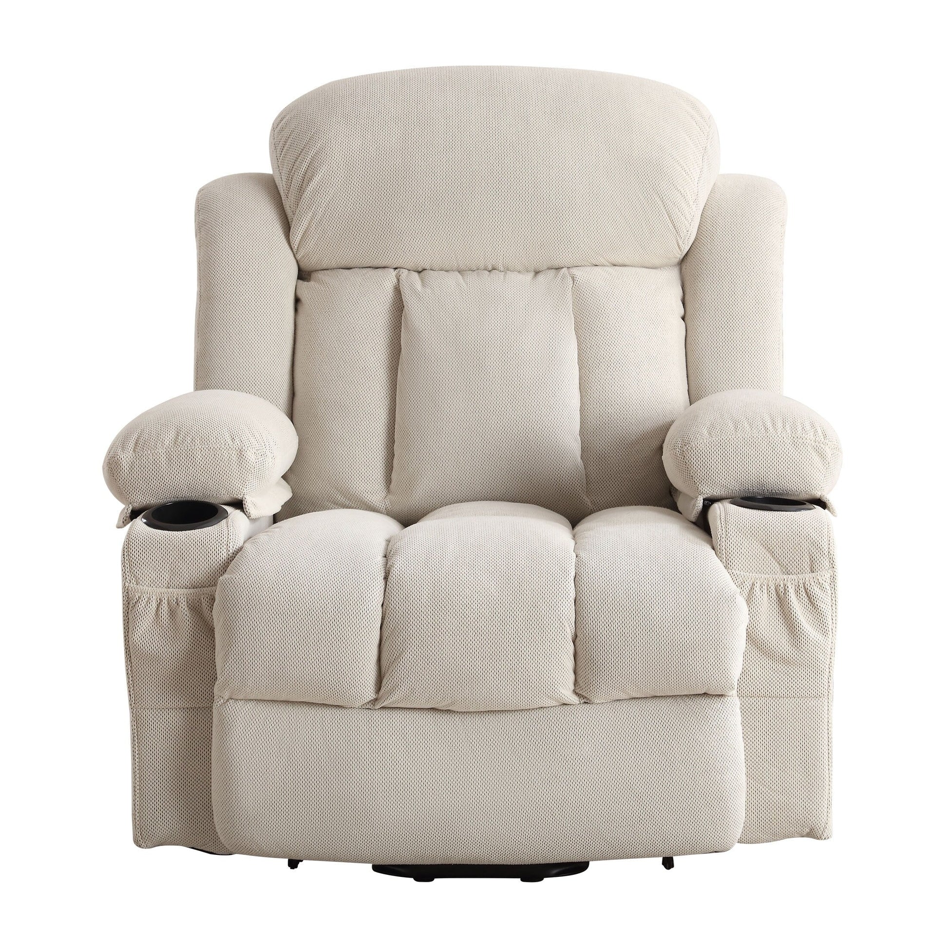 Fauteuil inclinable ergonomique beige avec chauffage, massage, chargement USB, poches latérales et télécommande