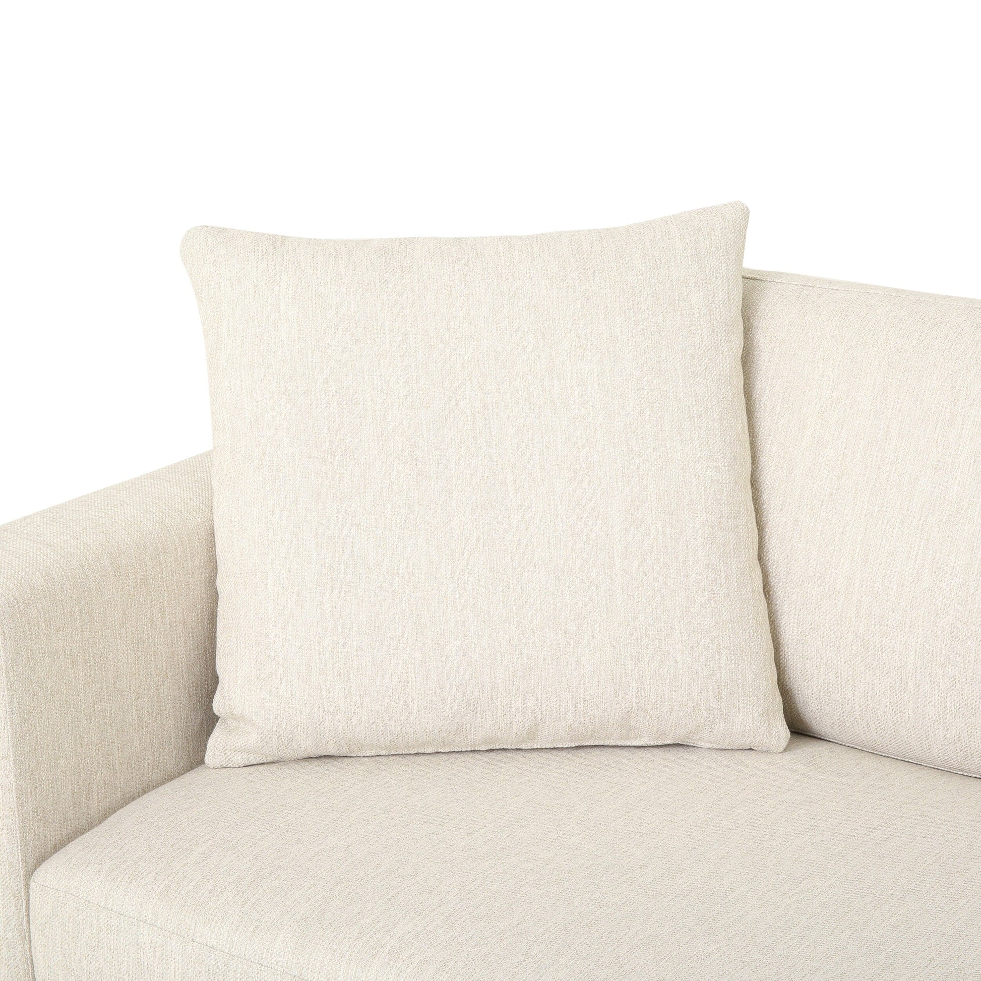 Canapé 3 places beige moderne 101 avec pieds en bois et deux coussins pour le salon