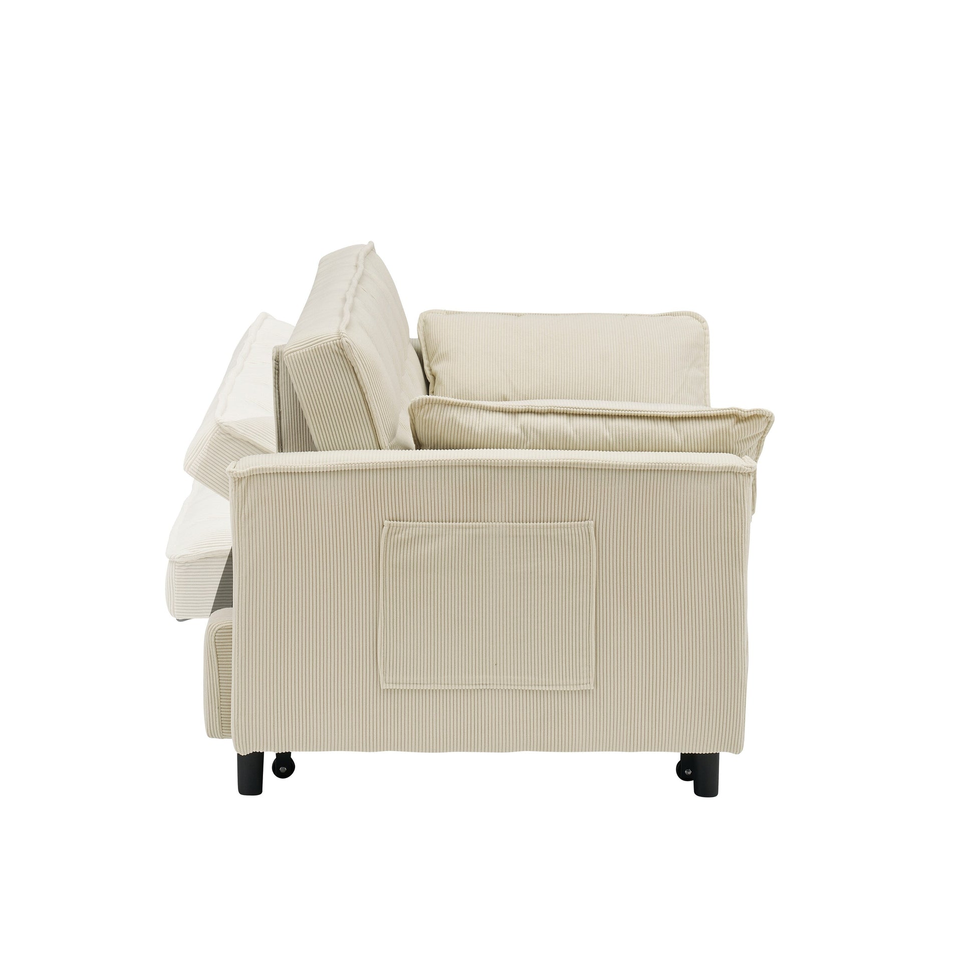 Canapé-lit gigogne en velours côtelé beige moderne 54,3 avec dossier réglable et oreillers pour le salon