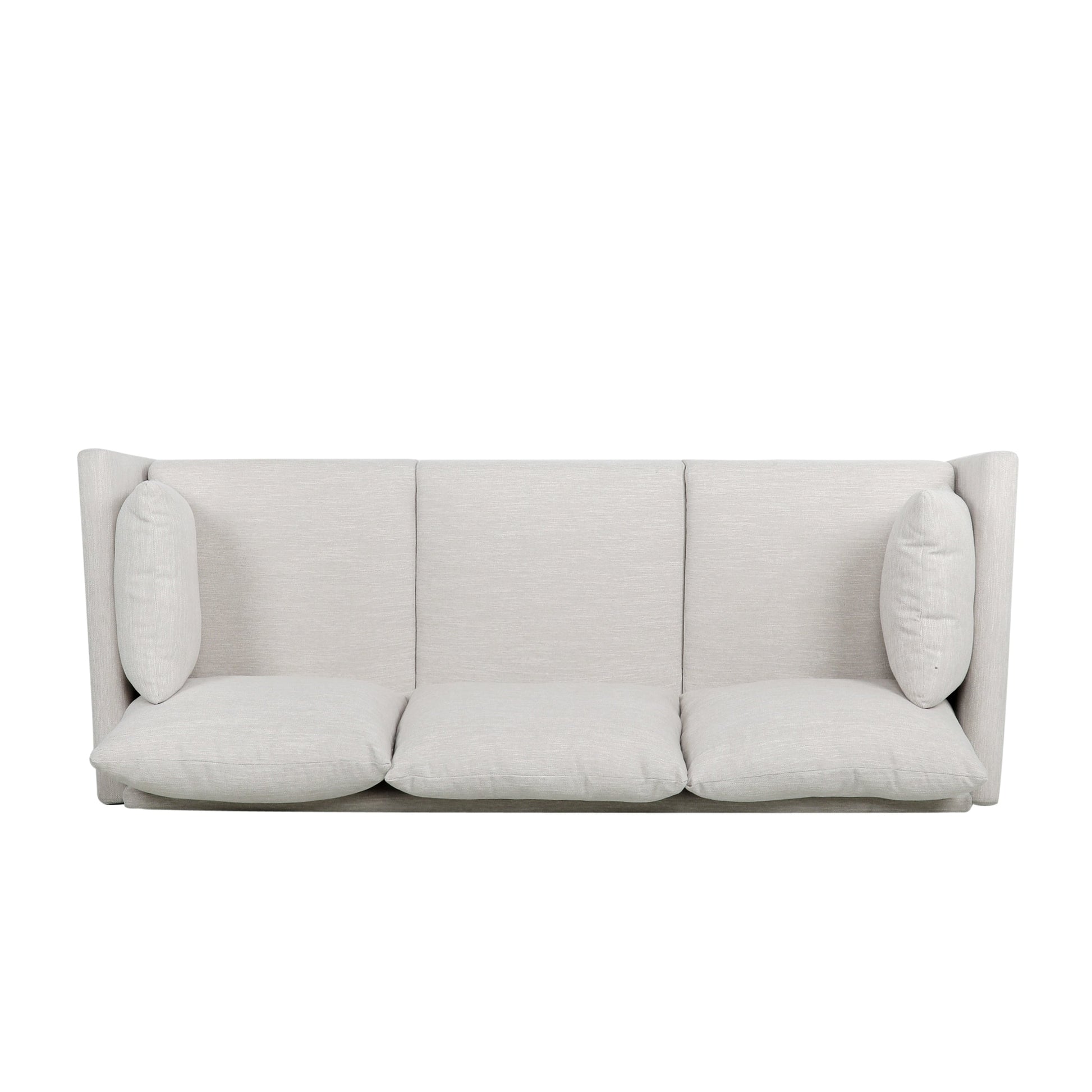 Canapé 3 places beige moderne 76,5 avec pieds en bouleau et coussins pour le salon